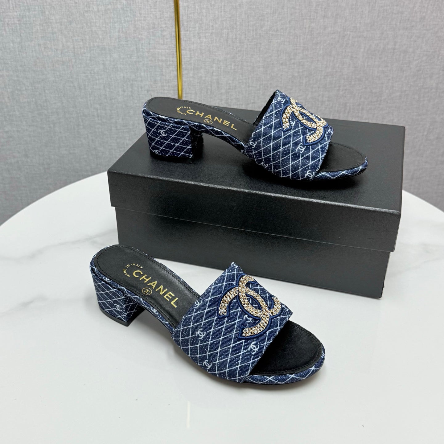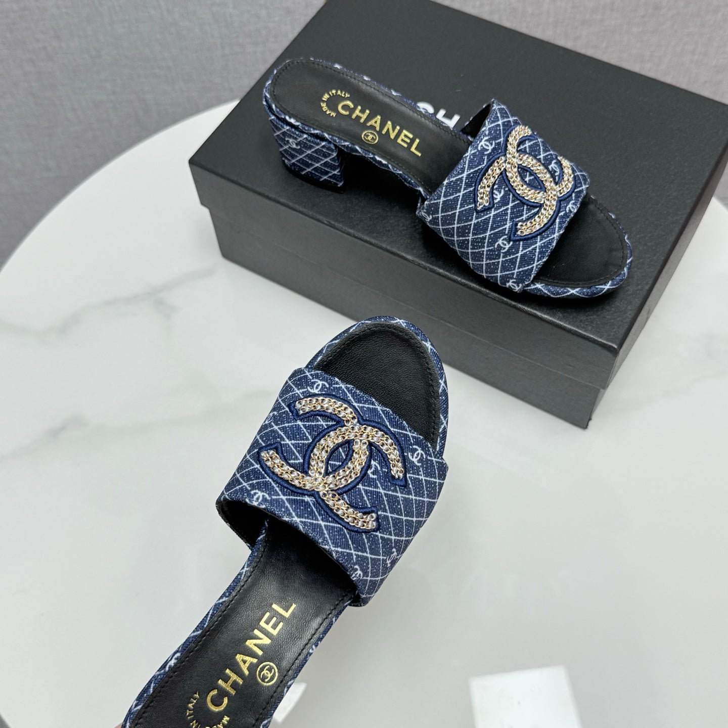 CC HIGH HEEL 25S IN DARK BLUE DENIM STRIPED PATTERN WITH LOGO PRINT