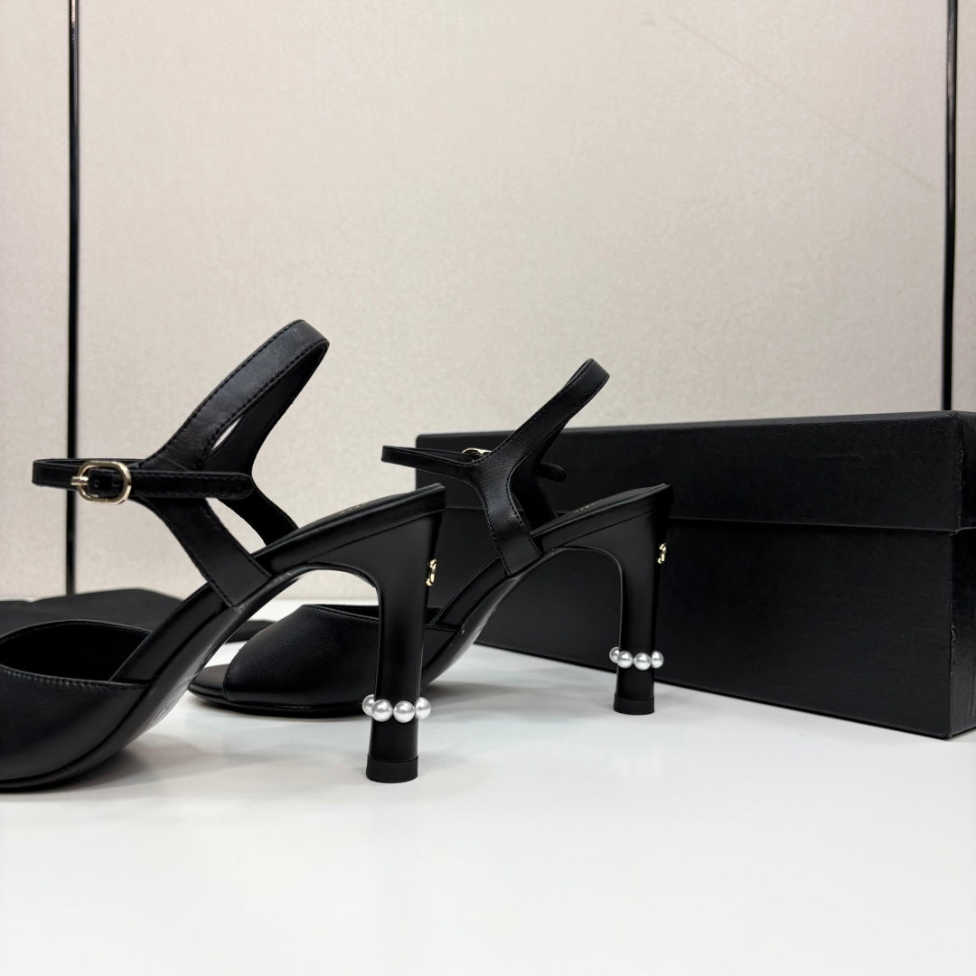 CC HIGH SANDAL 25S 80 MM IN BLACK CALFSKIN WITH PEARL DETAILS