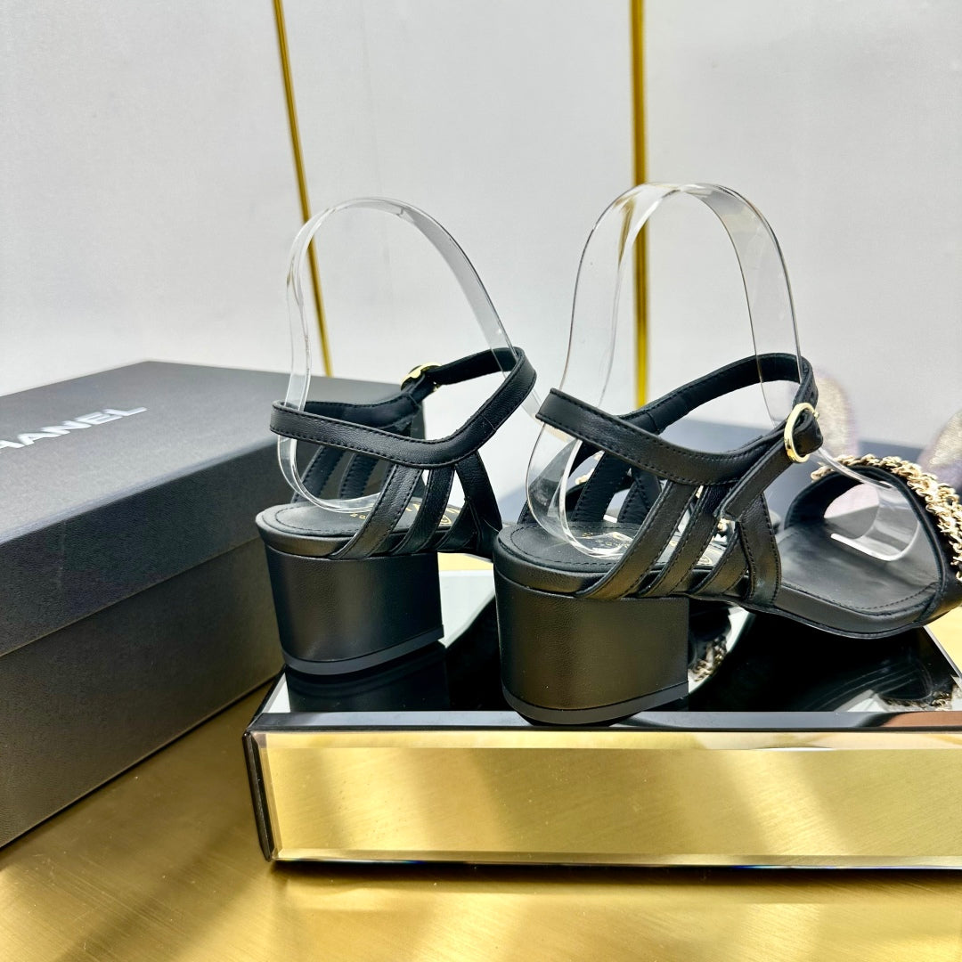 CC HIGH SANDAL 25S IN BLACK CALFSKIN