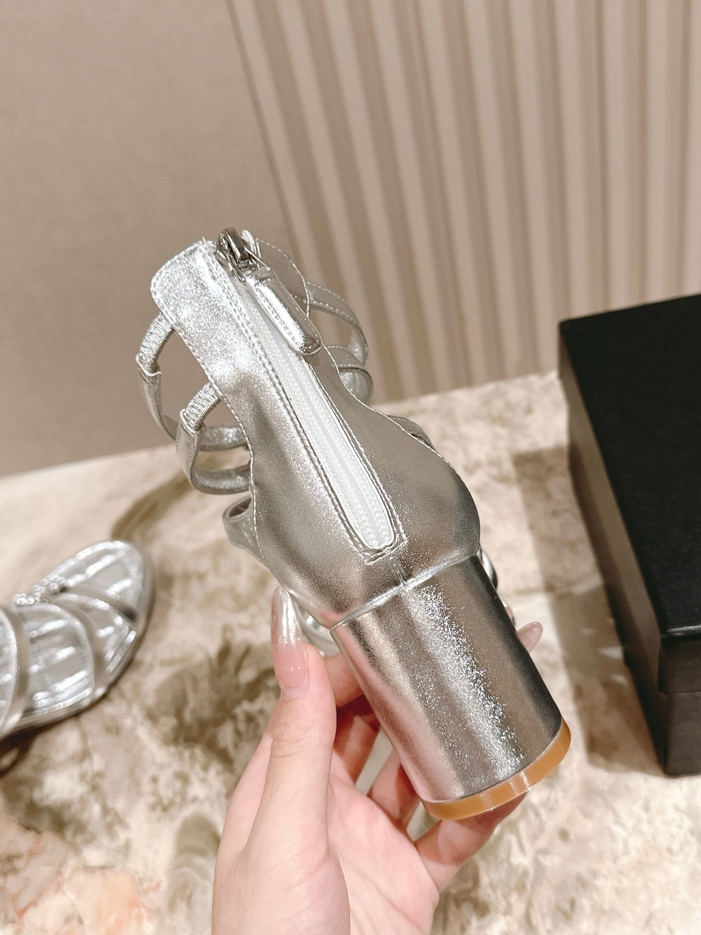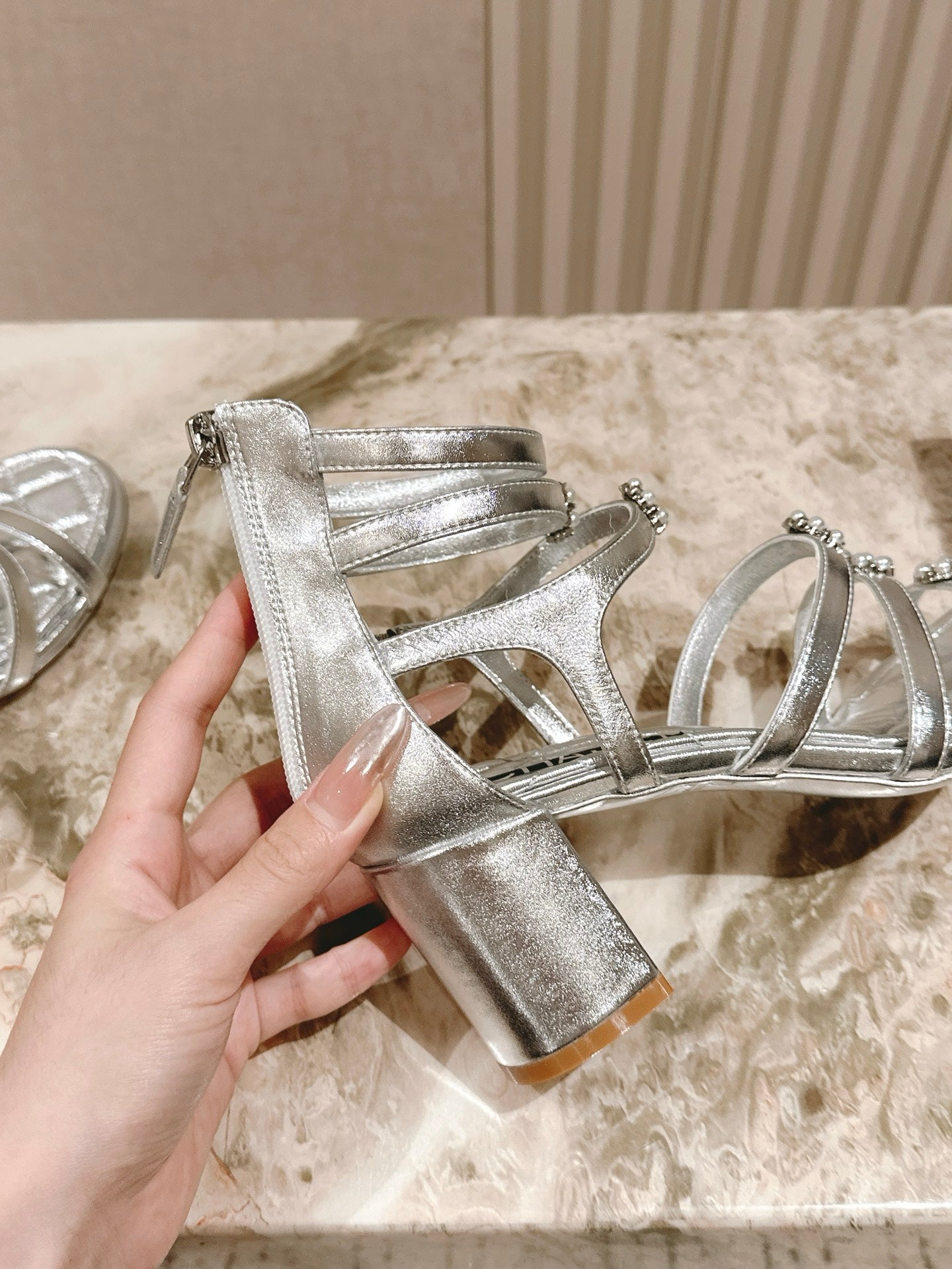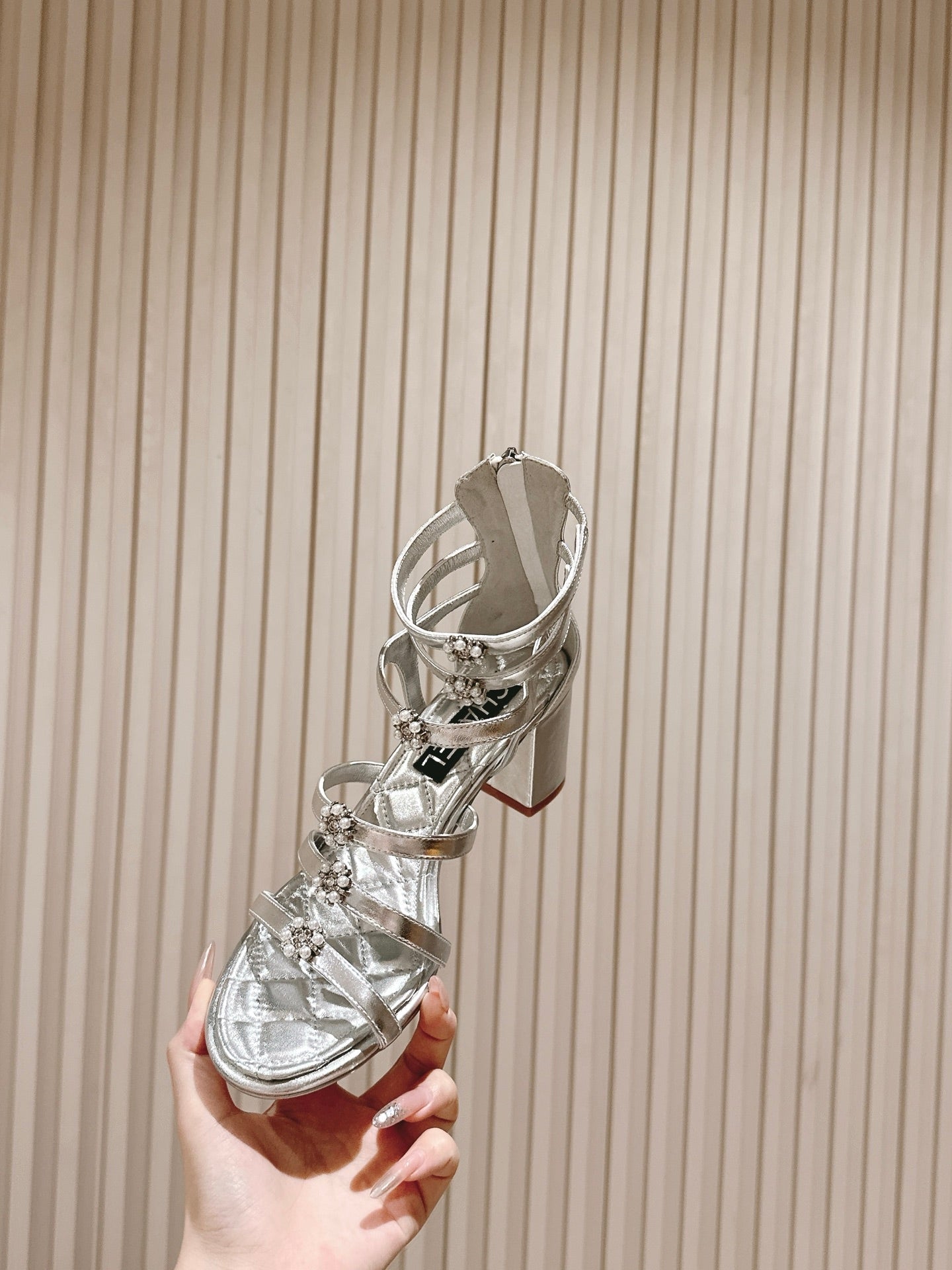 CC HIGH SANDAL 25S IN SILVER LAMBSKIN PEARL FLOWERS