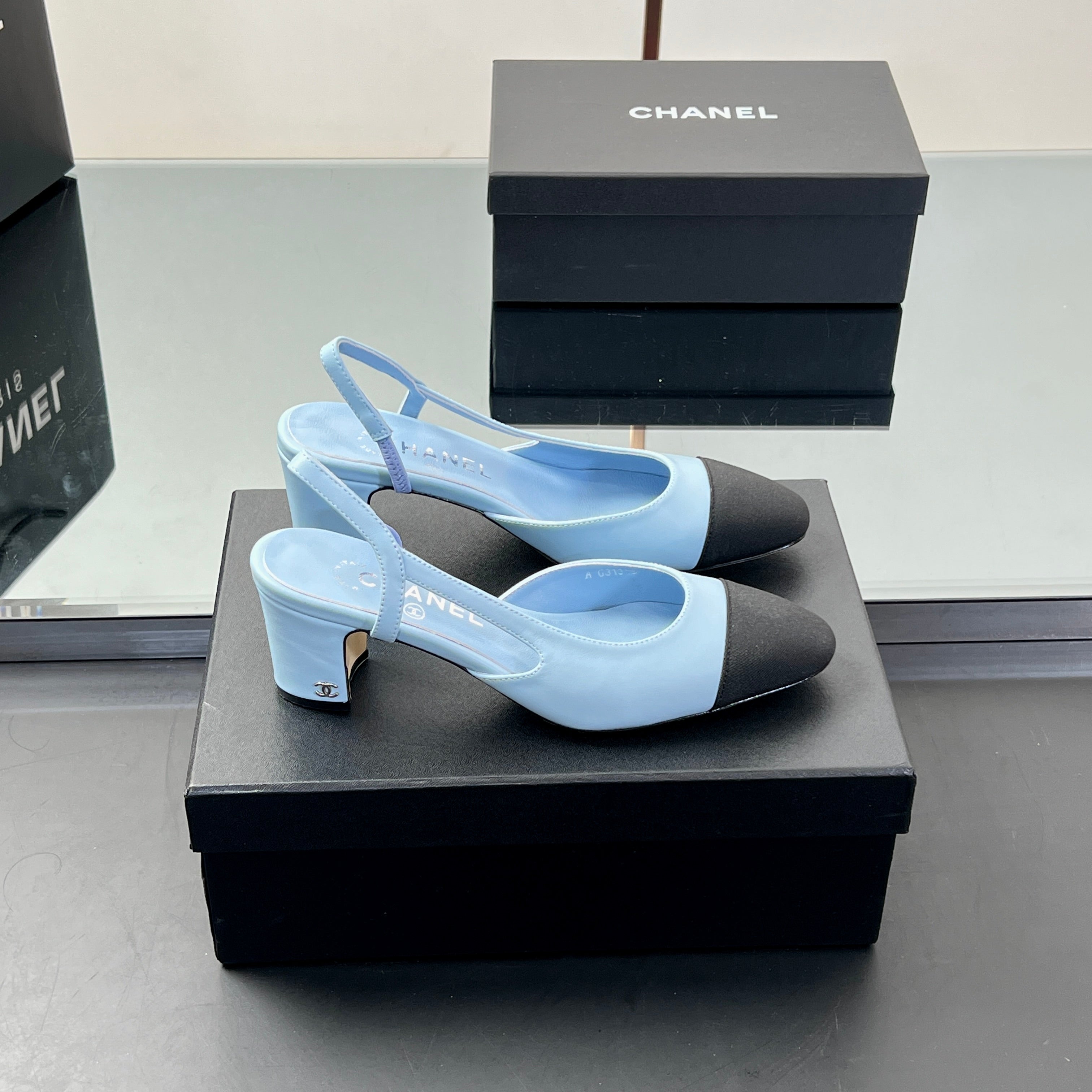 CC HIGH SLINGBACK 25S 65 MM IN BLACK FABRIC AND BLUE LAMBSKIN