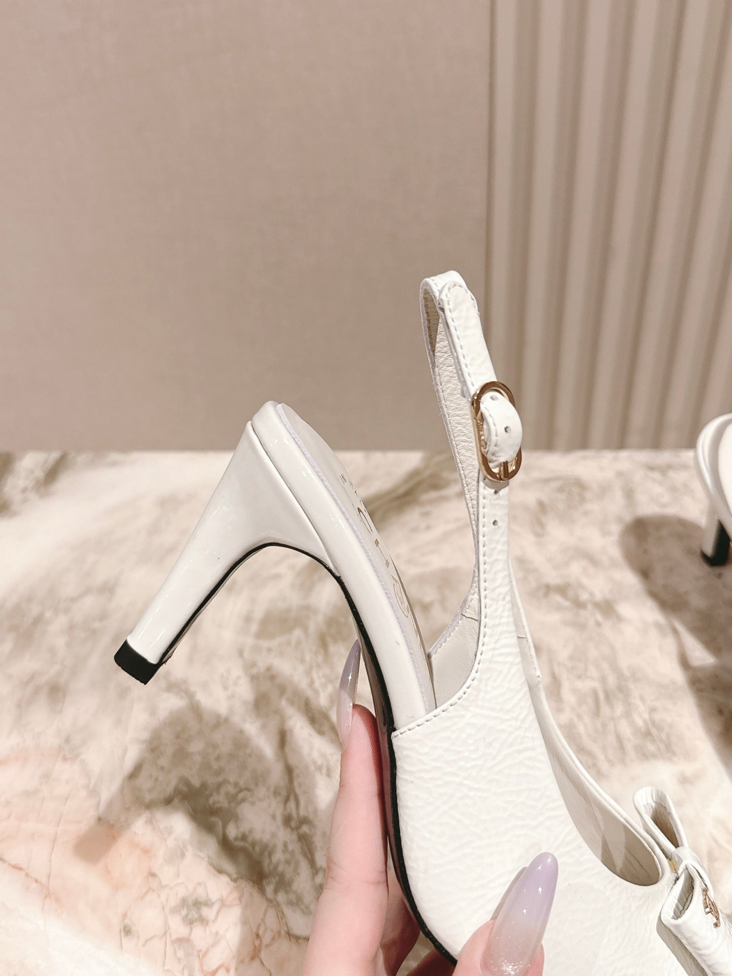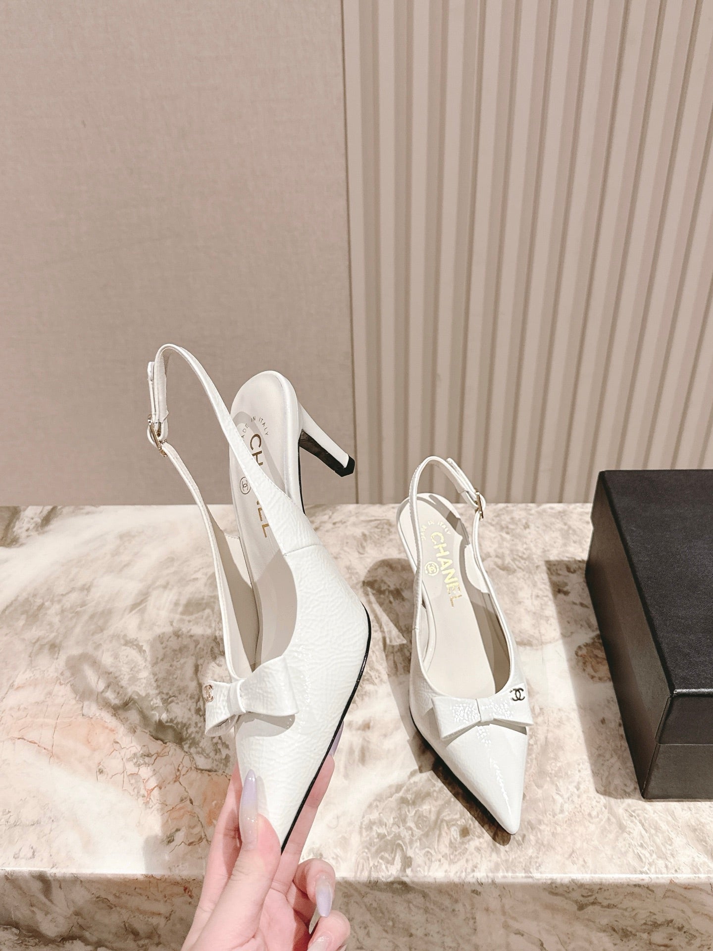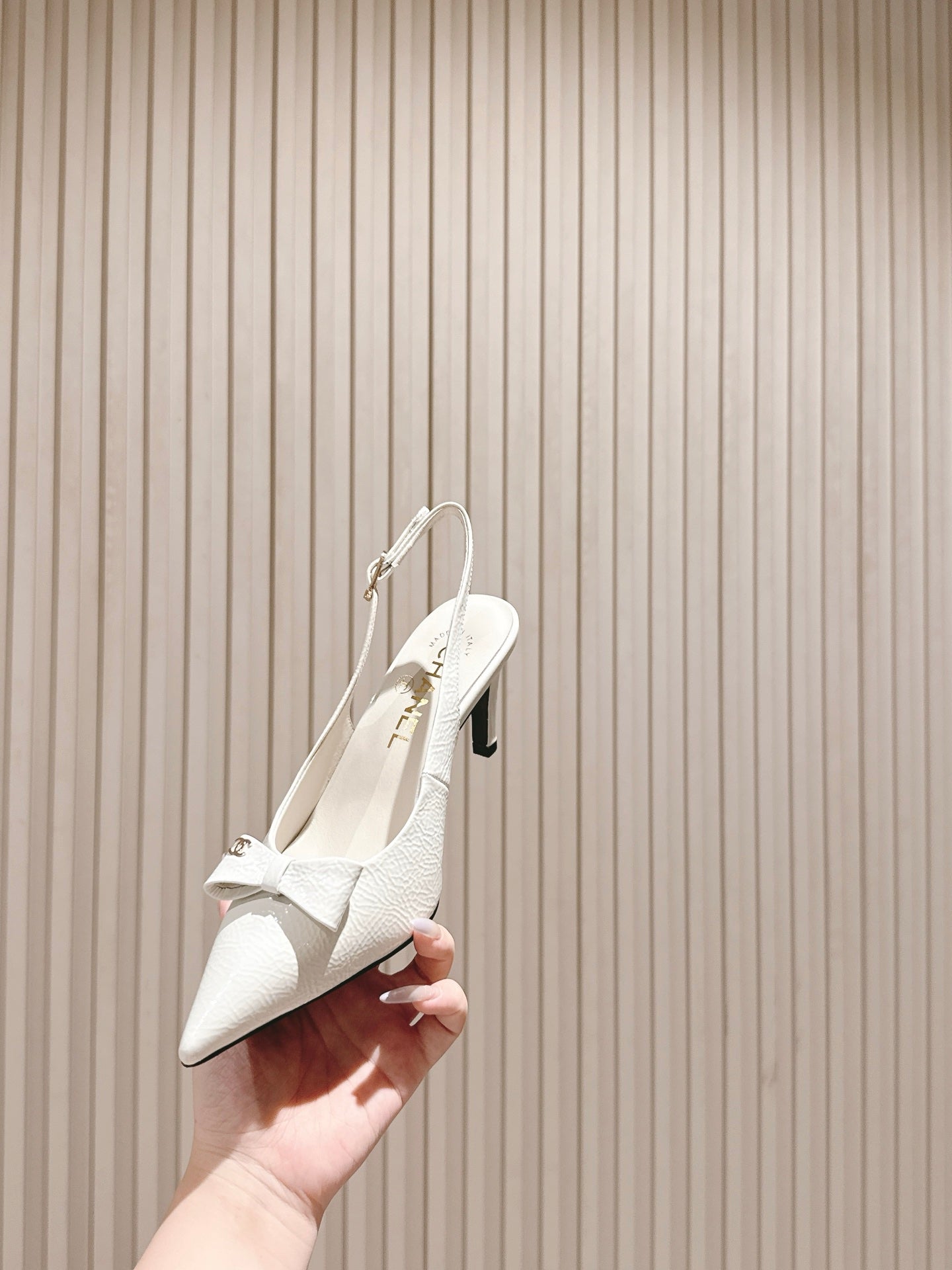 CC HIGH SLINGBACK IN CREAM WHITE LAMBSKIN WITH BOW ATTACHED