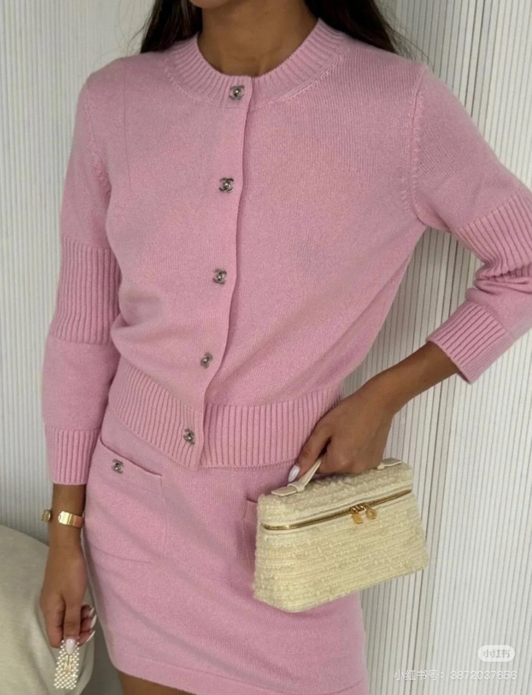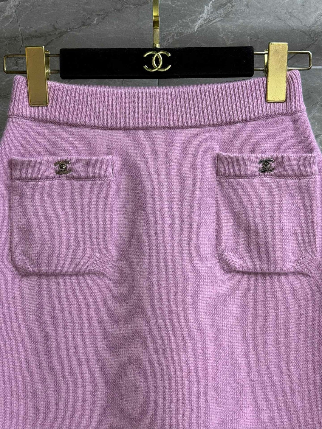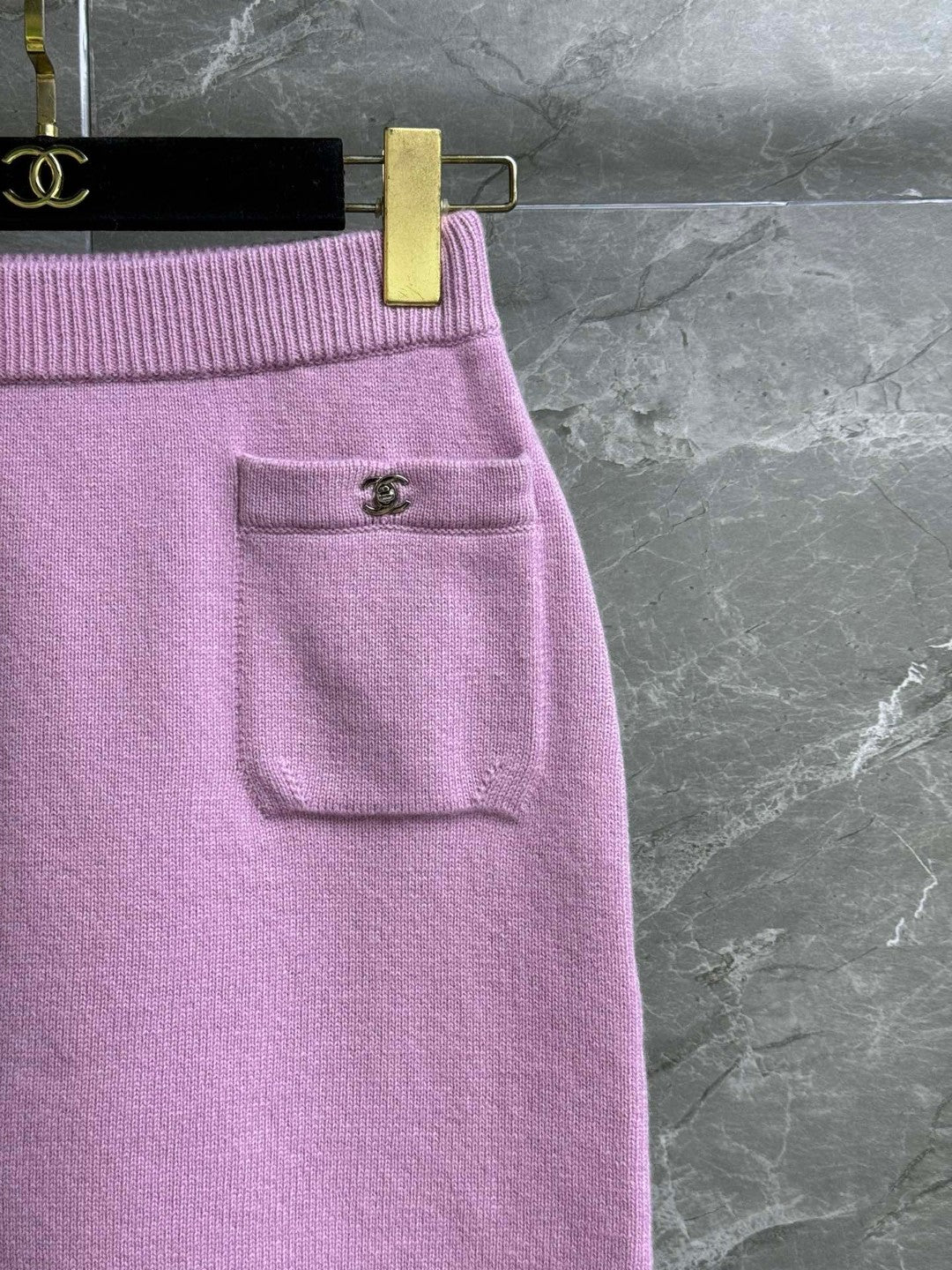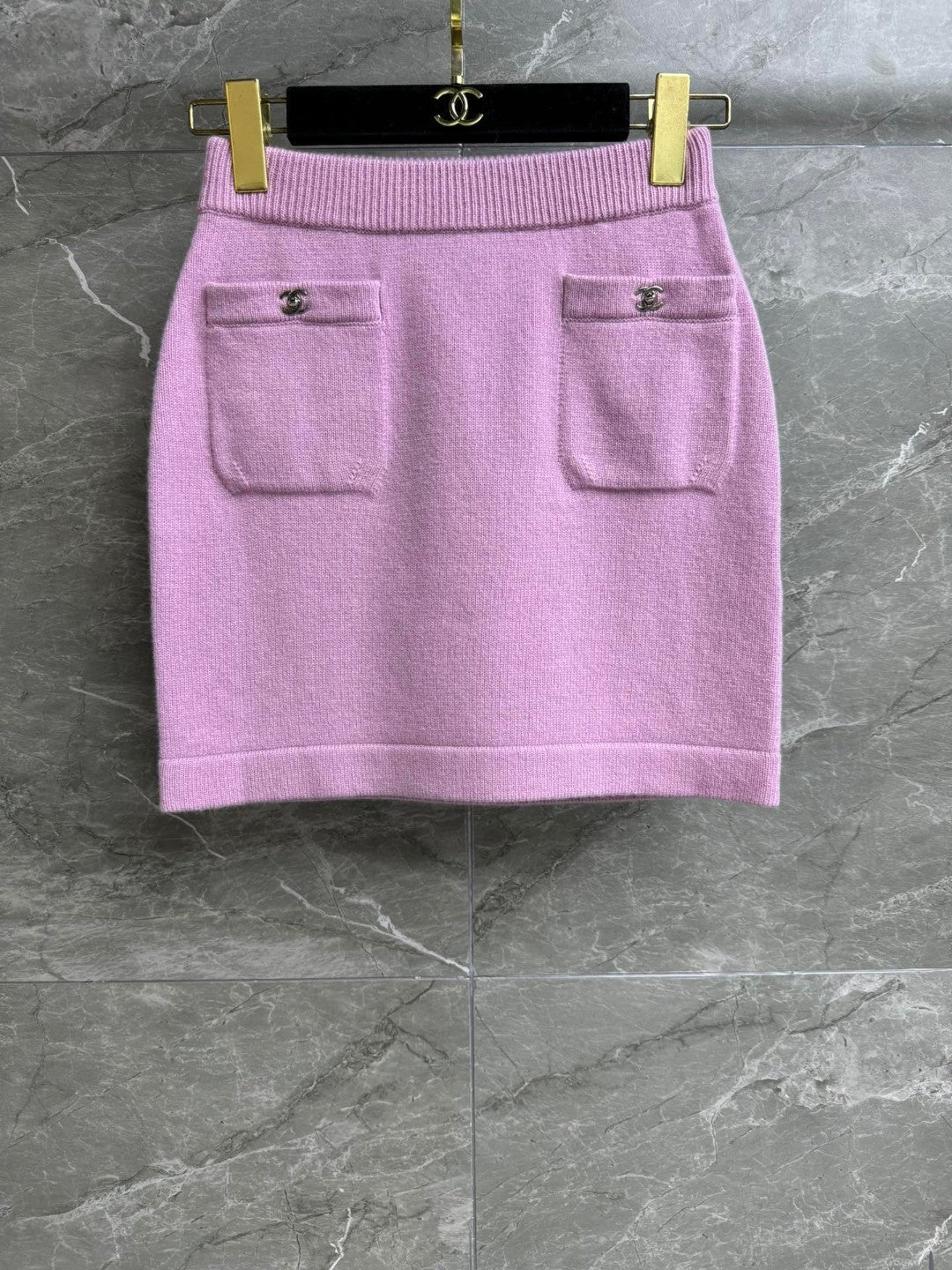 CC ICONIC SKIRT IN PINK WOOL KNIT WITH FRONT POCKETS