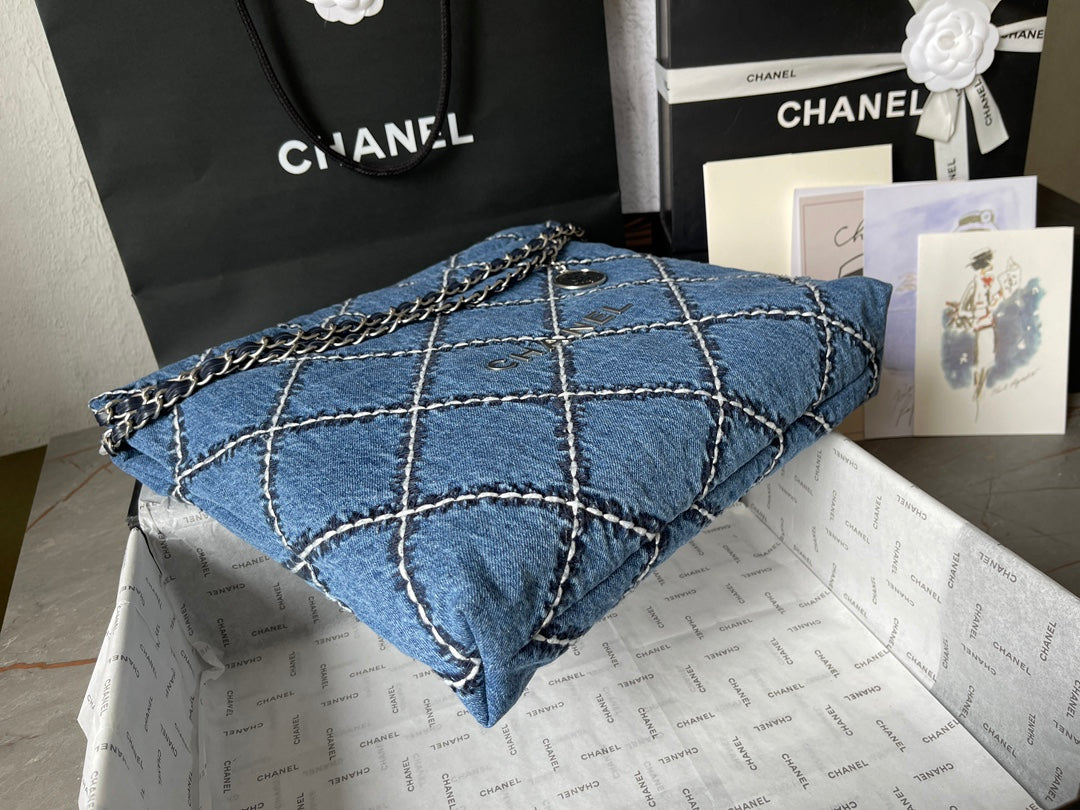 CC LARGE 42 CROSSBODY BAG IN BLUE DENIM WITH CHAIN