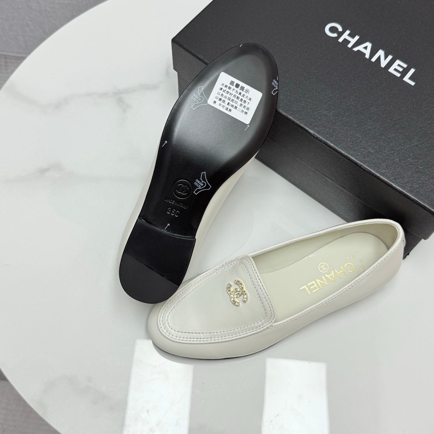 CC LOAFERS 25S IN WHITE CALFSKIN GOLD HARDWARE WITH STONES