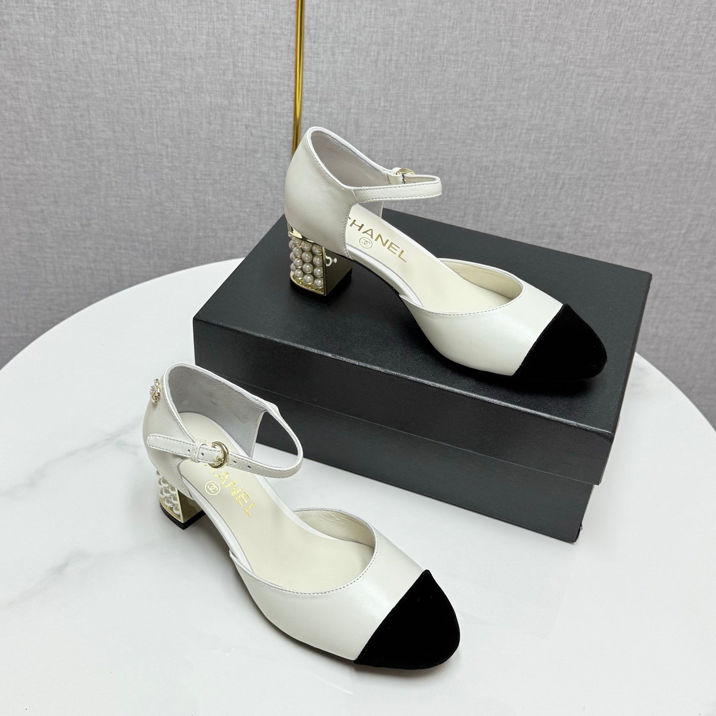 CC MARY JANE HEELS 25S IN WHITE LAMBSKIN AND BLACK SUEDE WITH PEARL HEEL STYLE 7