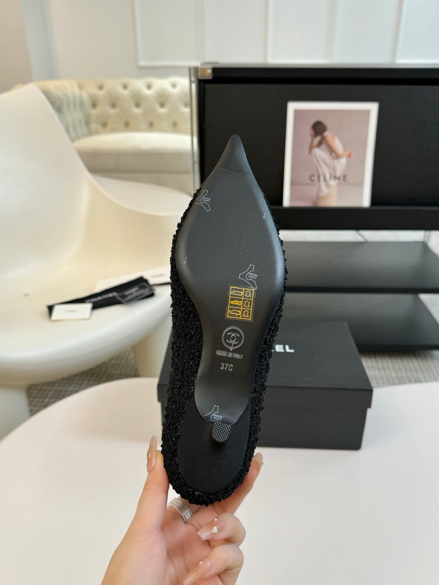 CC MARY JANE IN BLACK WOOL TWEED AND SATIN