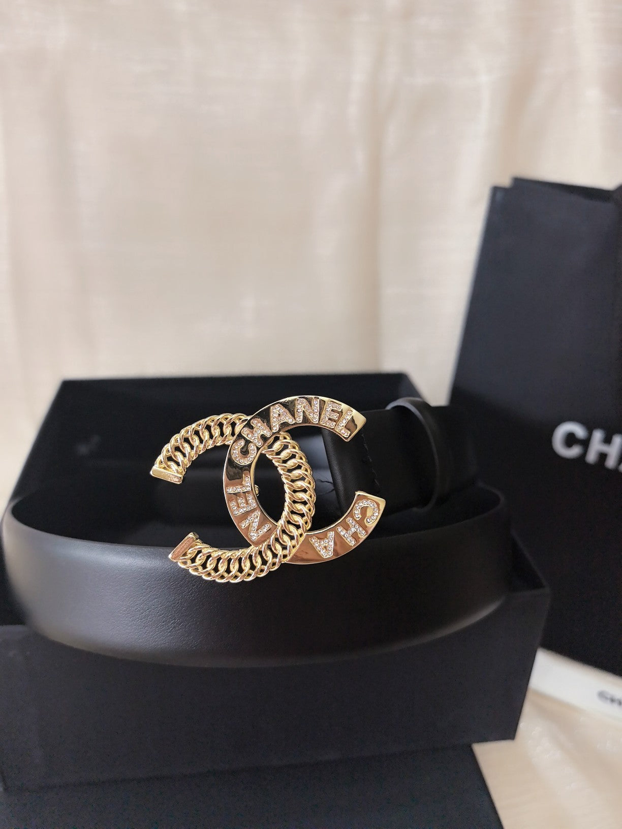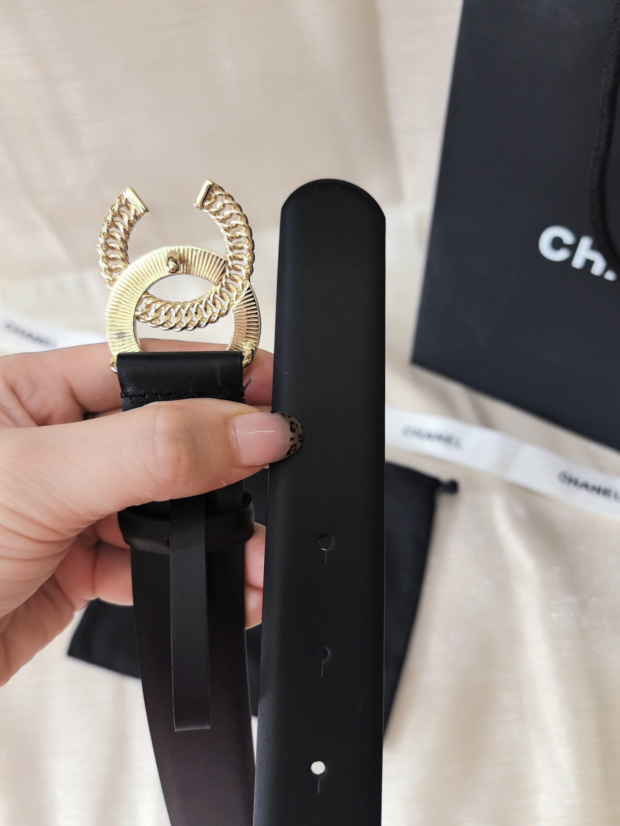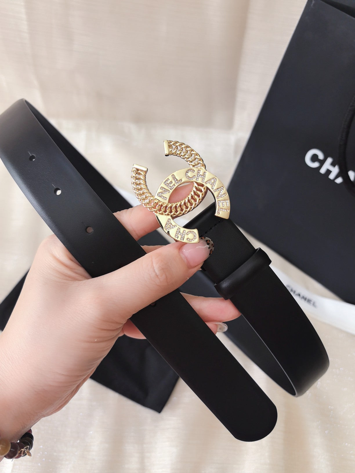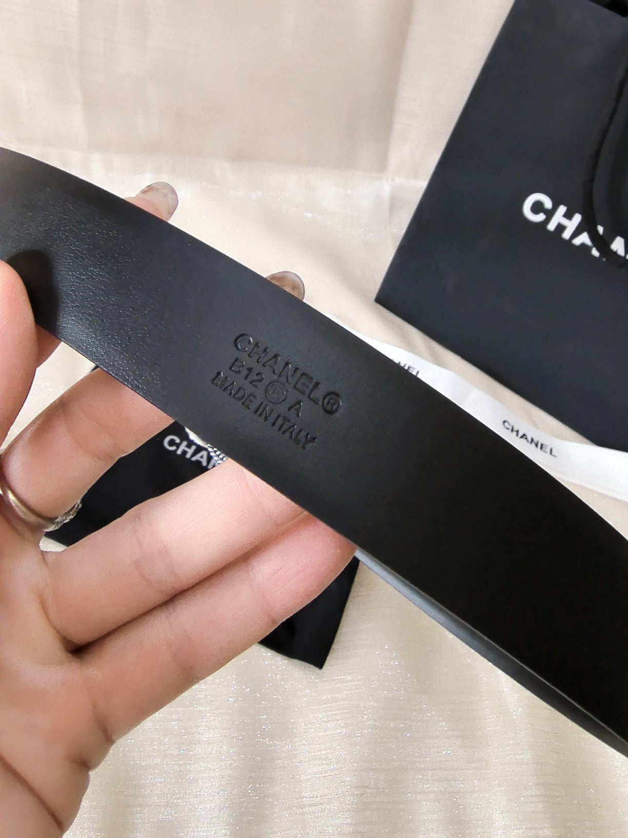 CC MEDIUM 30 MM BELT BLACK CALFSKIN GOLD HARDWARE WITH LETTER
