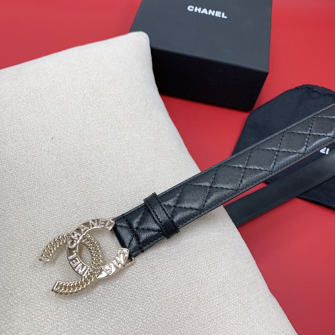 CC MEDIUM 30 MM BELT BLACK EMBROIDERED CALFSKIN GOLD HARDWARE WITH LETTER