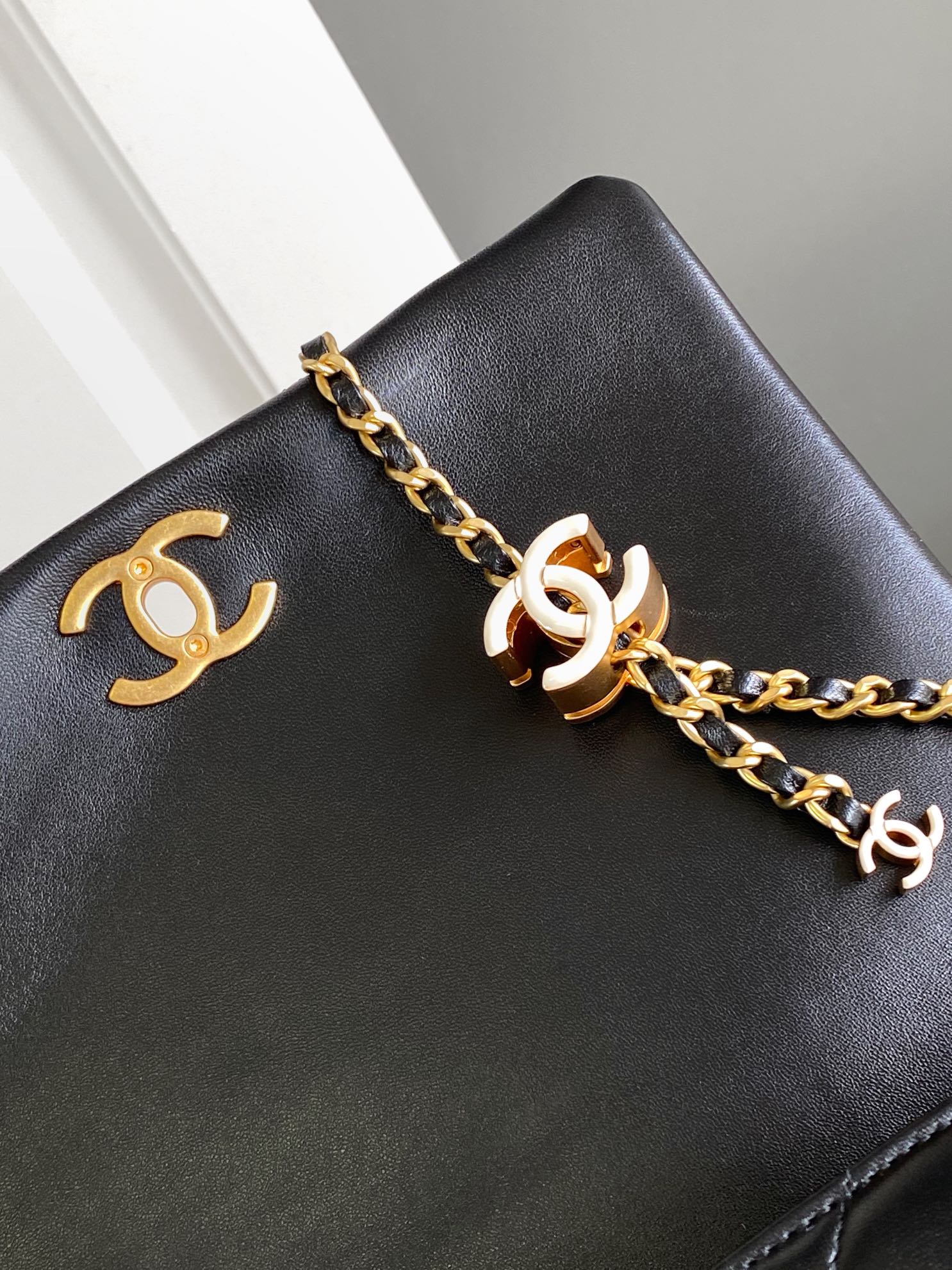 CC MINI 22 HANDBAG IN BLACK CALFSKIN GOLD HARDWARE