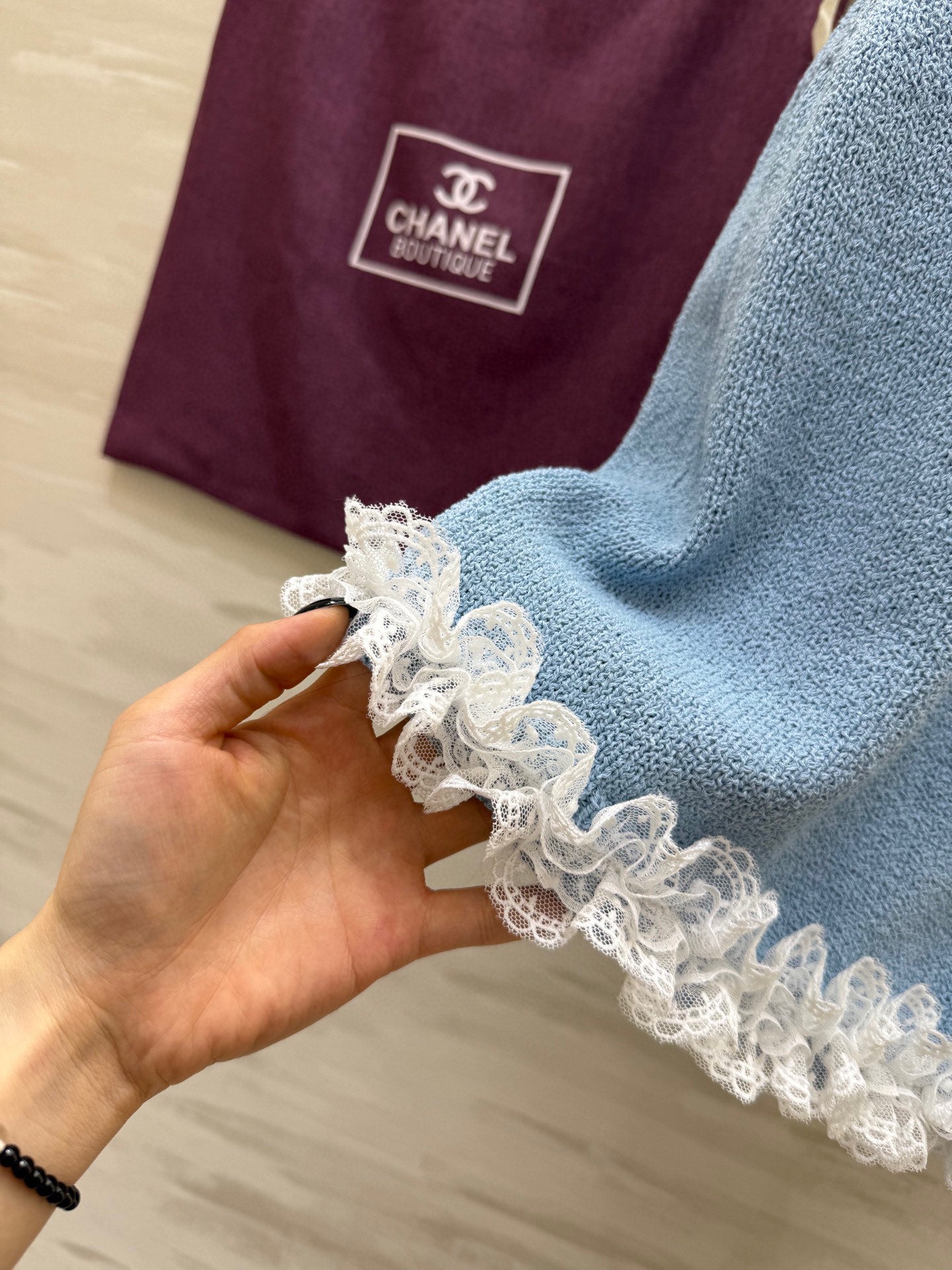 CC Patchwork Lace T-shirt Blue Cashmere