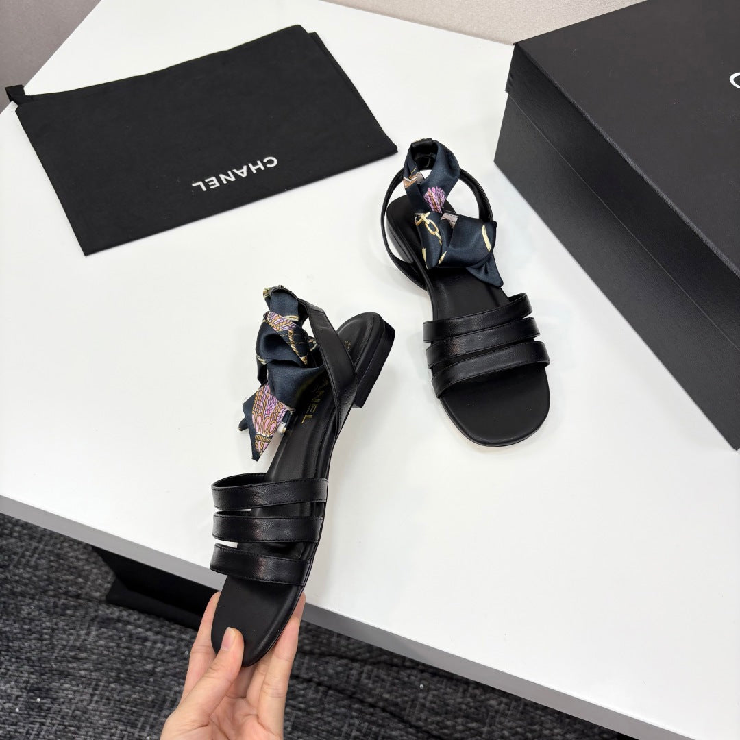 CC SANDAL 25S IN BLACK LAMBSKIN WITH SILK BOW