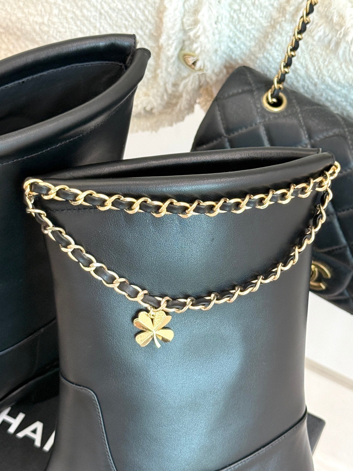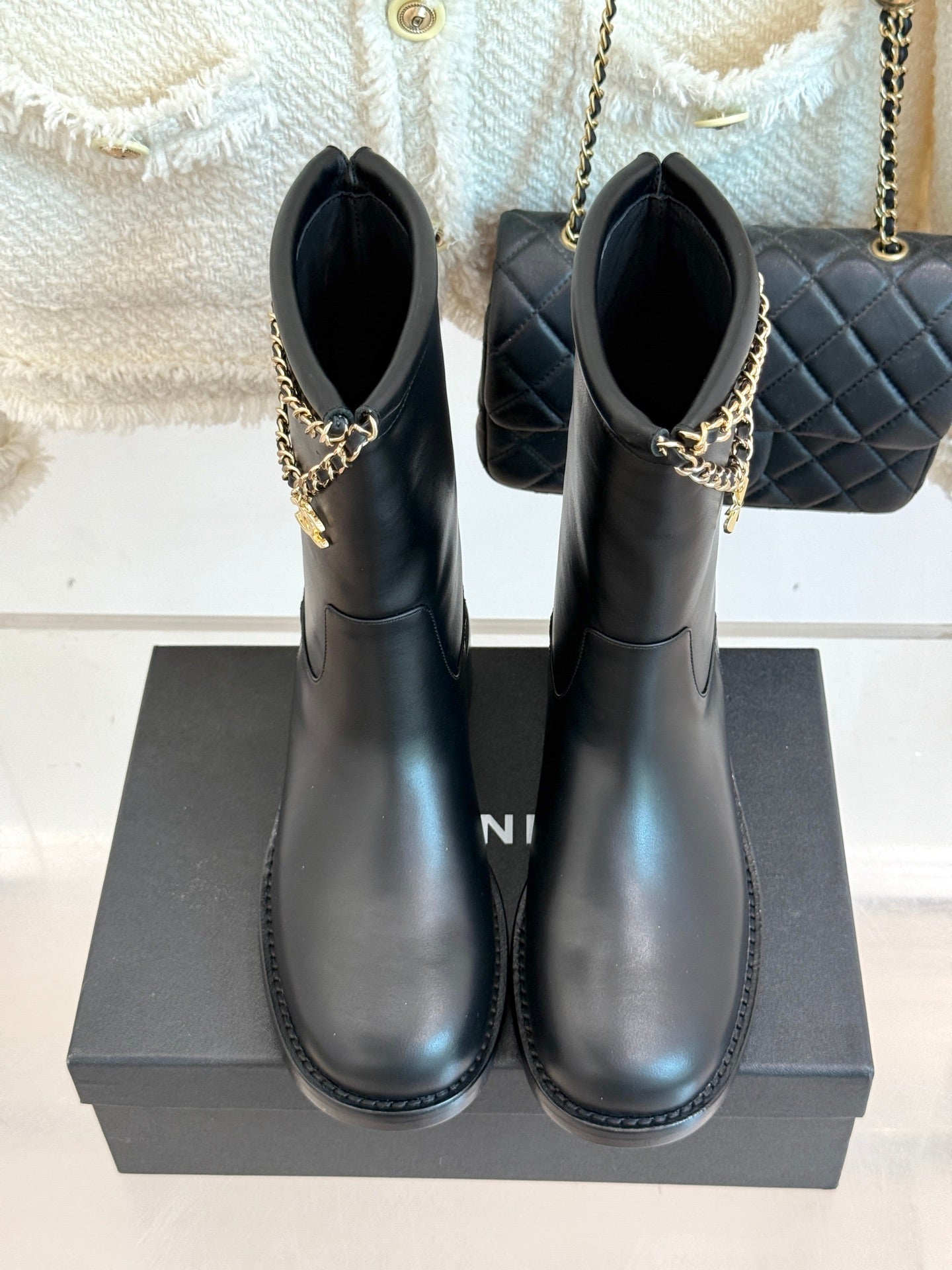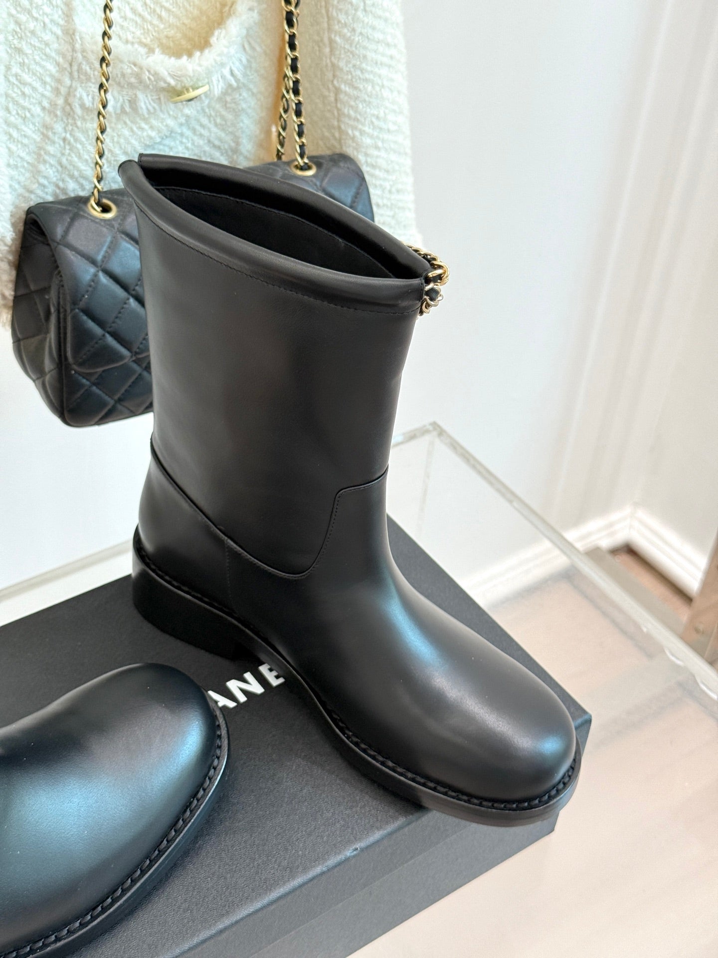 CC SHORT BOOTS IN BLACK CALFSKIN