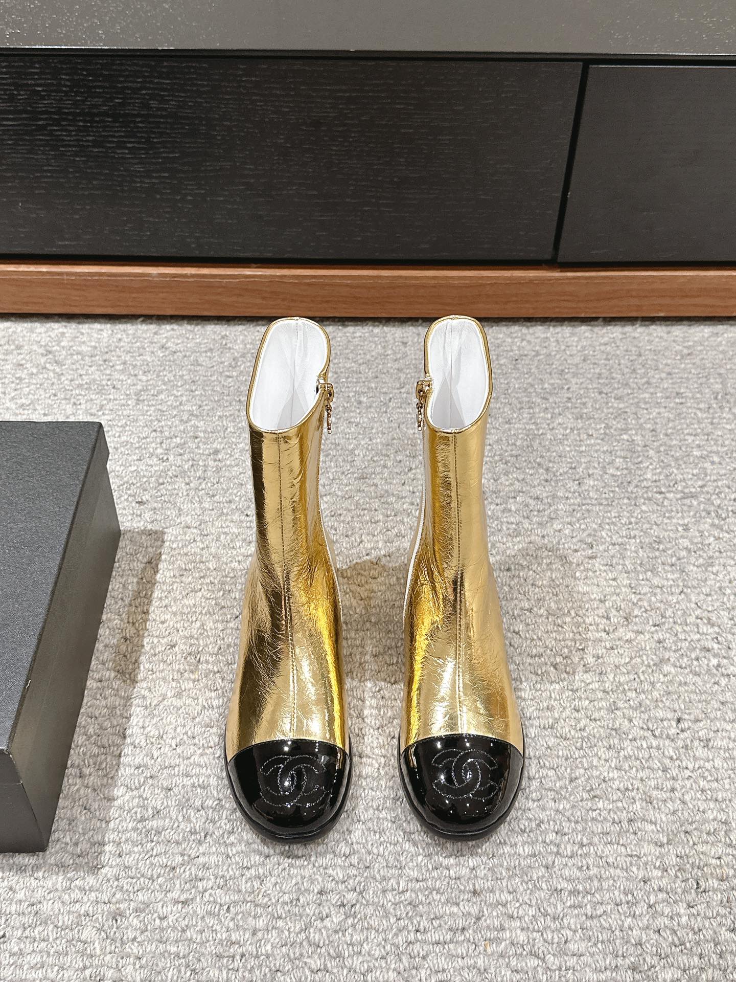 CC SHORT BOOTS IN GOLDEN MIX BLACK LAMBSKIN