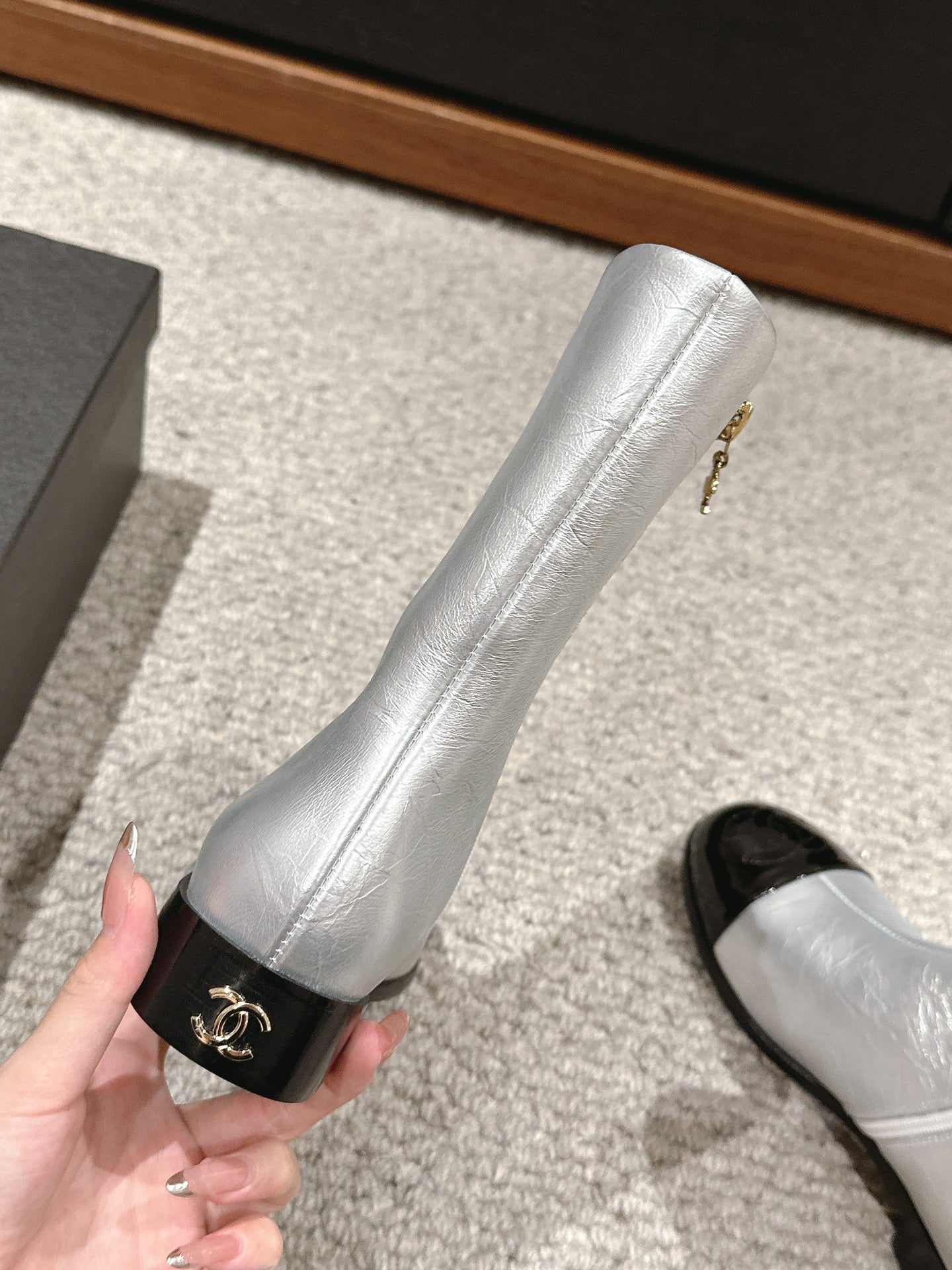 CC SHORT BOOTS IN SILVER MIX BLACK LAMBSKIN