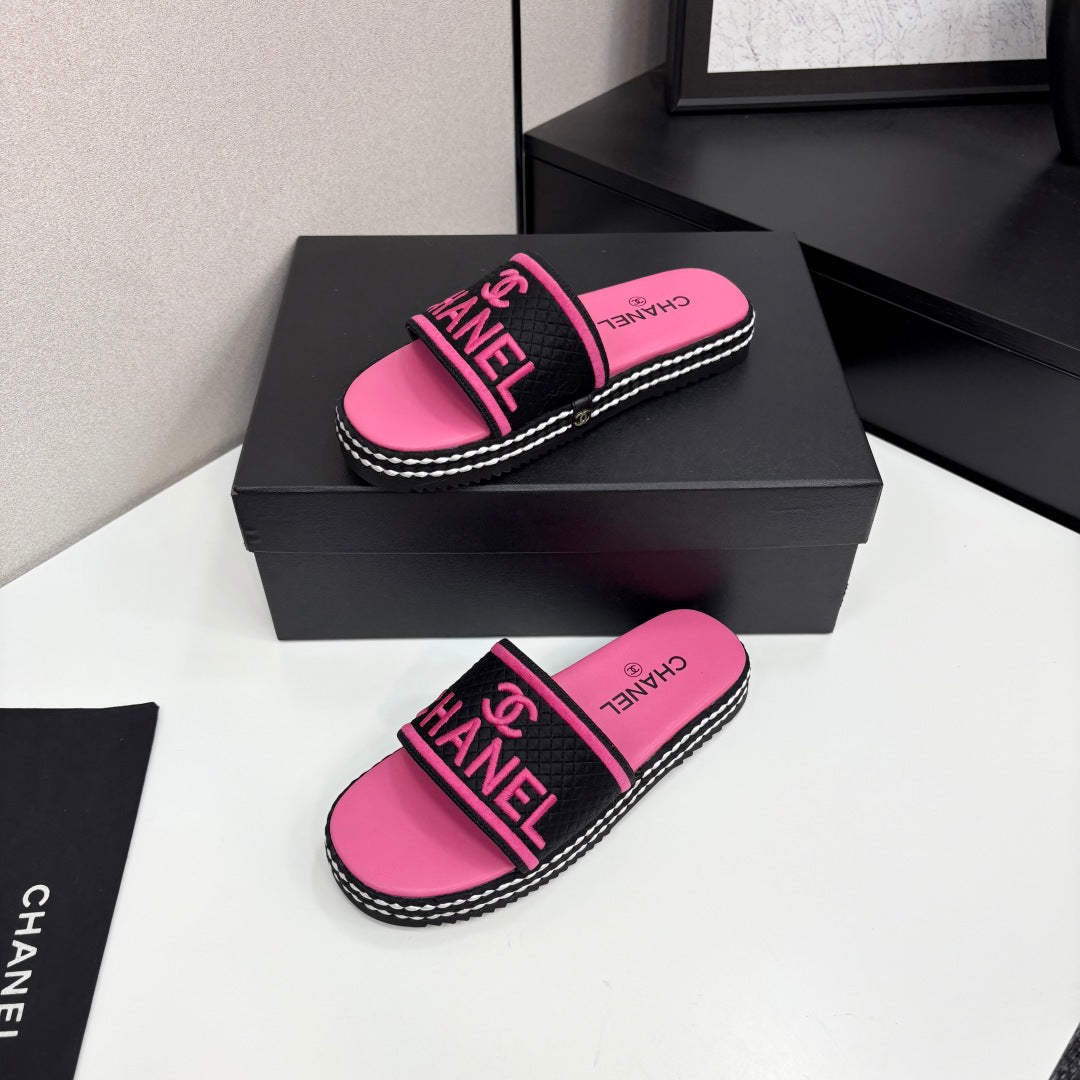 CC SLIDE SANDALS 25S IN PINK FABRIC AND CALFSKIN