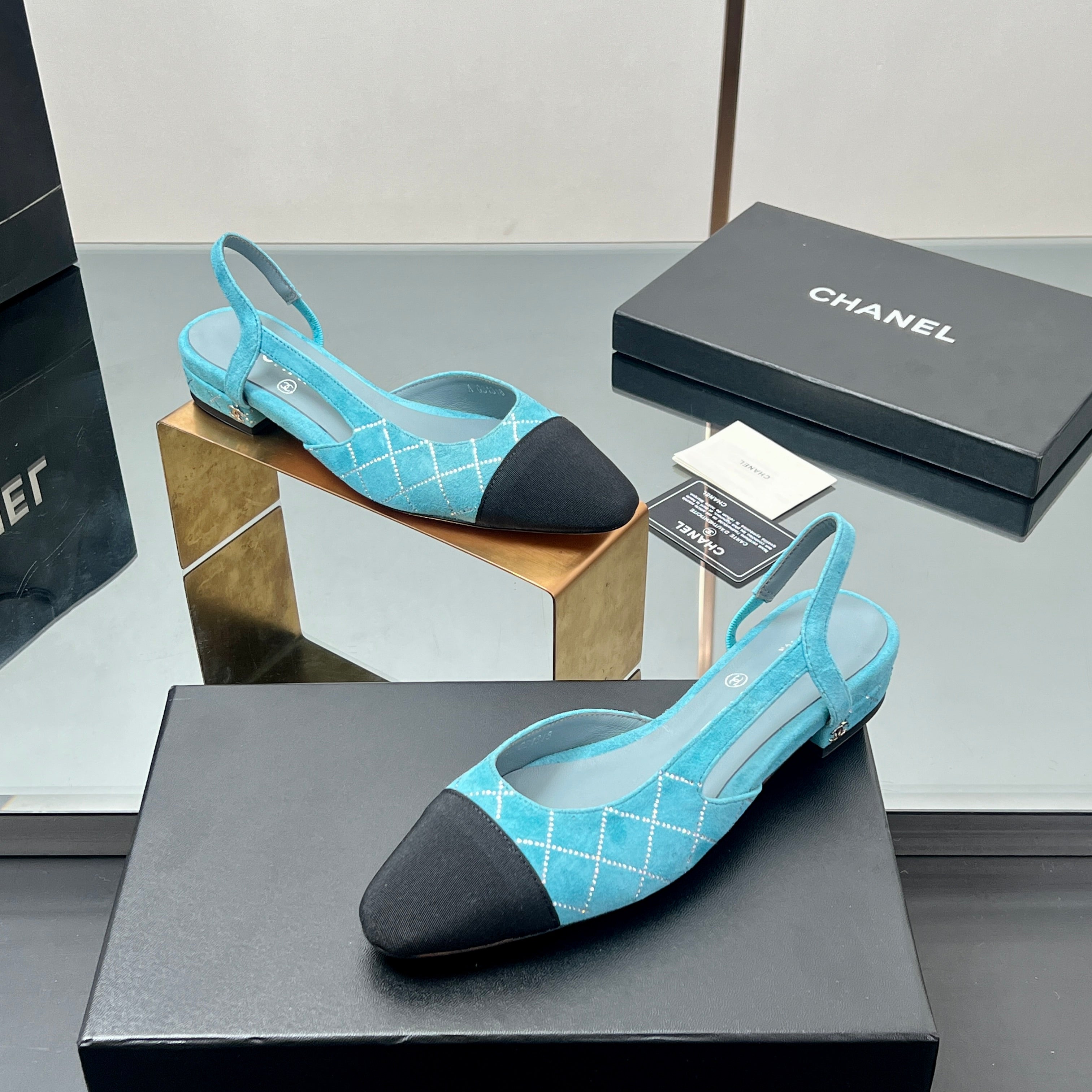 CC SLINGBACK 25S 25 MM IN BLUE SUEDE AND BLACK FABRIC