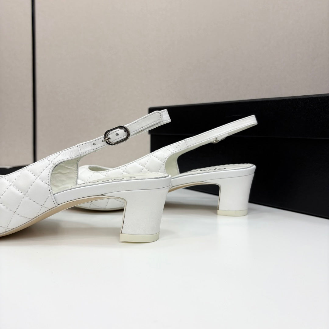CC SLINGBACK 25S 30 MM IN WHITE LAMBSKIN MIX BLACK FABRIC