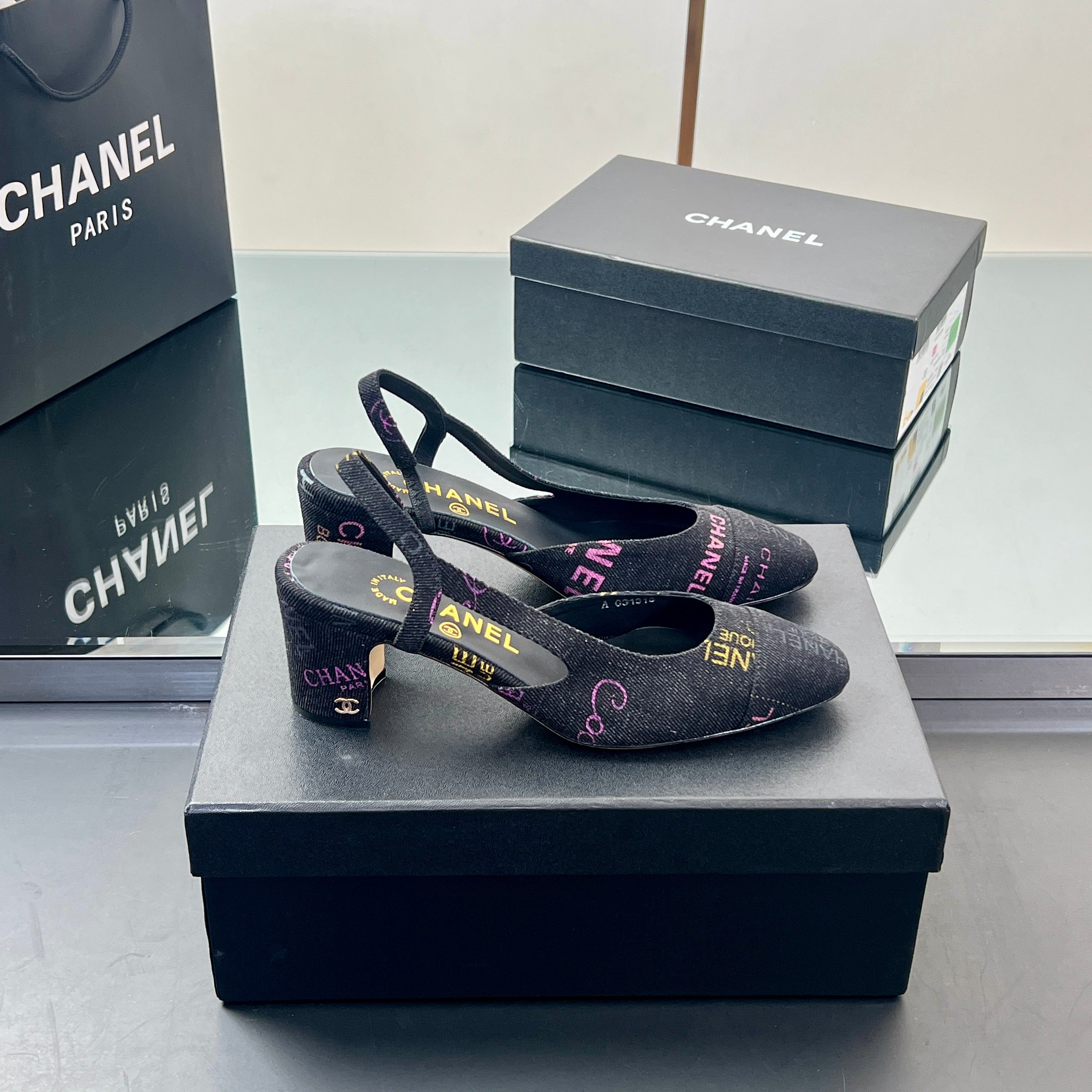 CC SLINGBACK 25S 65 MM IN BLACK FABRIC PRINT BRAND LOGO