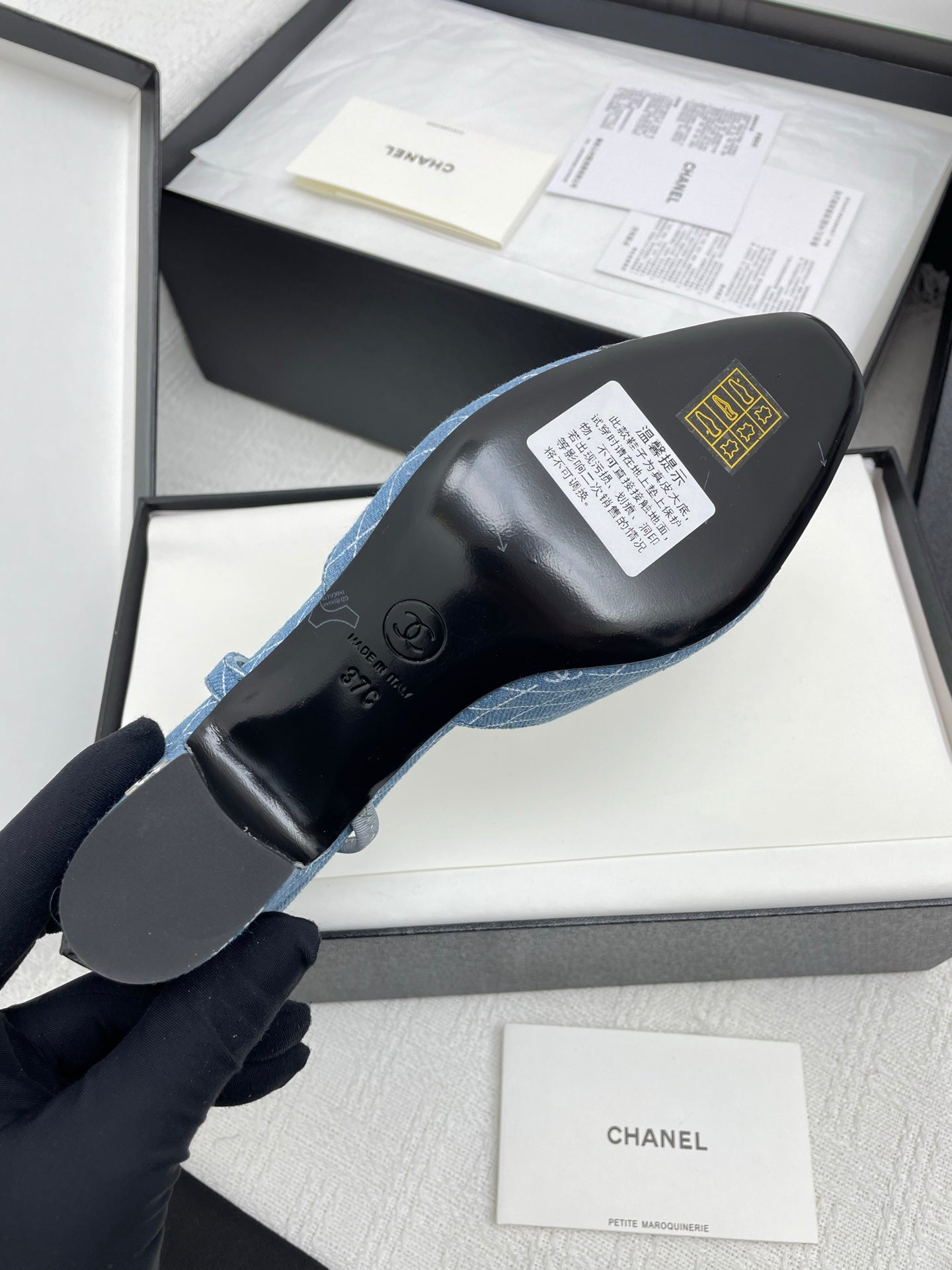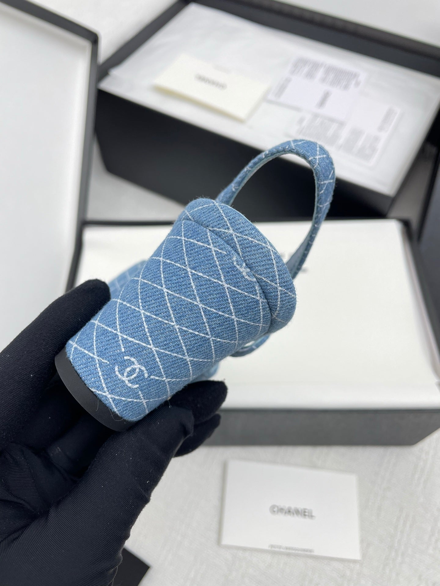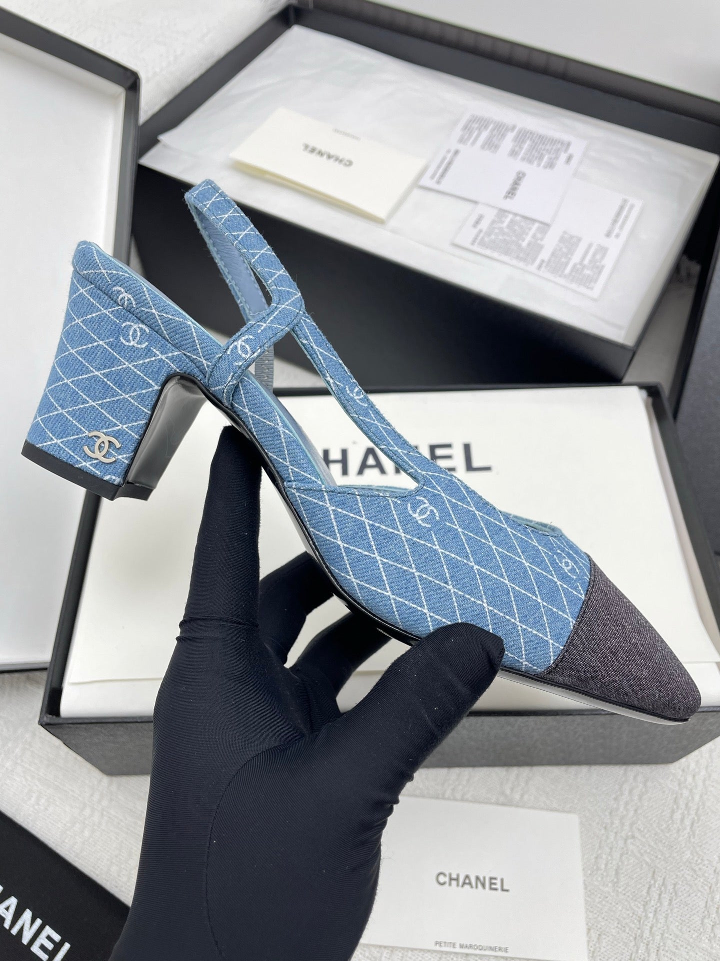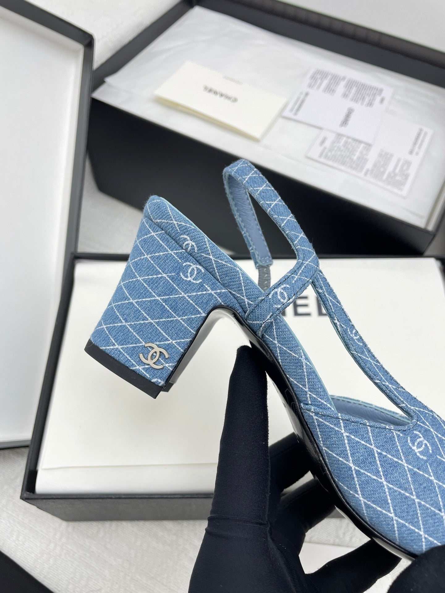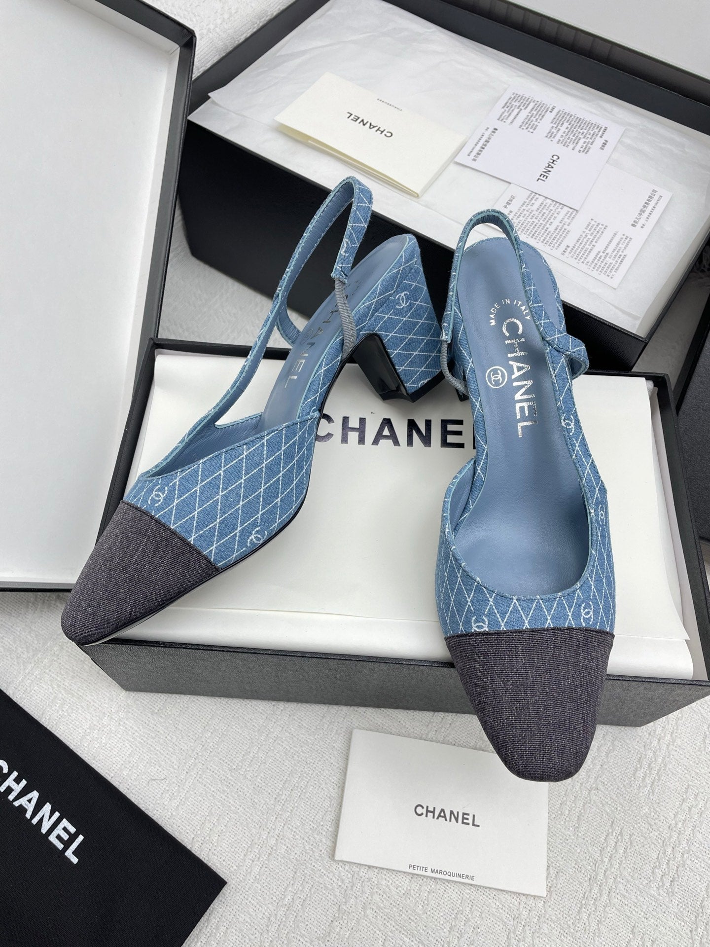 CC SLINGBACK 25S 65 MM IN BLUE DENIM WITH PLAID PATTERN