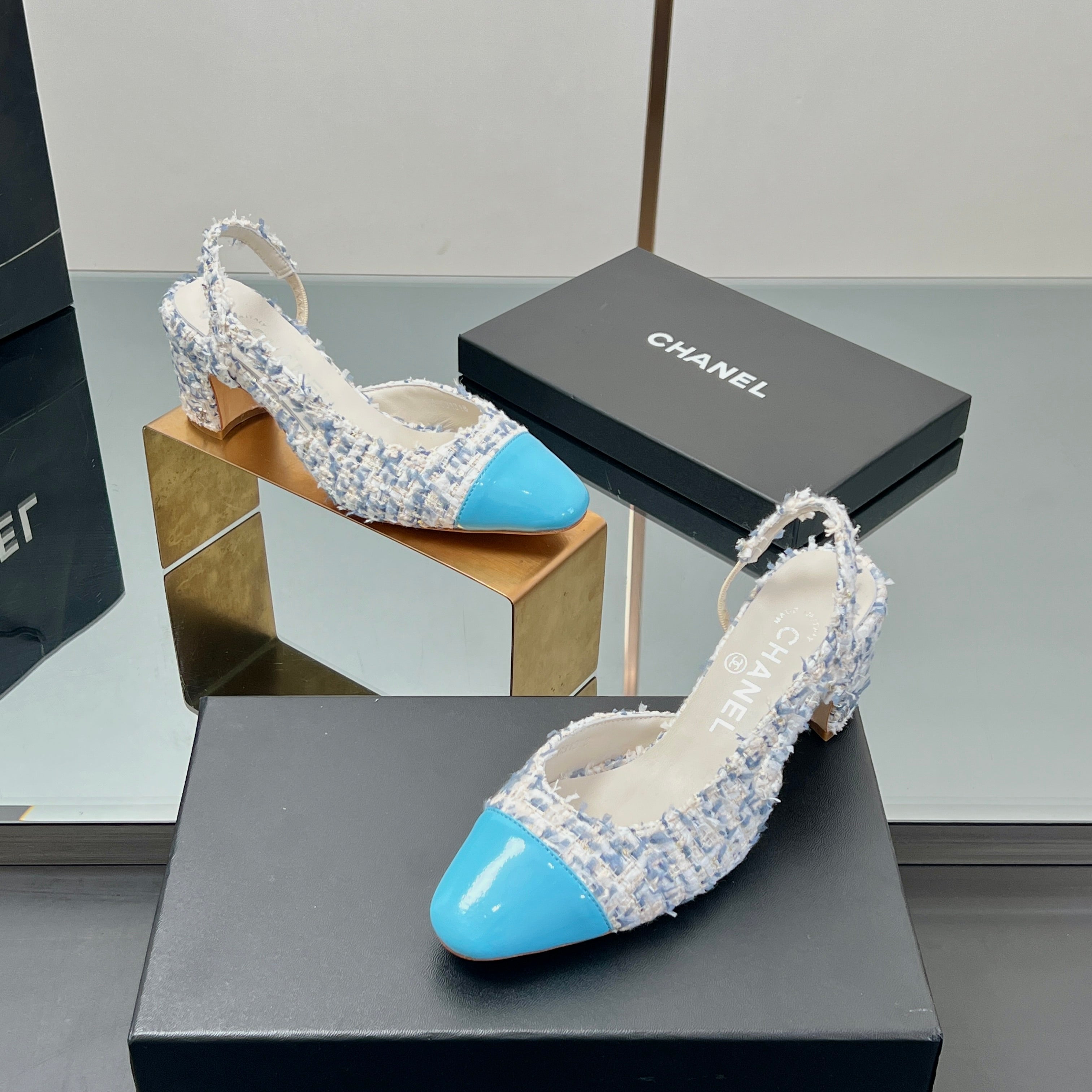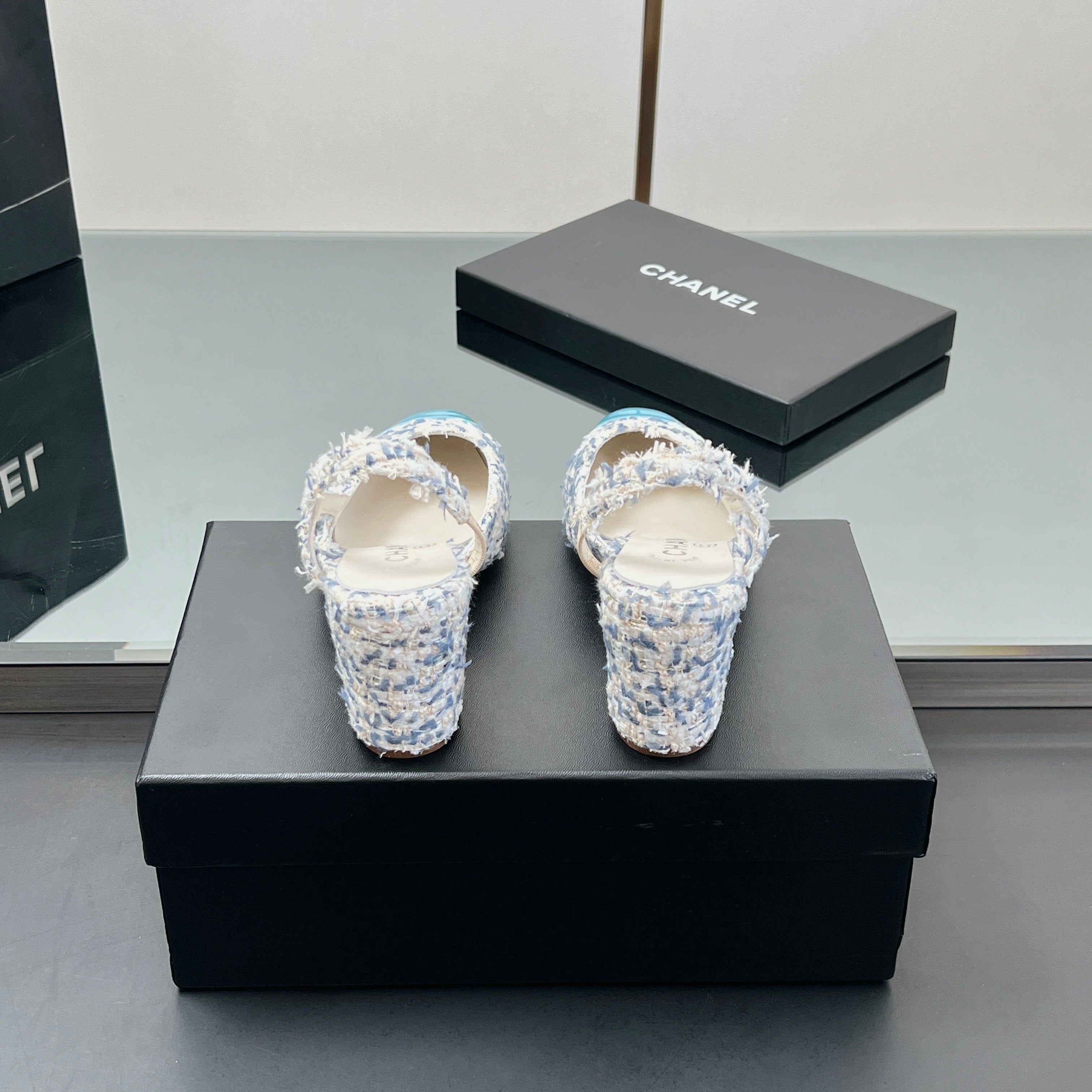 CC SLINGBACK 25S 65 MM IN BLUE TWEED AND GLOSSY LEATHER