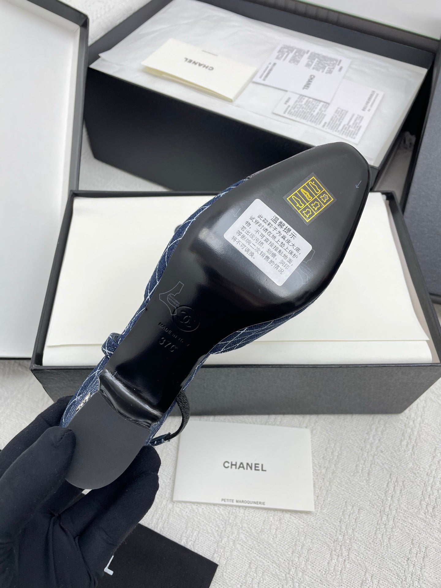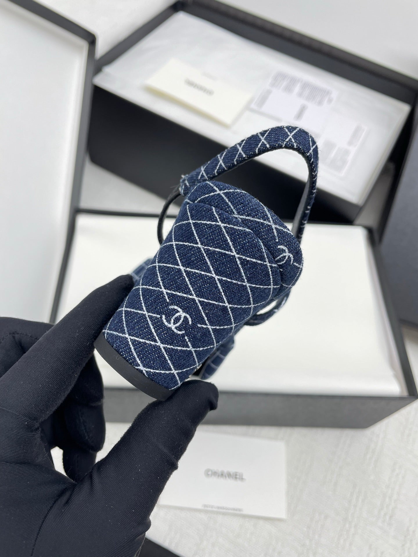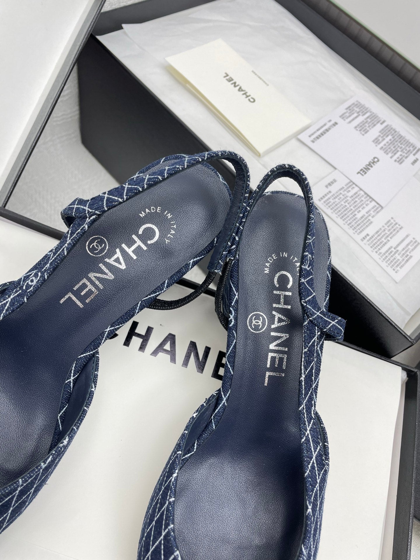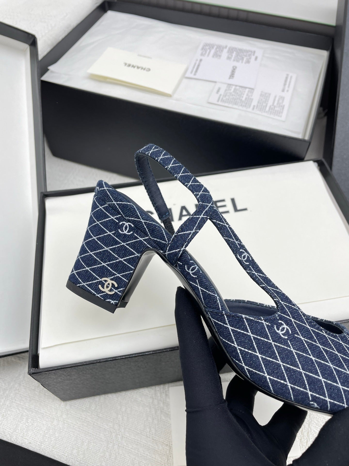 CC SLINGBACK 25S 65 MM IN NAVY BLUE DENIM WITH PLAID PATTERN