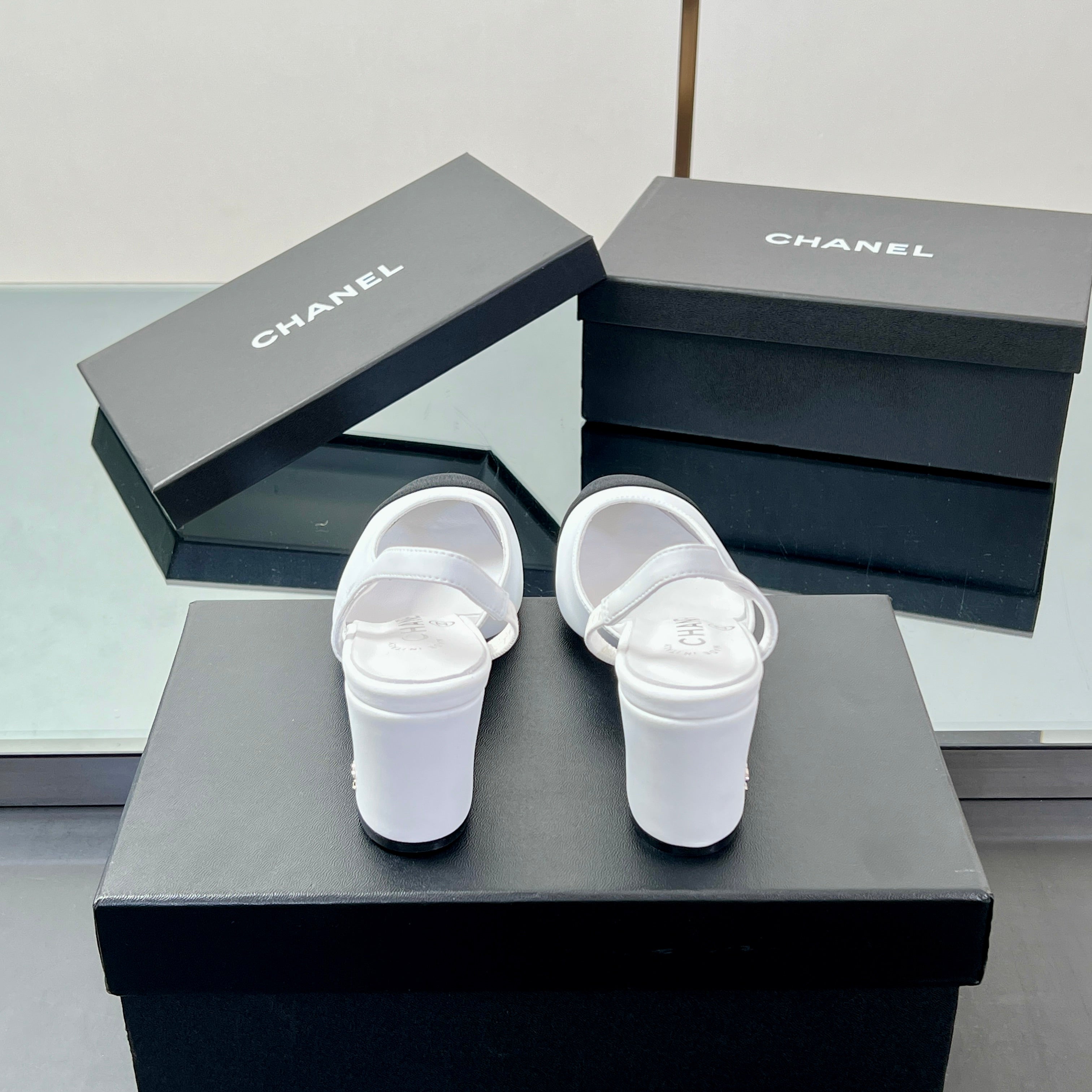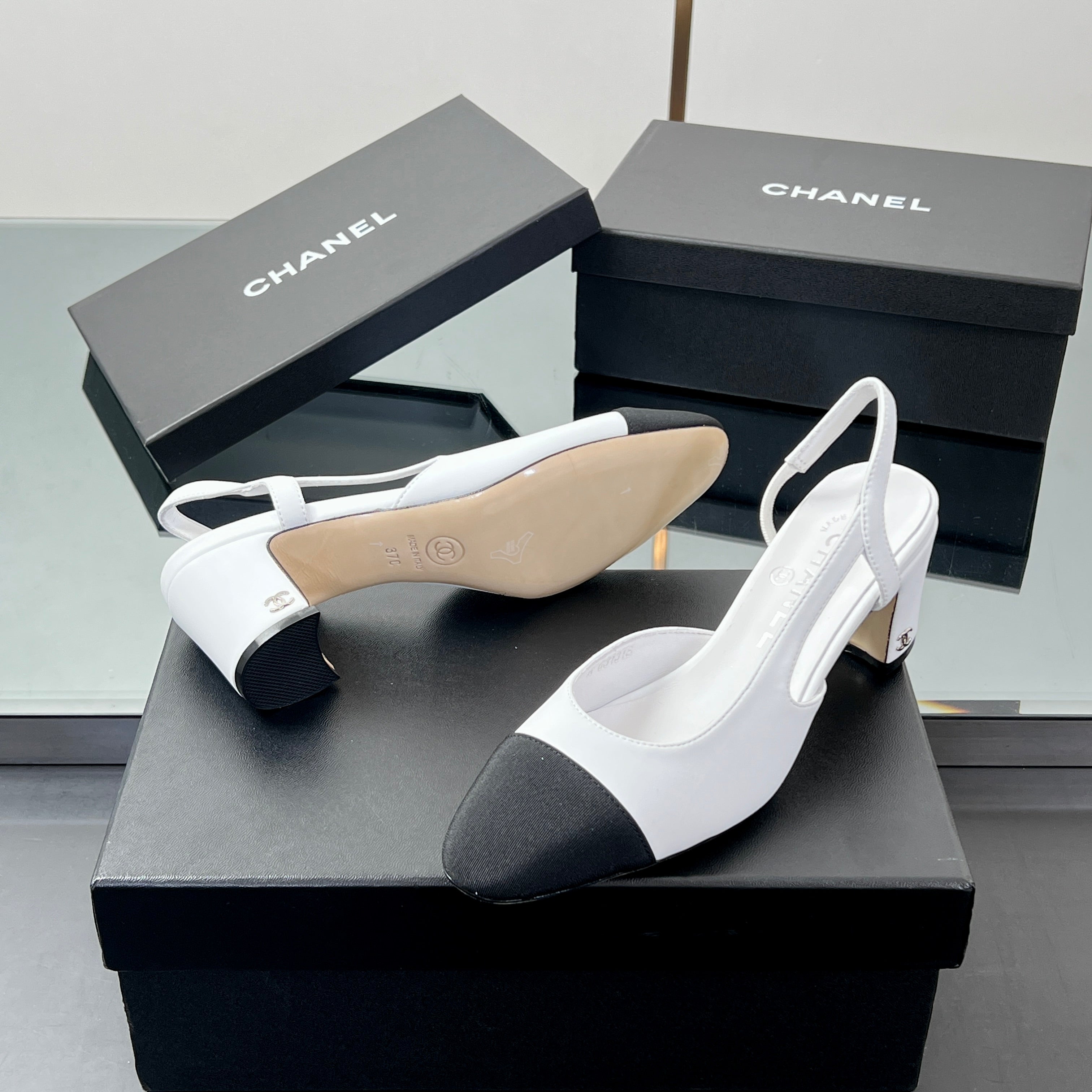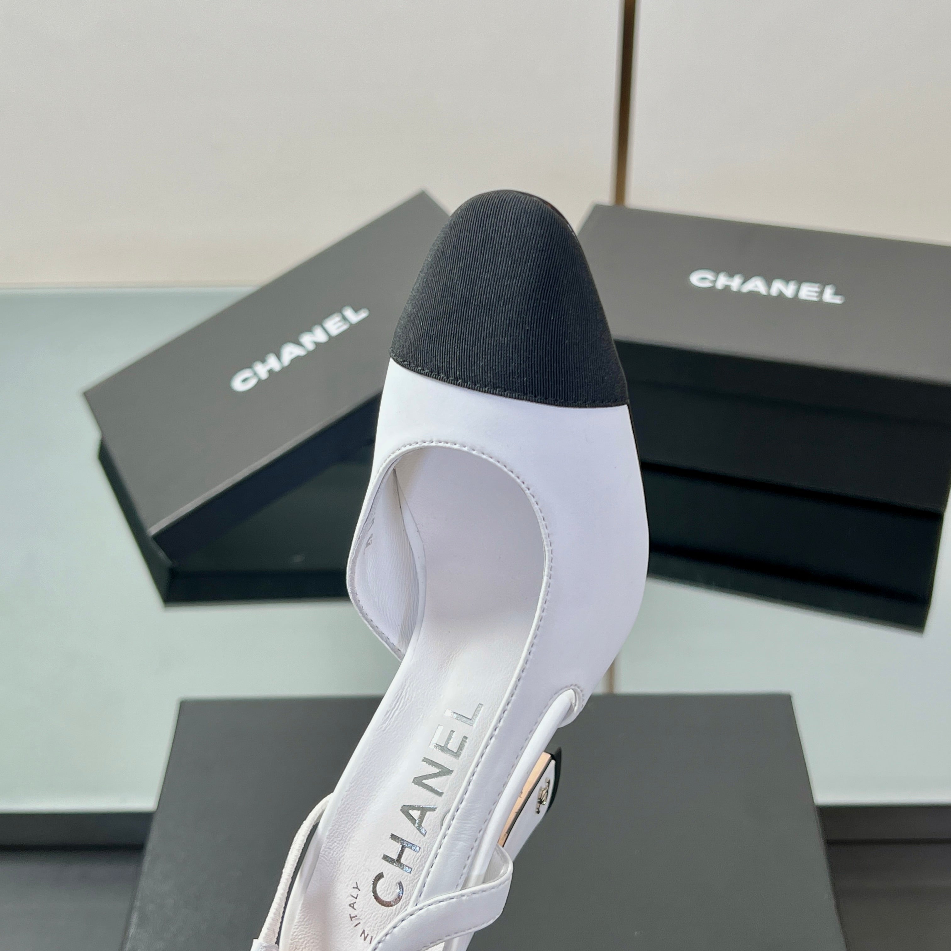 CC SLINGBACK 25S 65 MM IN WHITE LAMBSKIN AND BLACK FABRIC