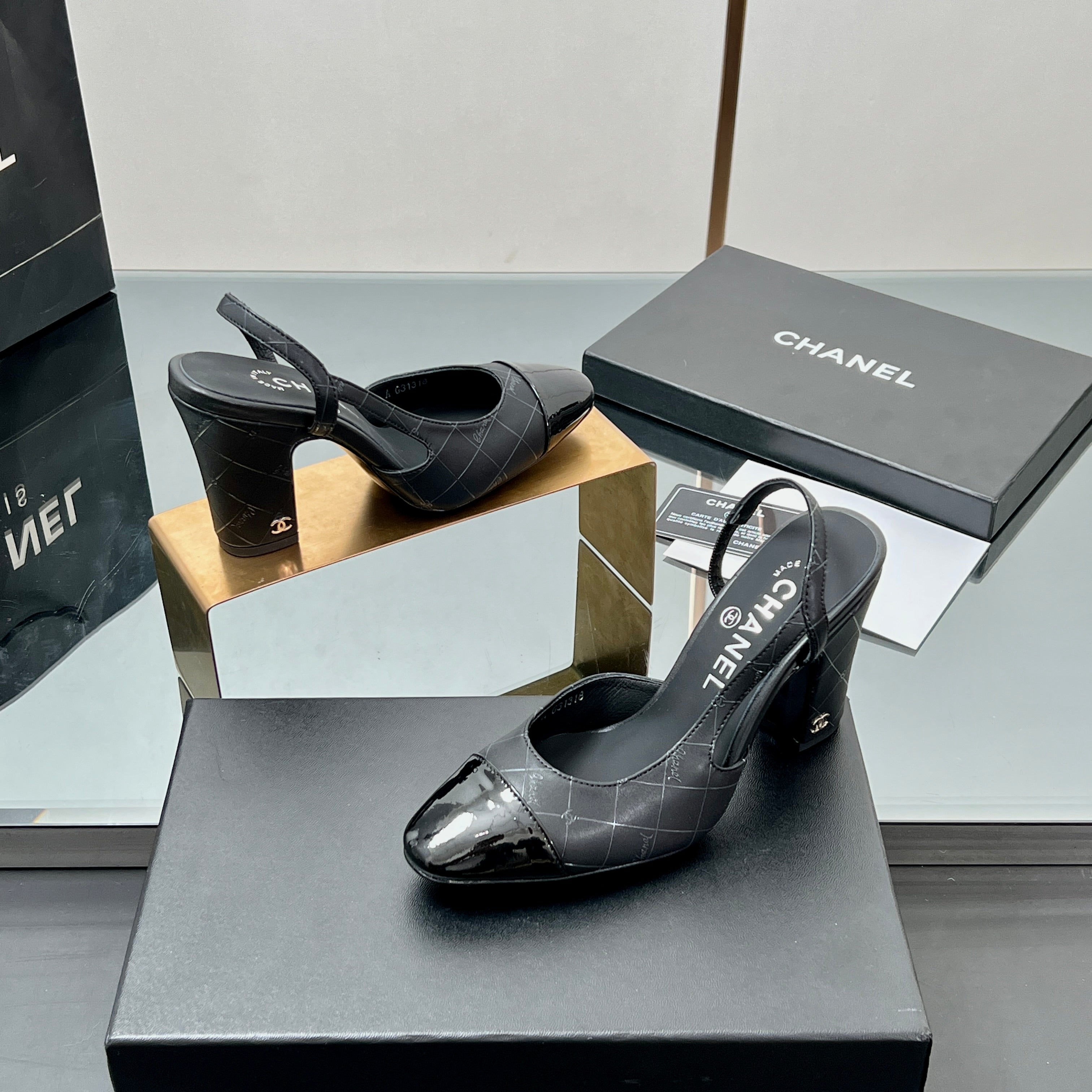 CC SLINGBACK 25S 90 MM IN BLACK LAMBSKIN WITH CHECK PATTERN