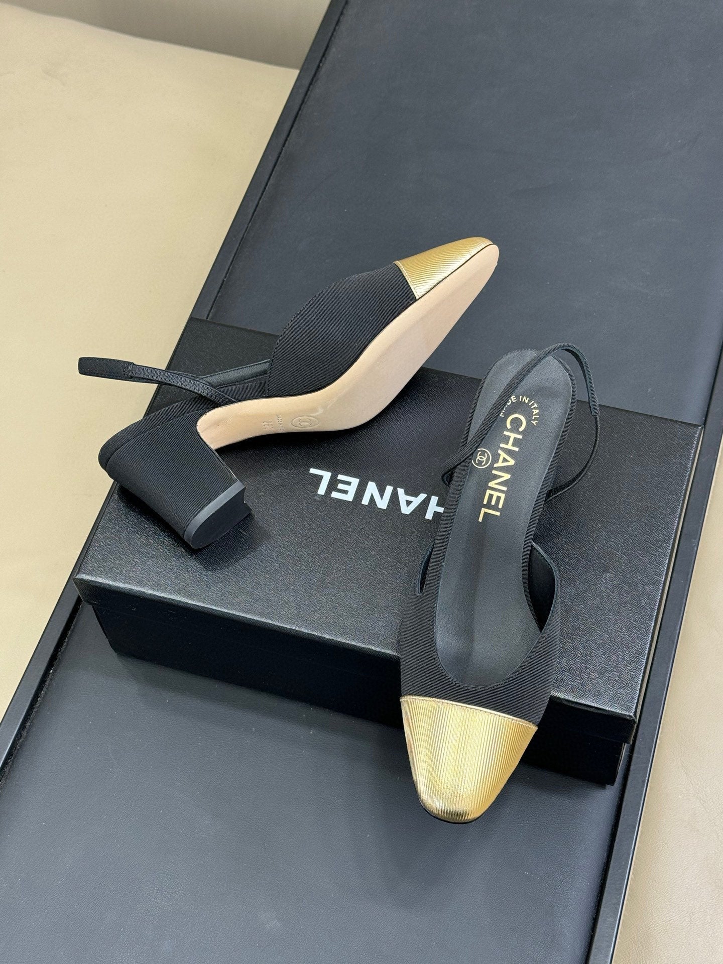 CC SLINGBACK 25S IN BLACK FABRIC MIX GOLD LAMBSKIN