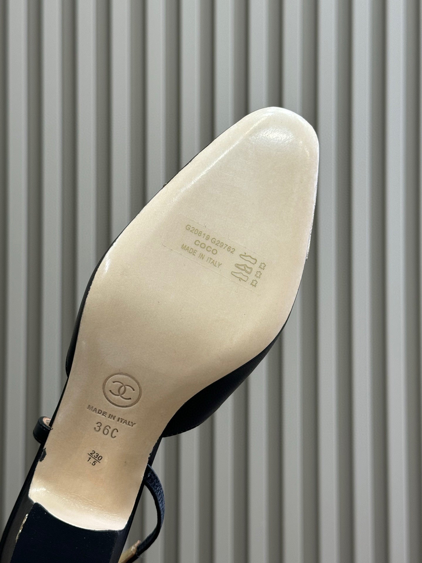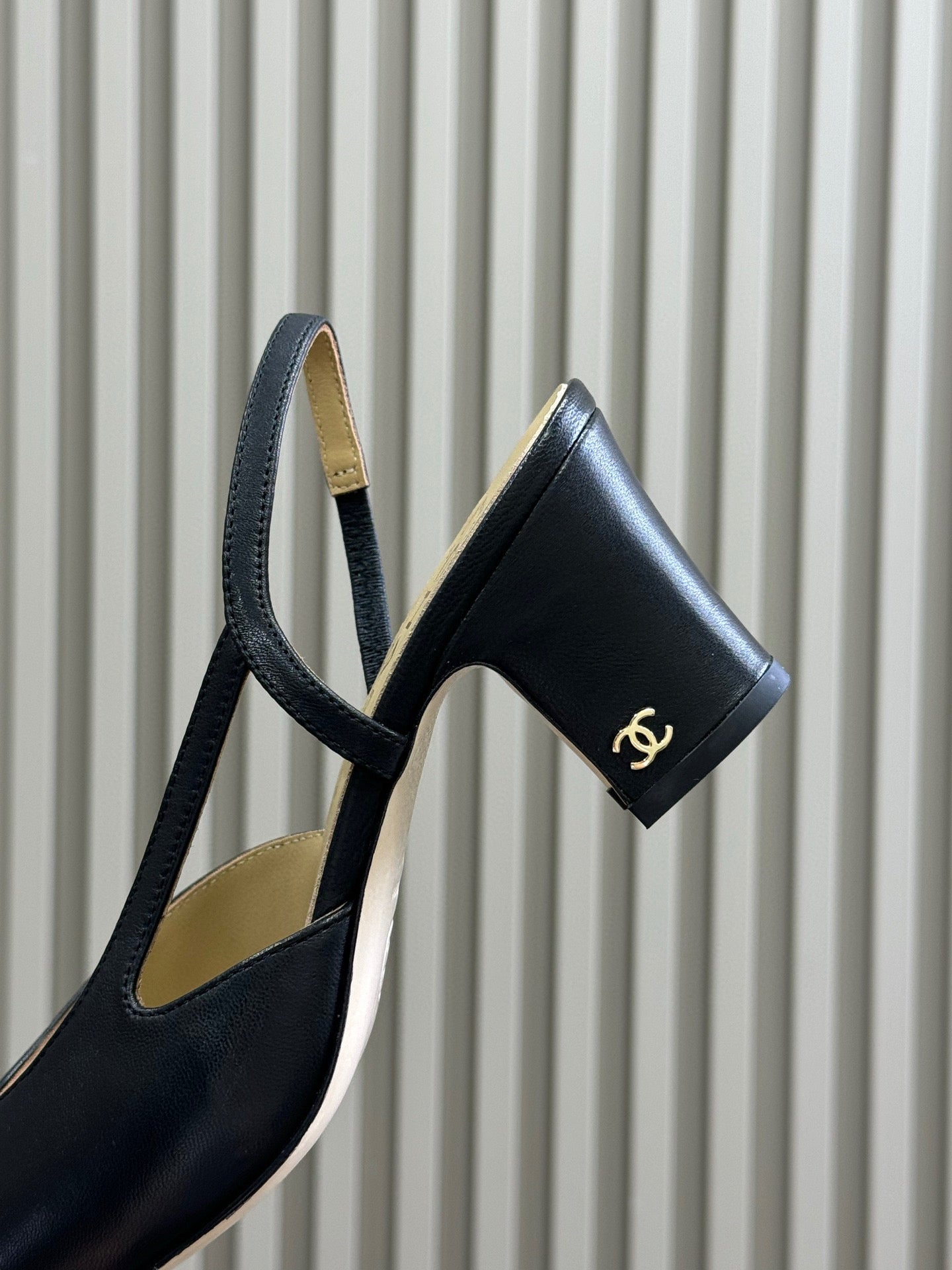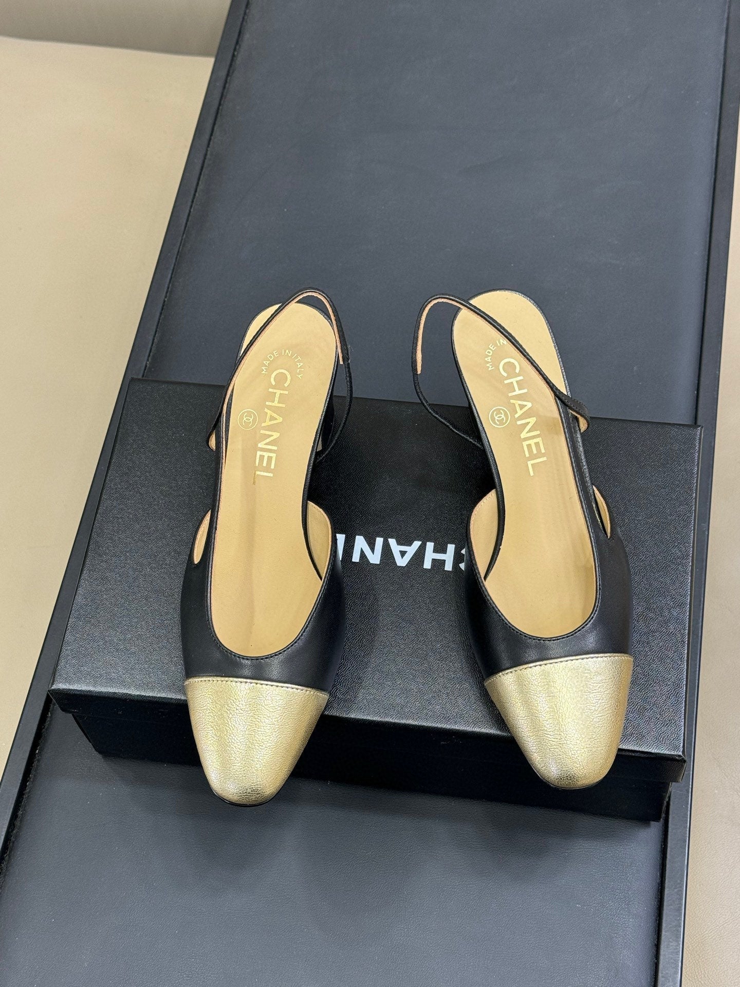 CC SLINGBACK 25S IN BLACK MIX GOLD LAMBSKIN
