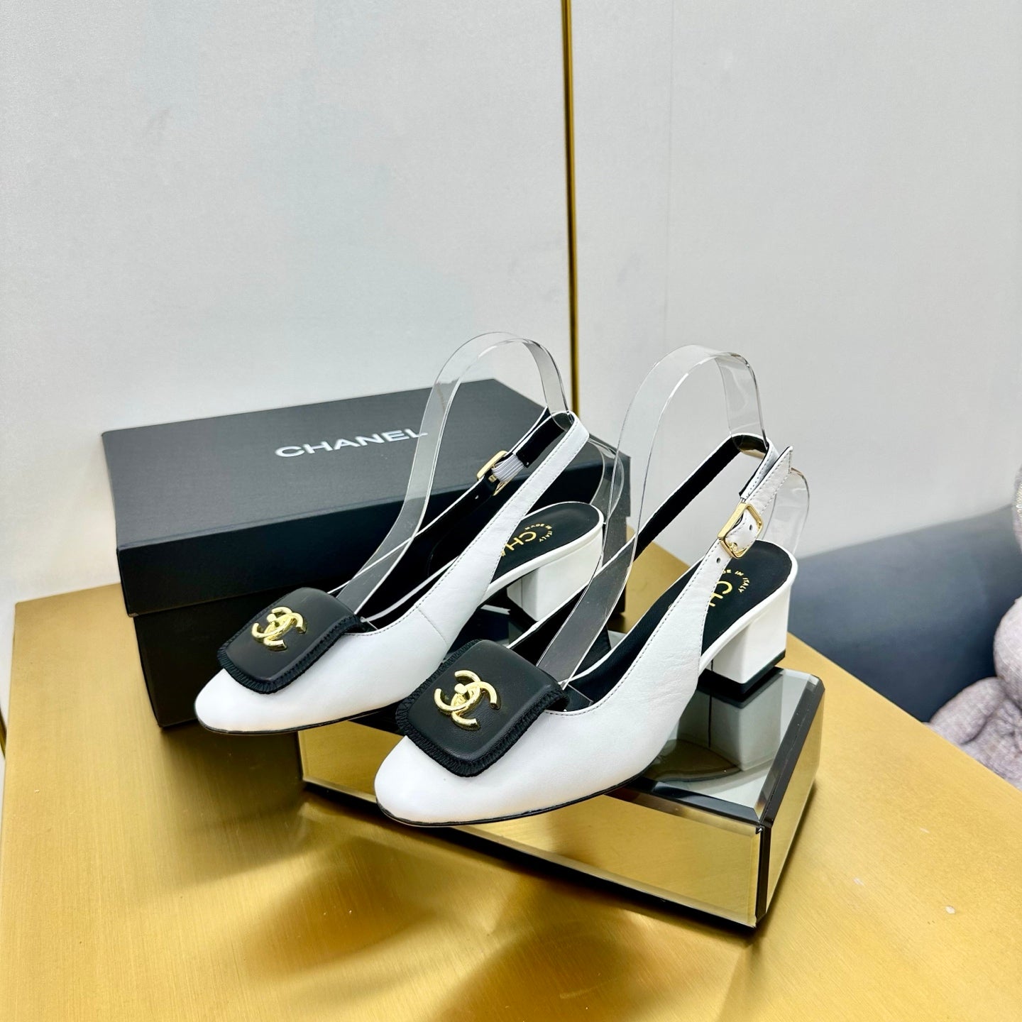 CC SLINGBACK 25S IN WHITE MIX BLACK CALFSKIN WITH GOLD HARDWARE