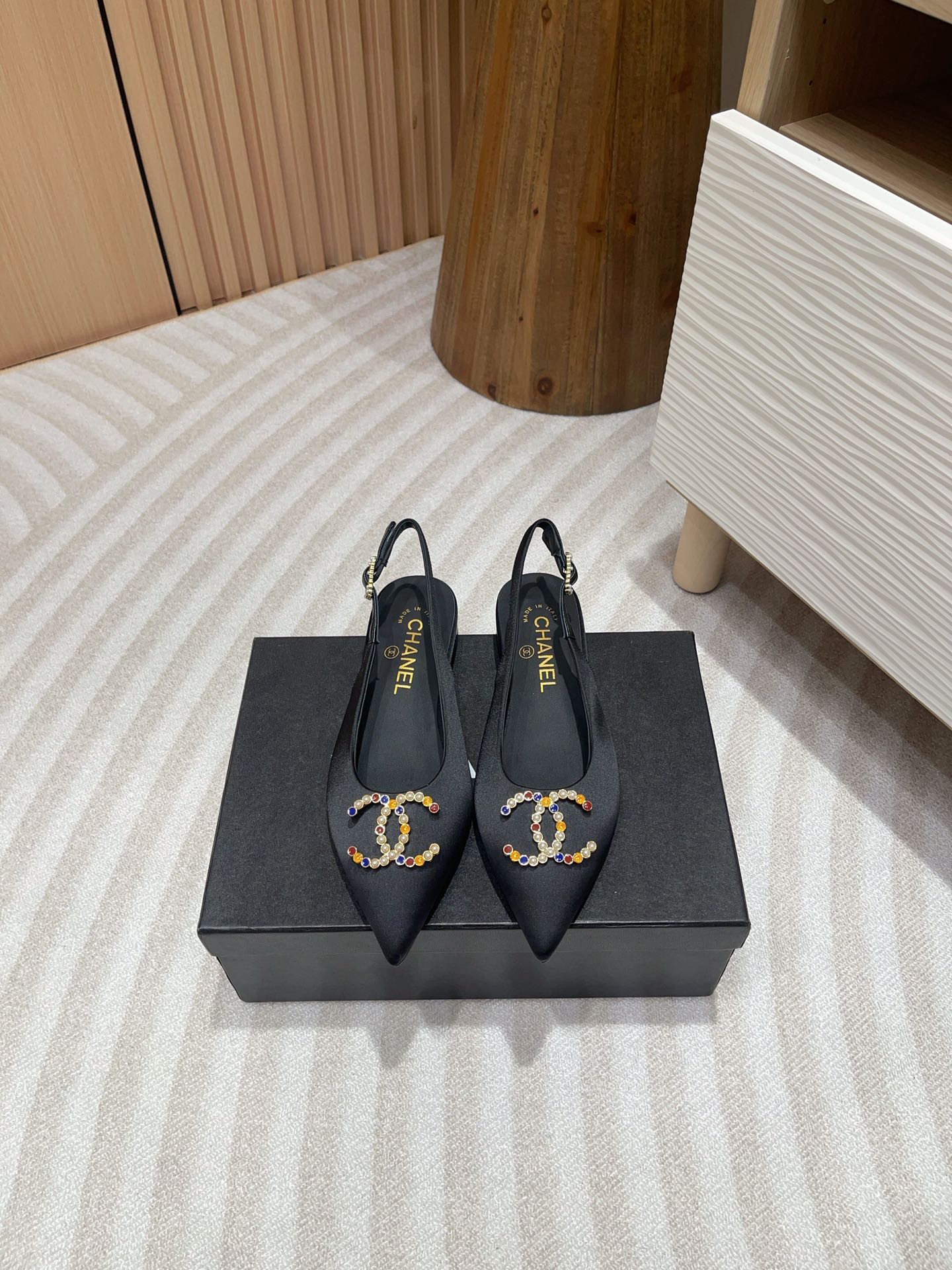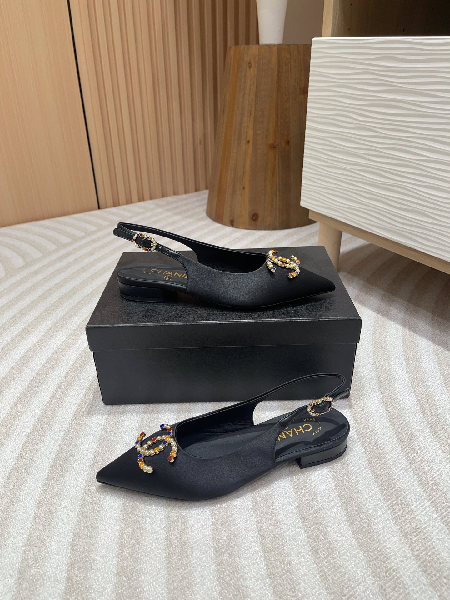 CC SLINGBACKS BLACK SATIN AND LAMBSKIN