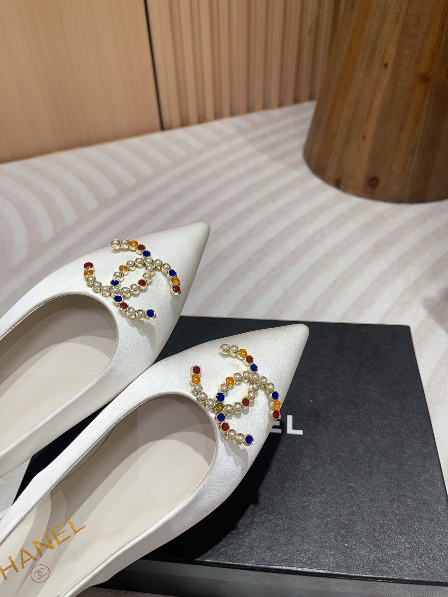 CC SLINGBACKS WHITE SATIN AND LAMBSKIN