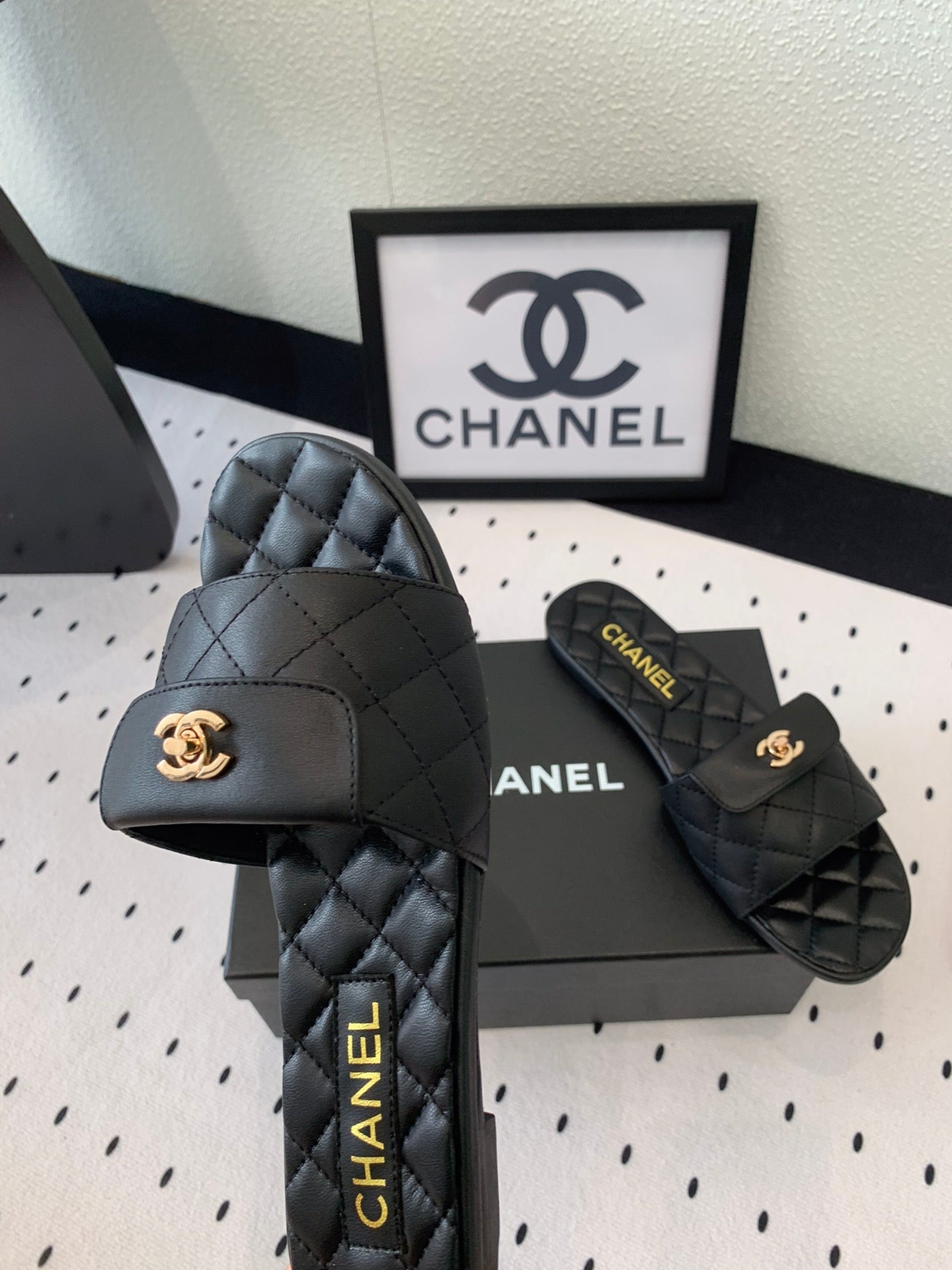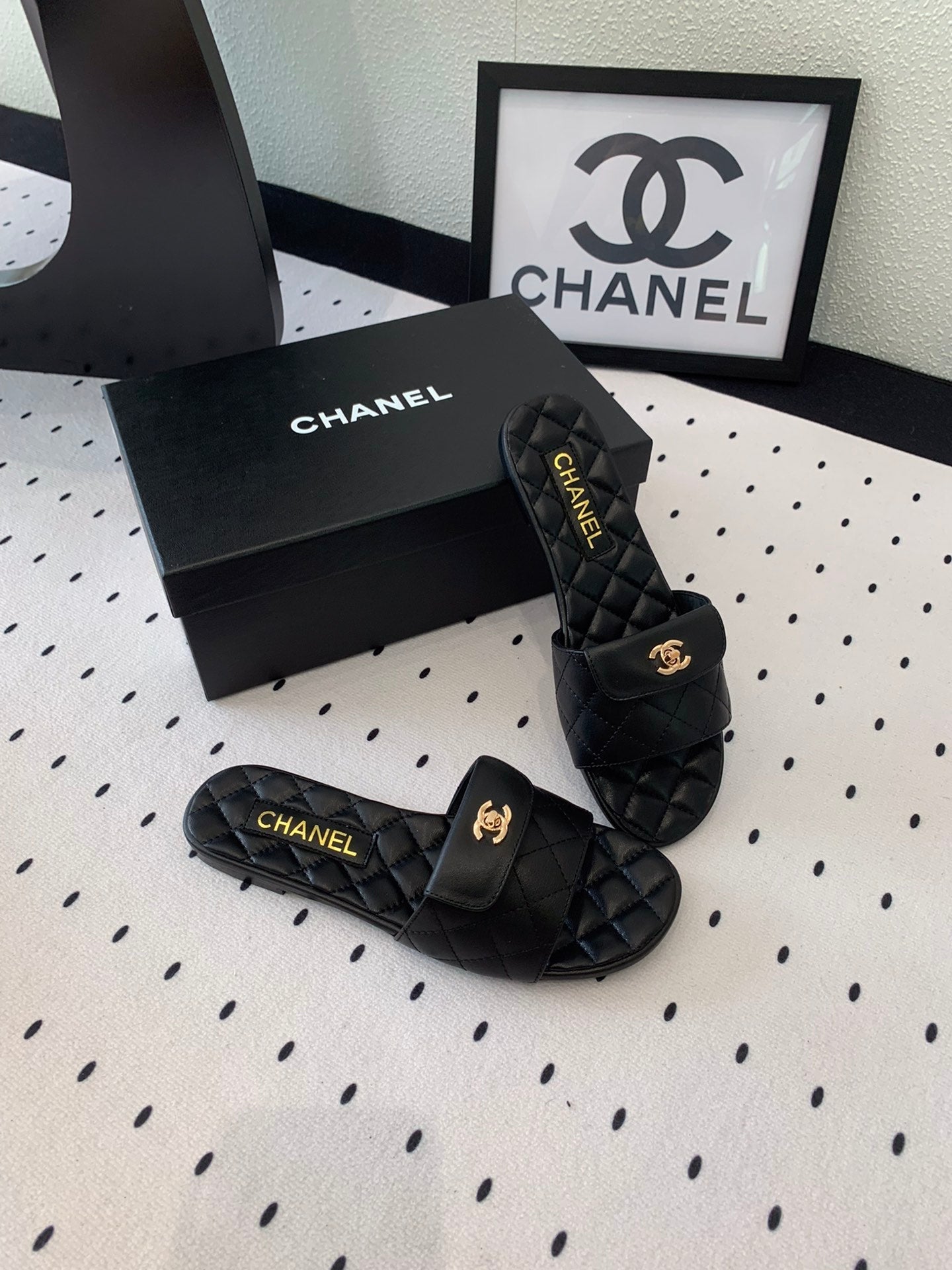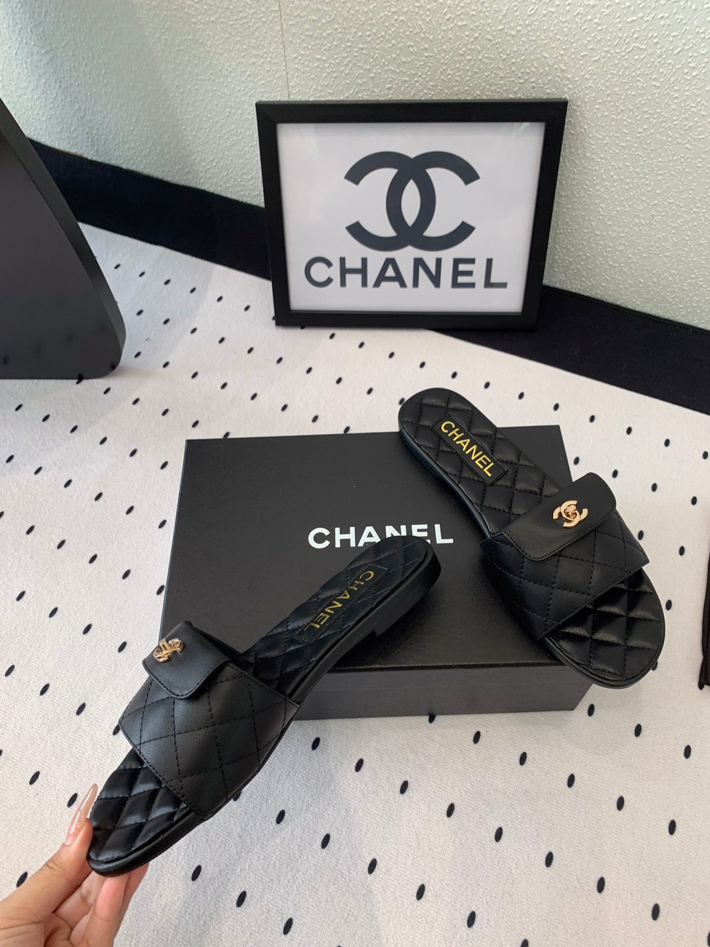 CC SLIPPERS IN BLACK CALFSKIN