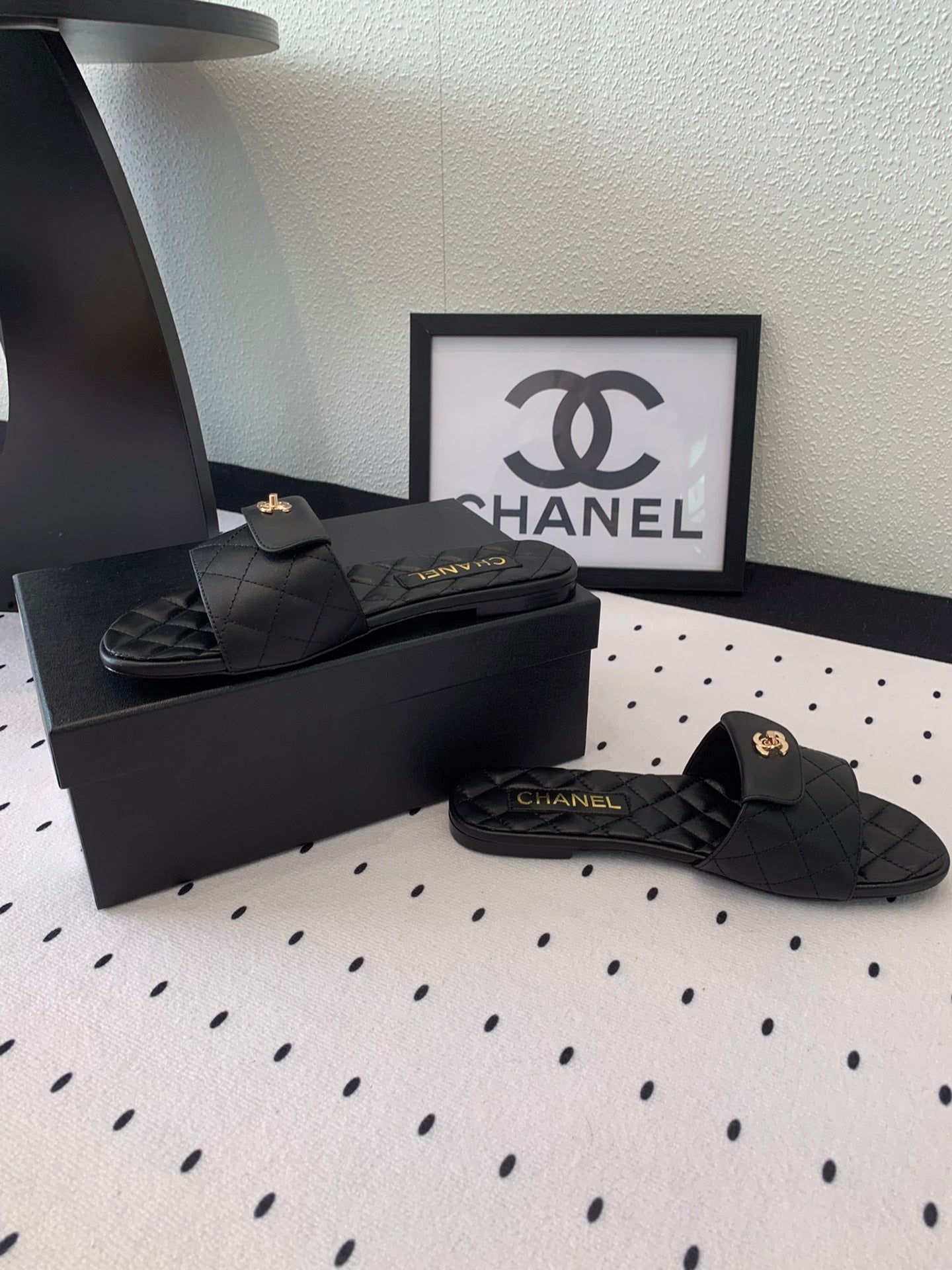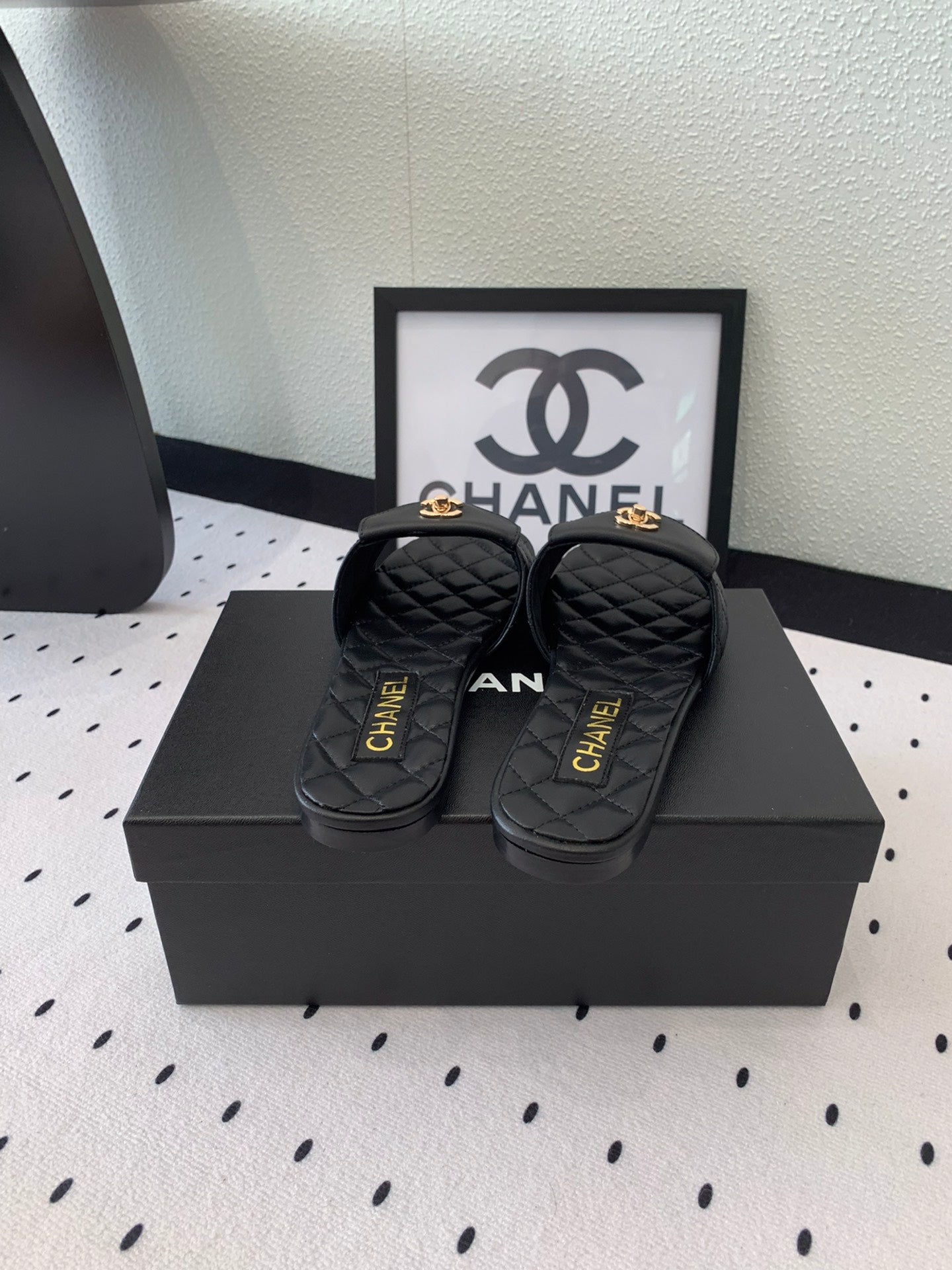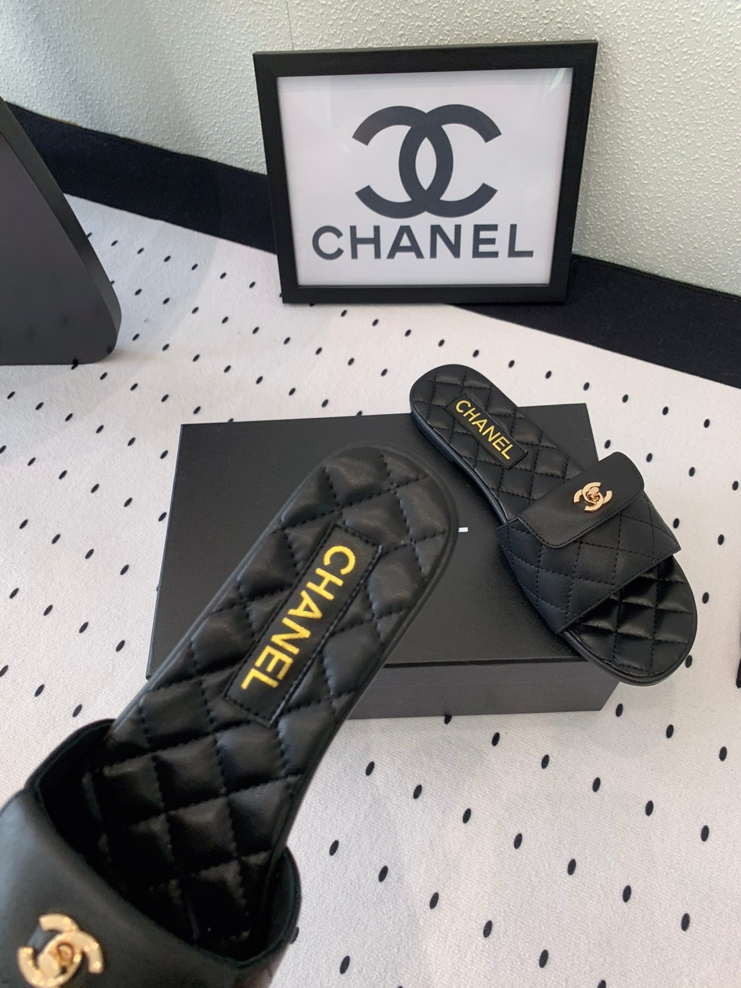 CC SLIPPERS IN BLACK CALFSKIN
