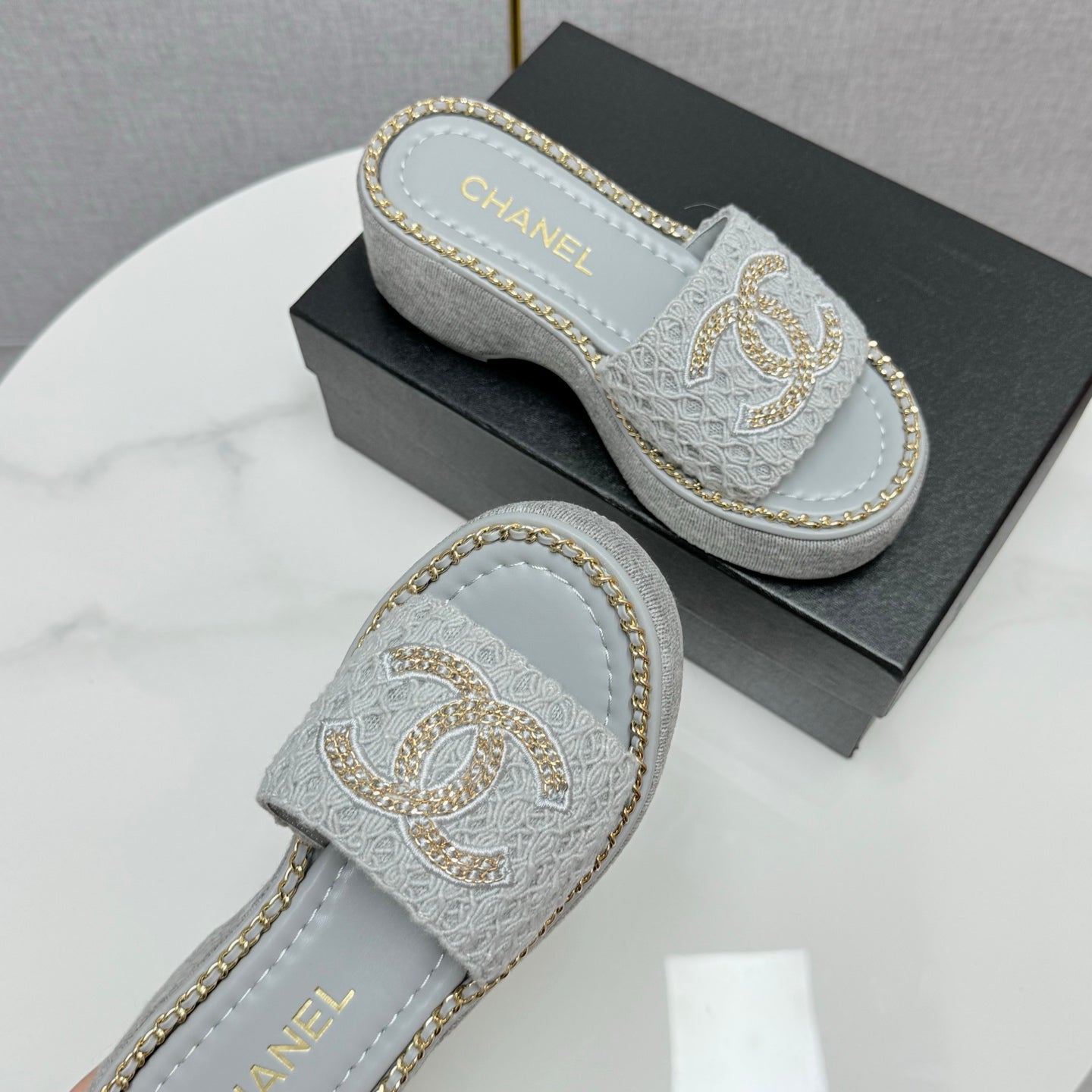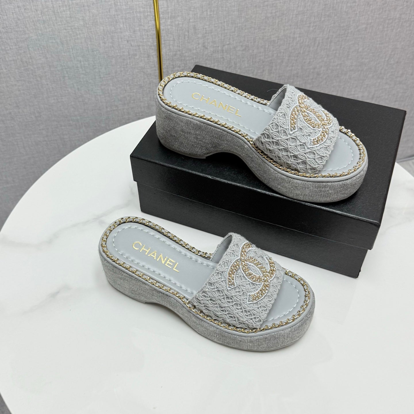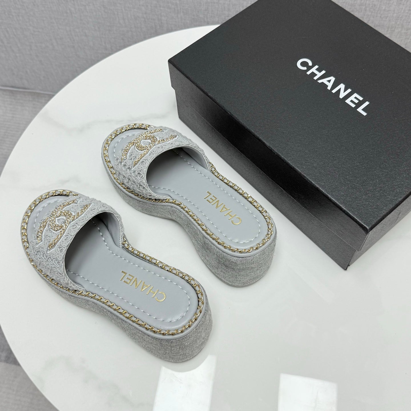CC WEDGE SOLE SANDALS 25S IN DUSTY BLUE GREY FABRIC WITH LOGO