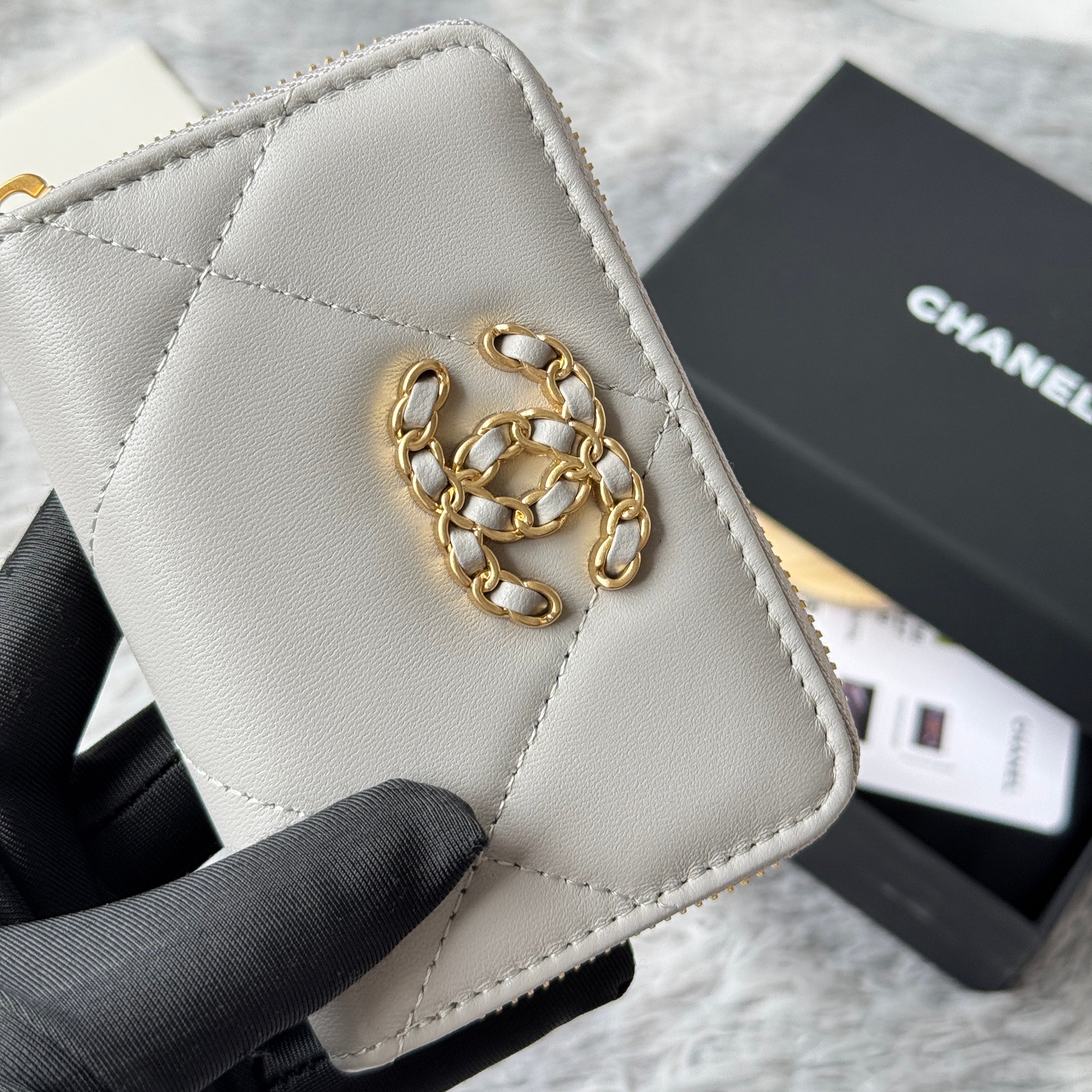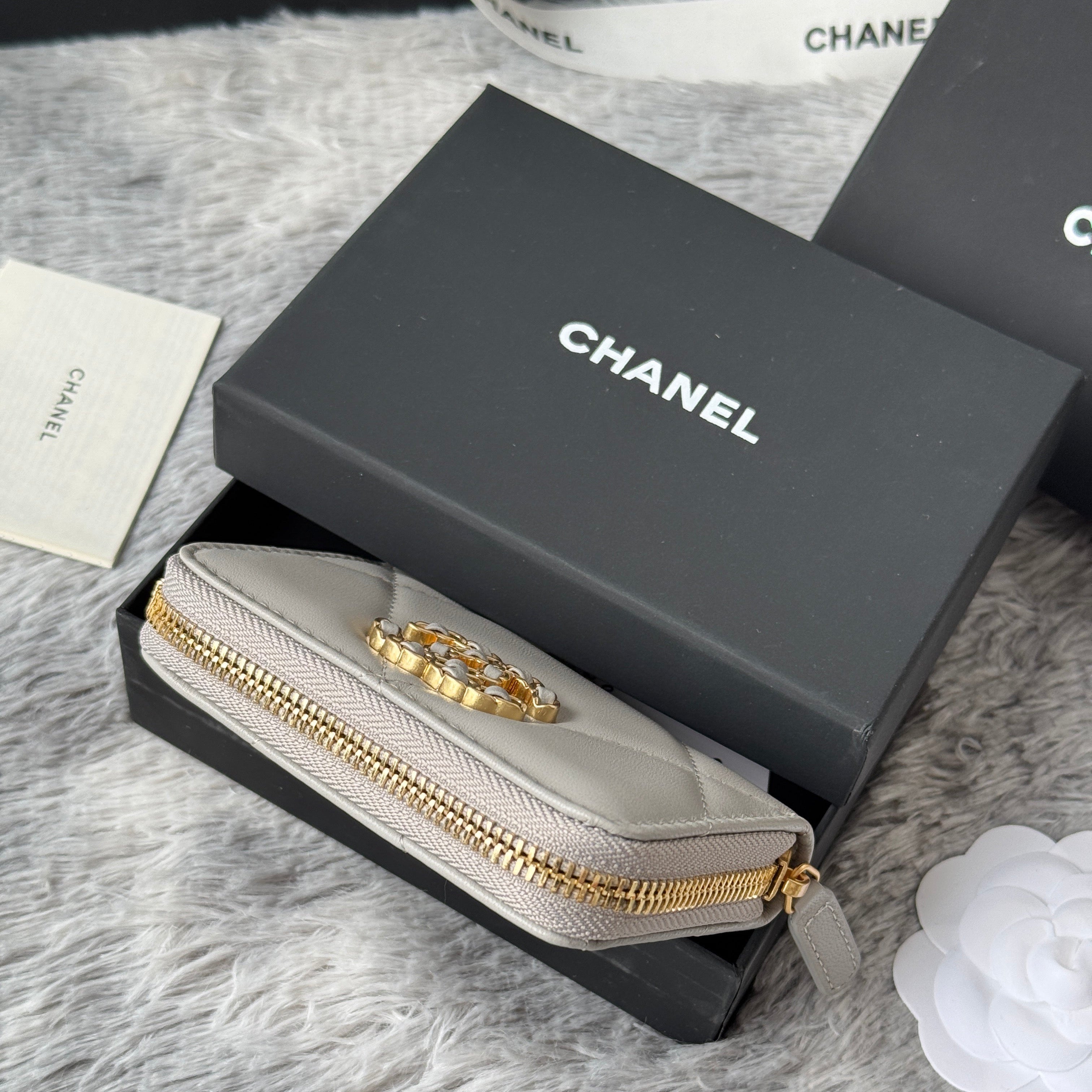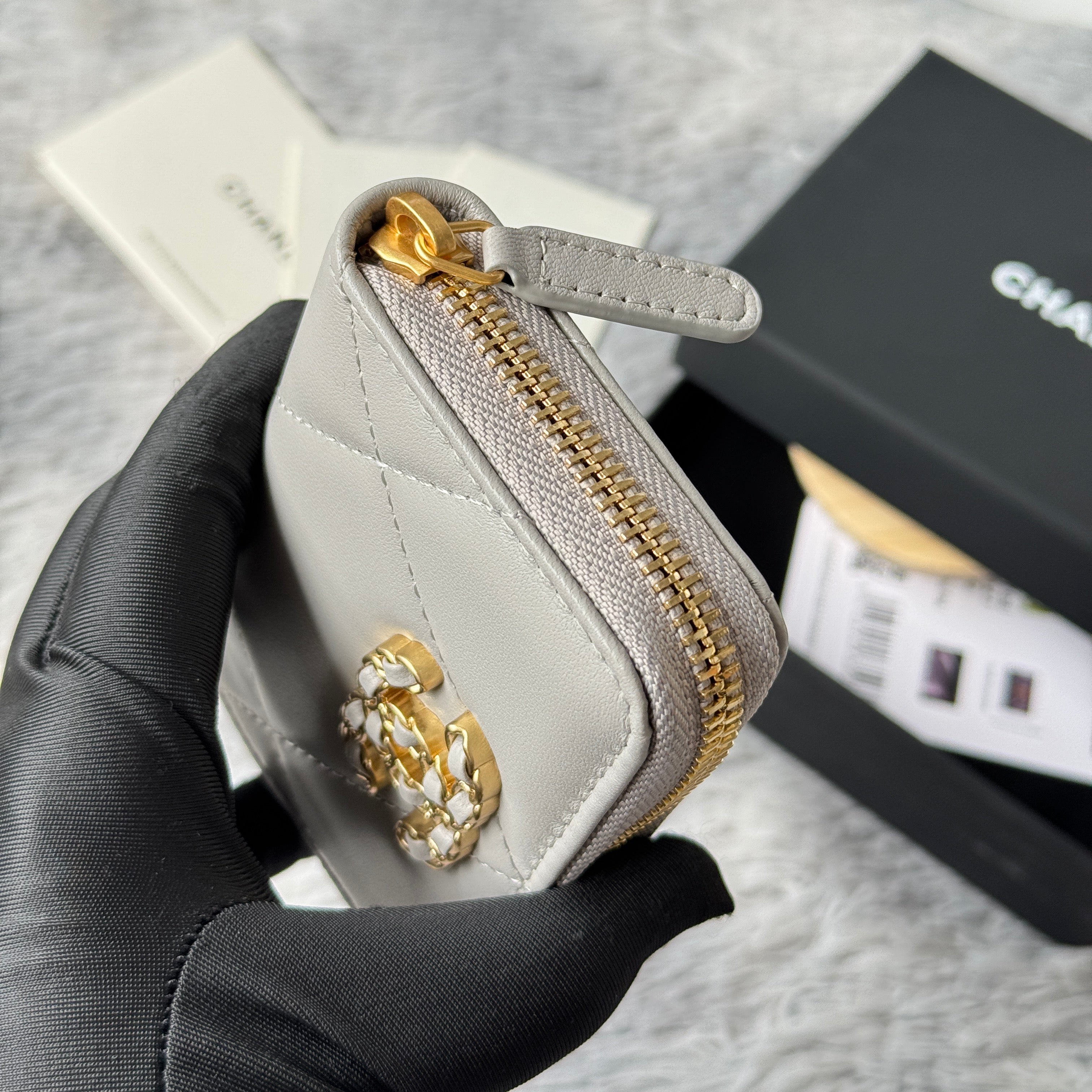 CC ZIPPED CARD HOLDER 11 IN GREY LAMBSKIN GOLD-TONE METALLIC