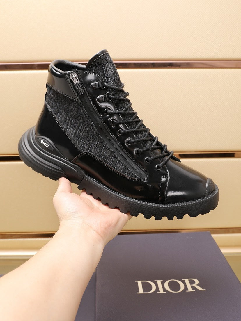 CD COMBAT ANKLE BOOT BLACK POLISHED CALFSKIN