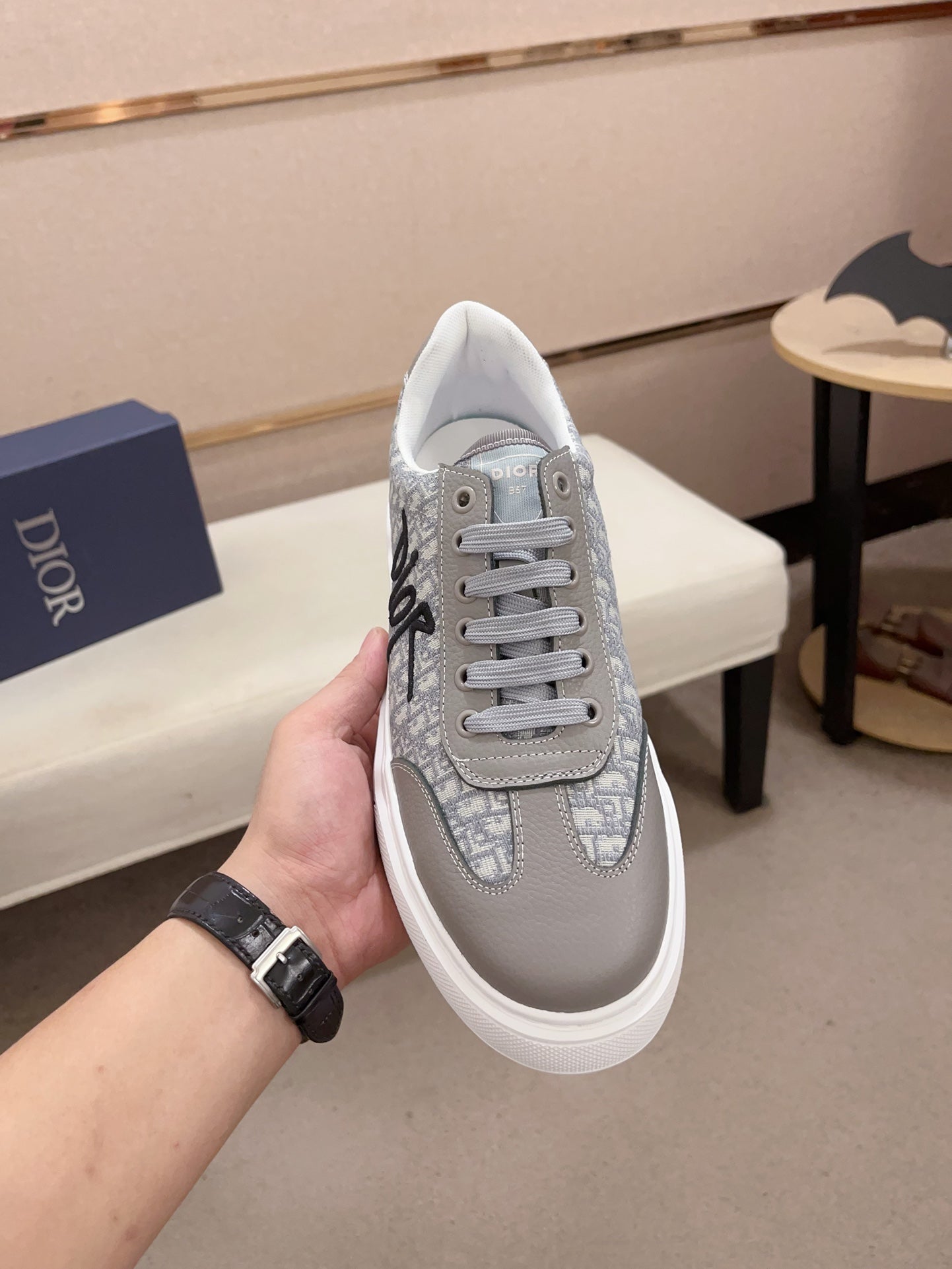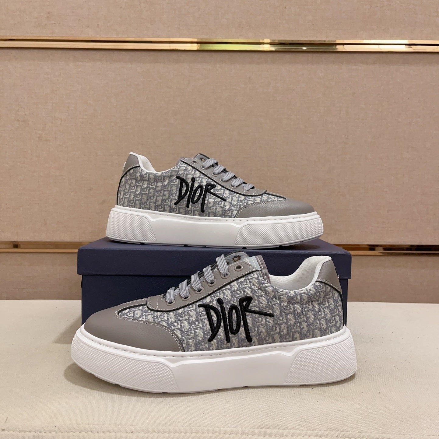 CD HOMME THICK-SOLE SNEAKERS GRAY CALFSKIN
