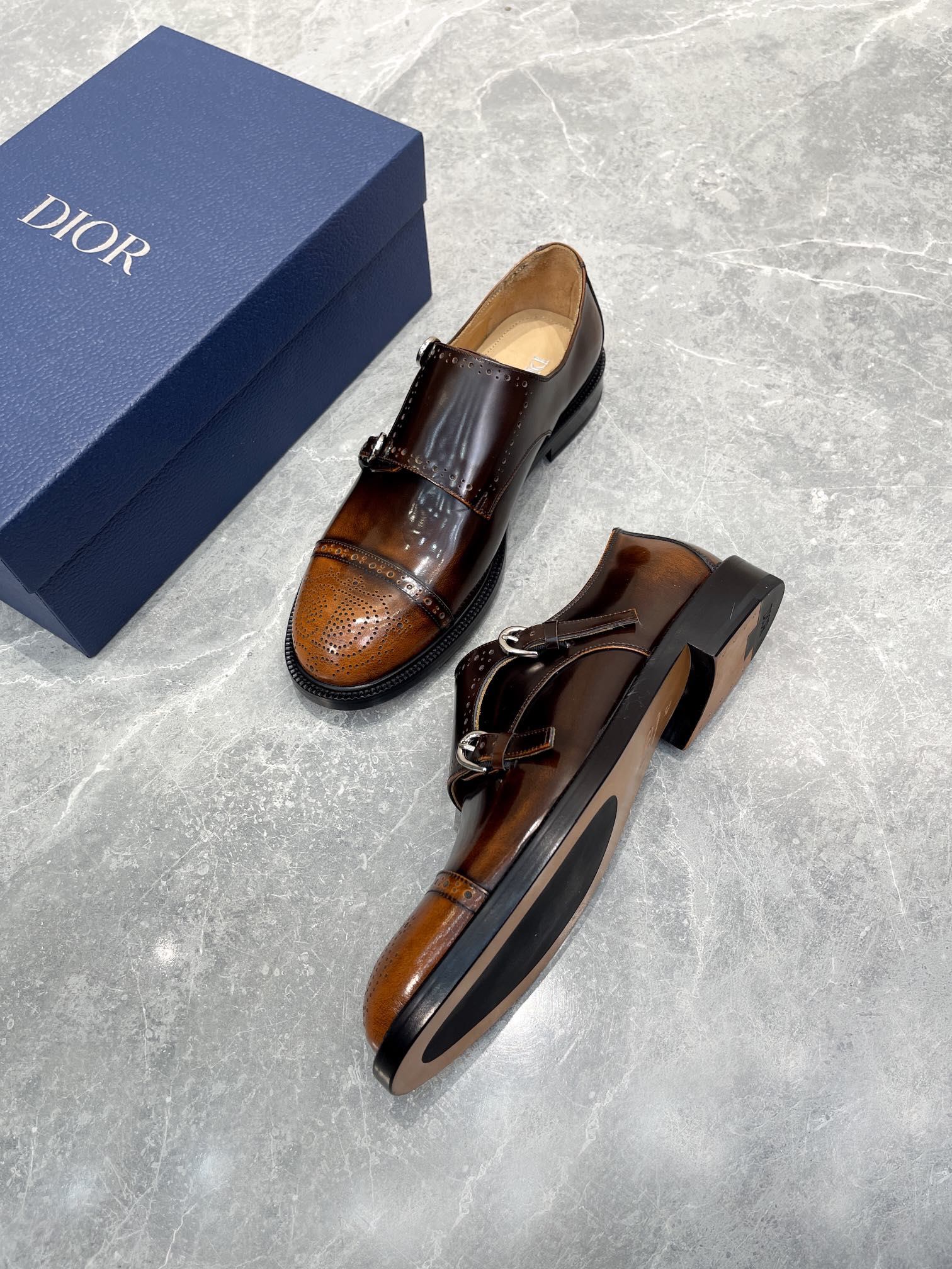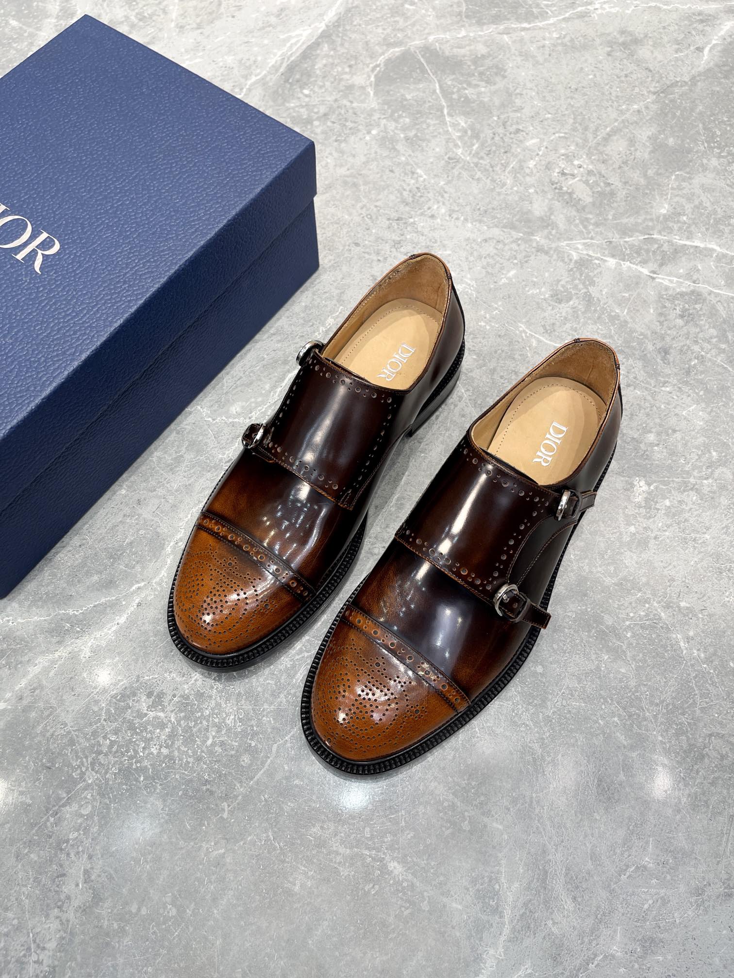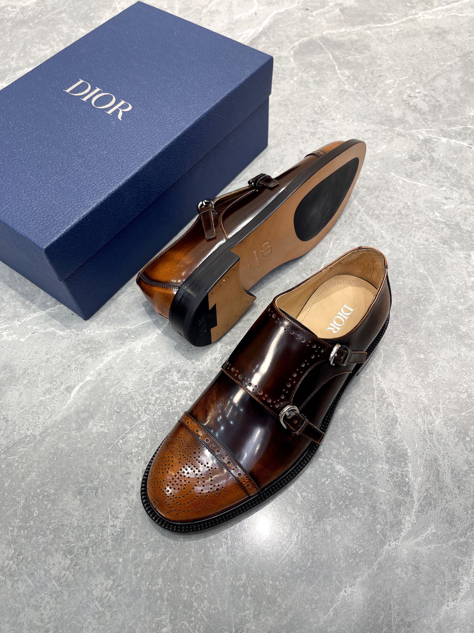 CD PATTERNED DOUBLE MONKSTRAP LOAFER SYRUP CALFSKIN