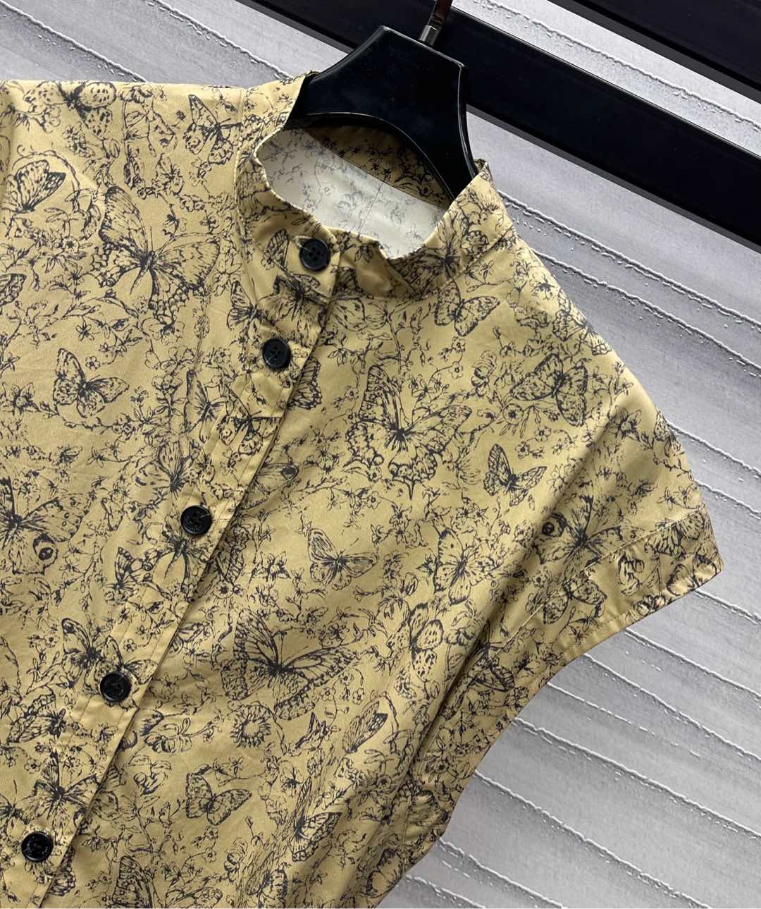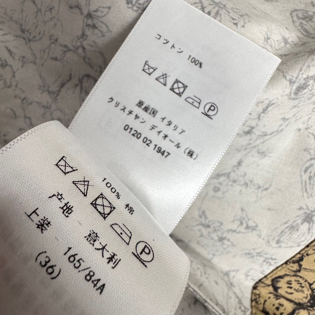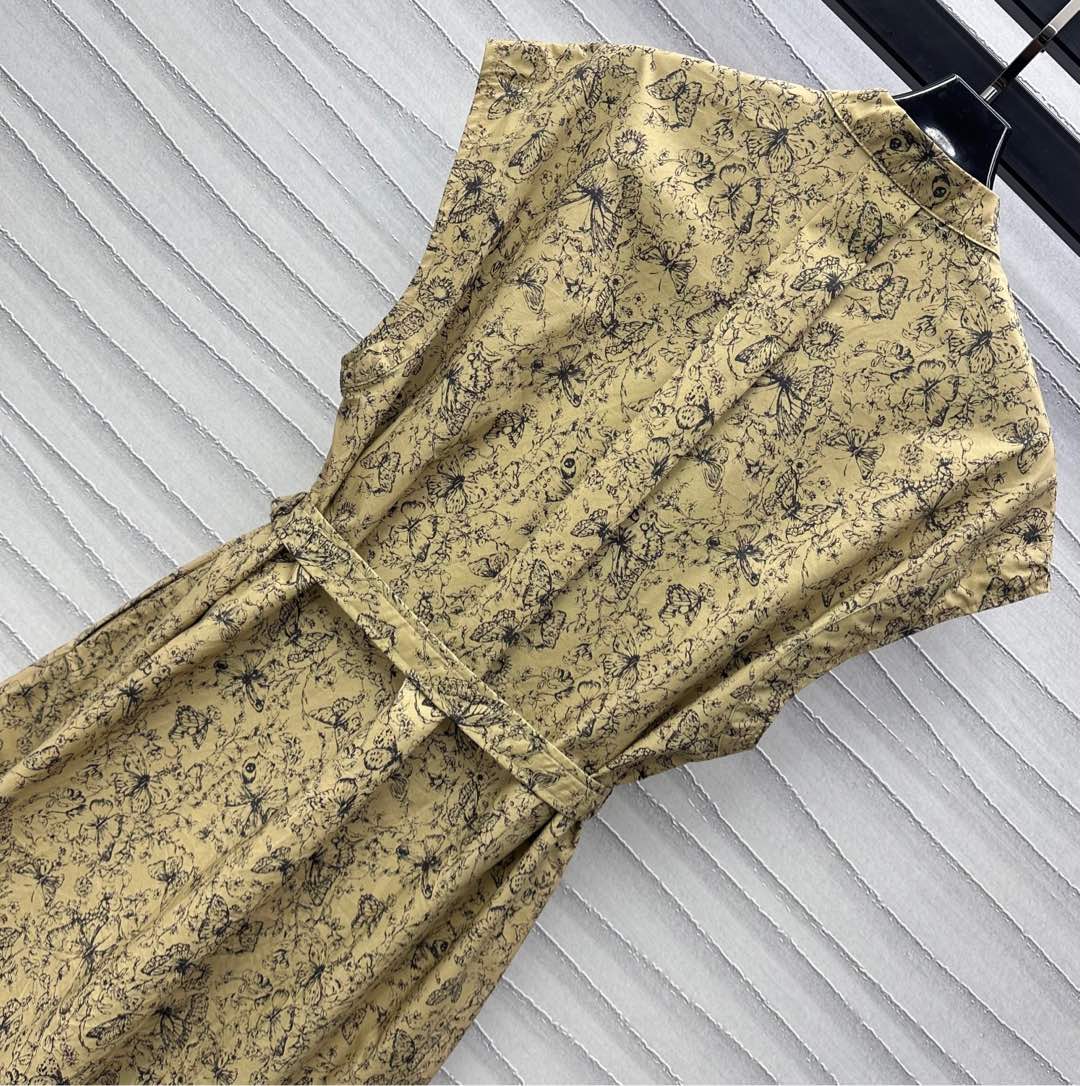 CD Short Belted Shirtdress Beige Cotton Gabardine with Black Motif