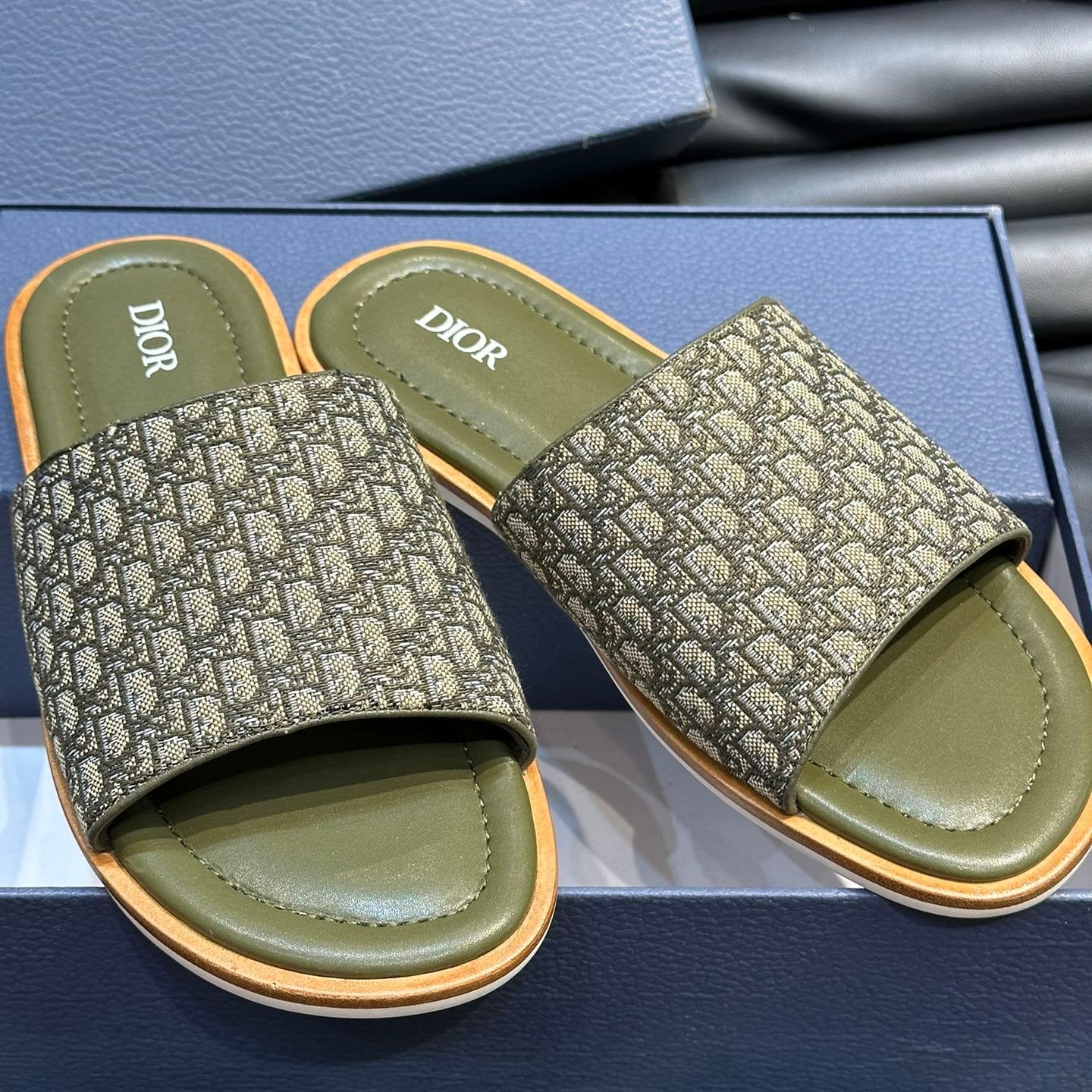 CD SLIDE ALIDAS SLIPPER OLIVE JACQUARD AND CALFSKIN