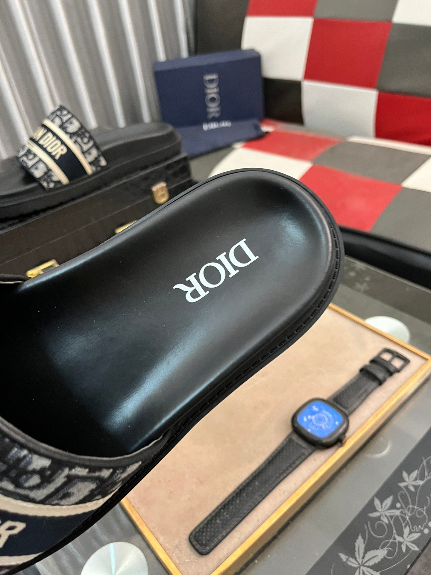 CD SLIDE LETTER SLIPPER BLACK AND GRAY CALFSKIN