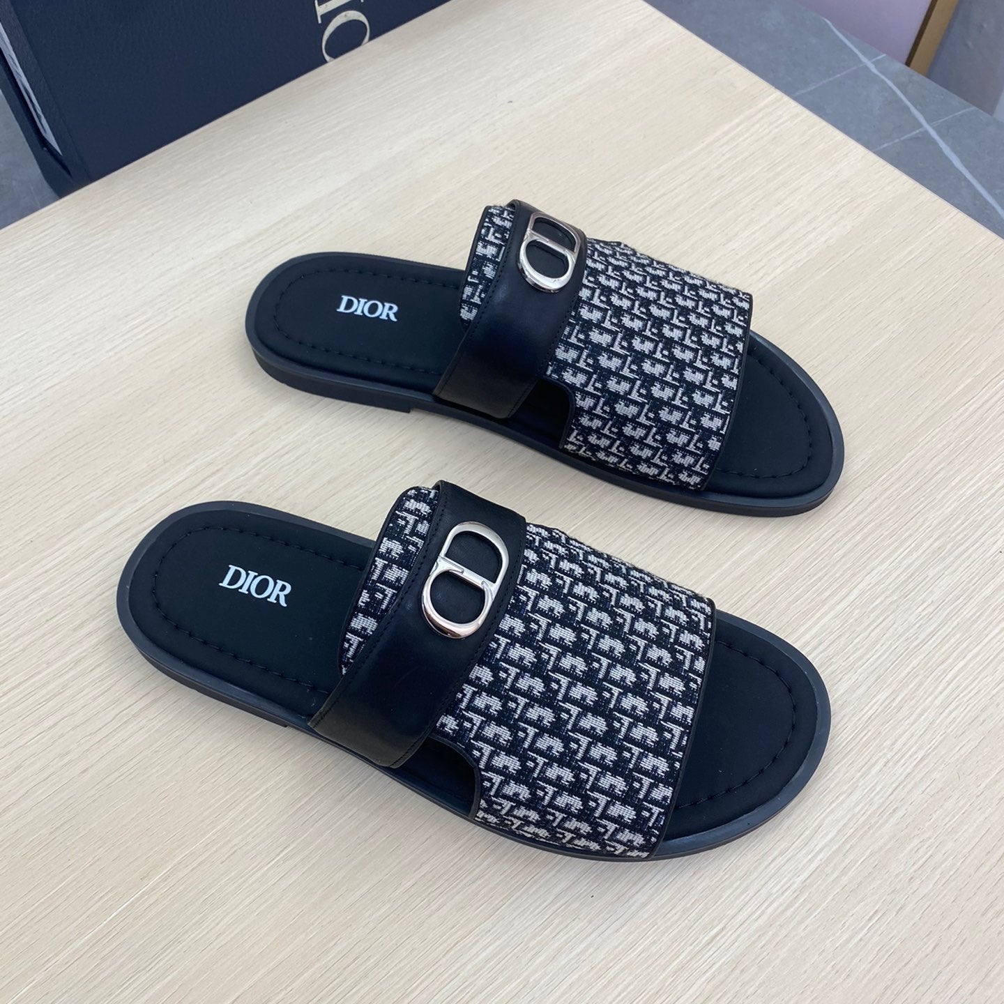 CD SYMBOL SLIDE CUT SANDAL BLACK AND WHITE JACQUARD