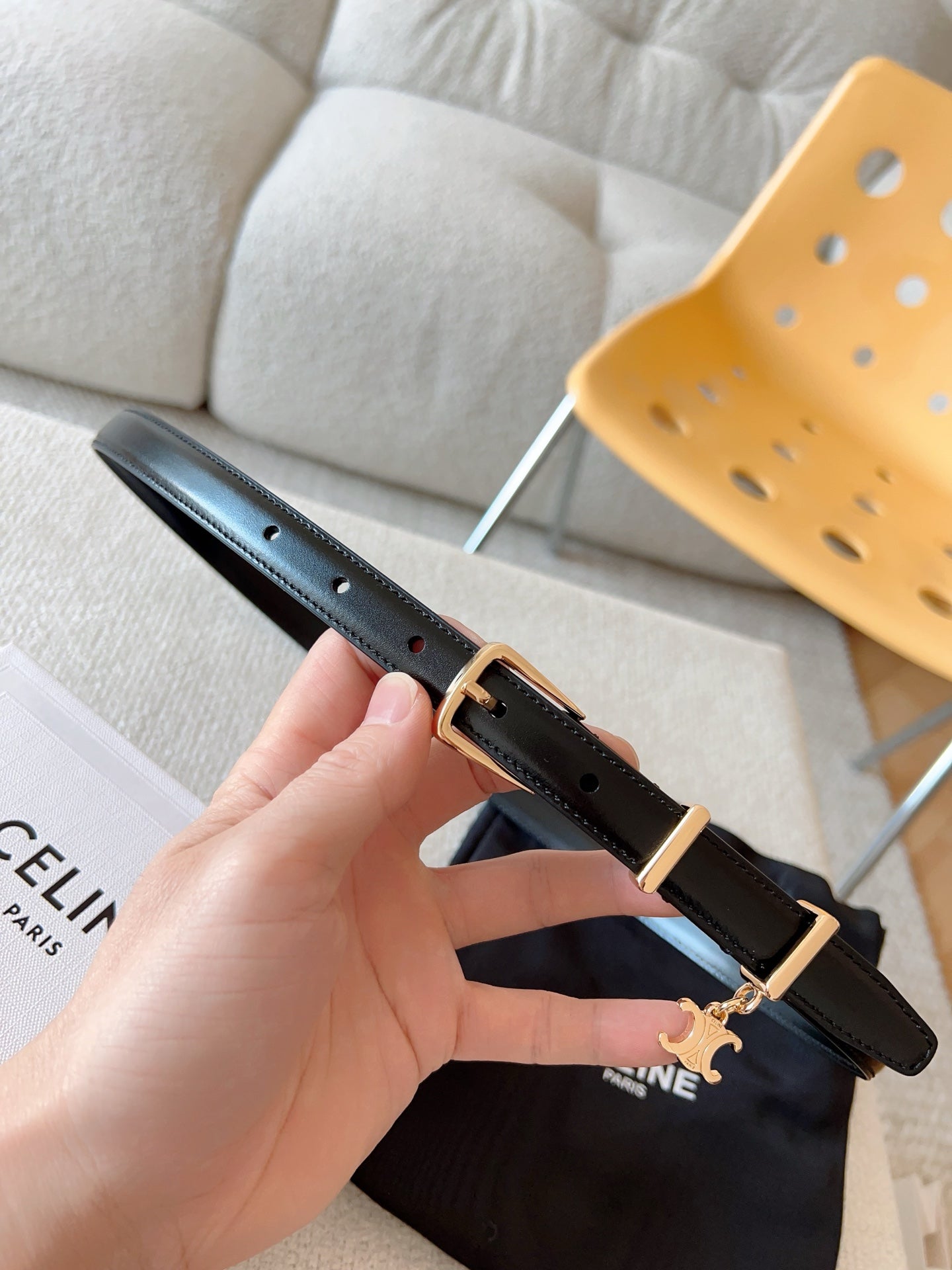 CELINE 25S BELT 18MM IN BLACK ELEGANT CHARM TAURILLON GOLD HARDWARE 585792