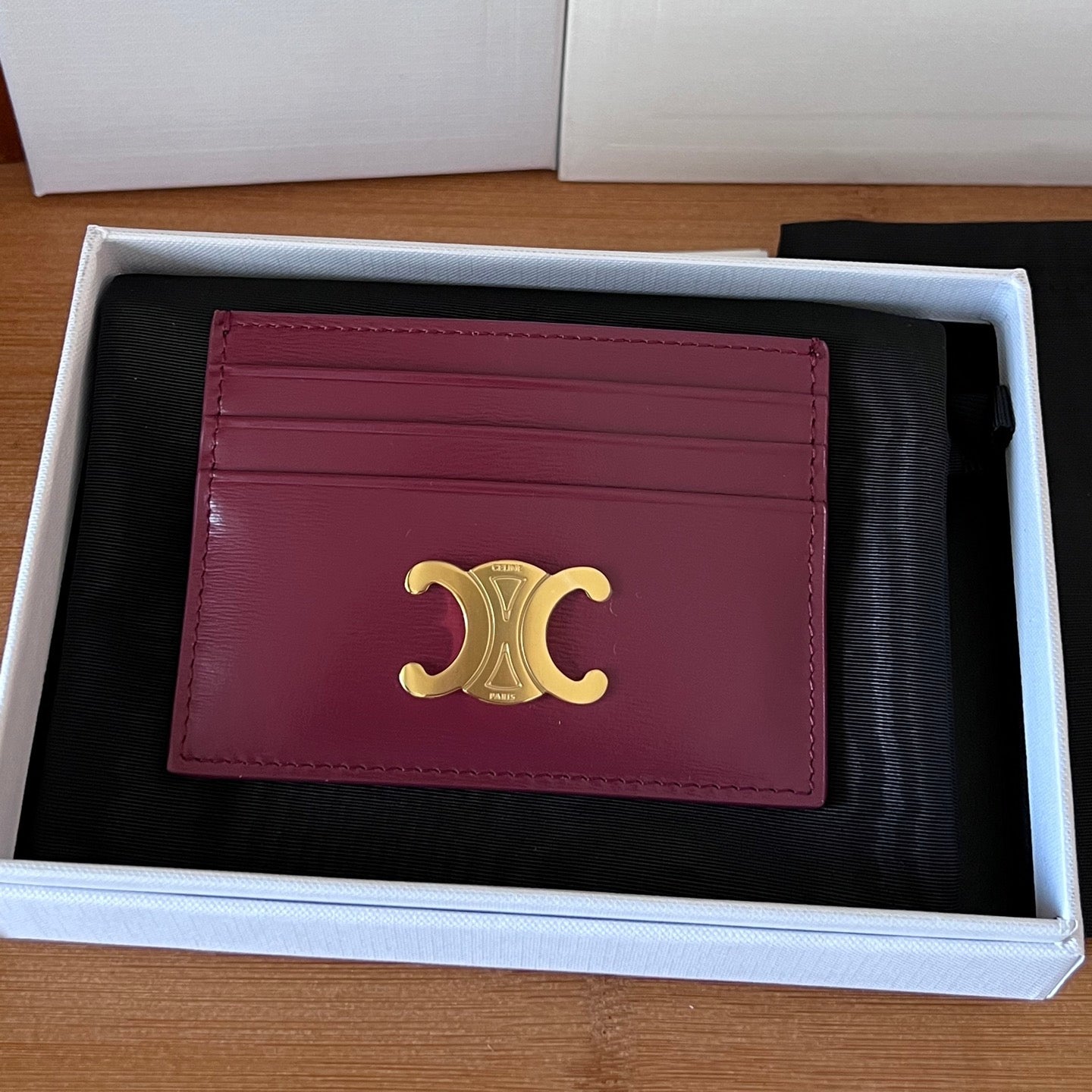 CELINE 25S CARD HOLDER WITH TRIOMPHE LOGO 11 IN OXBLOOD CALFSKIN