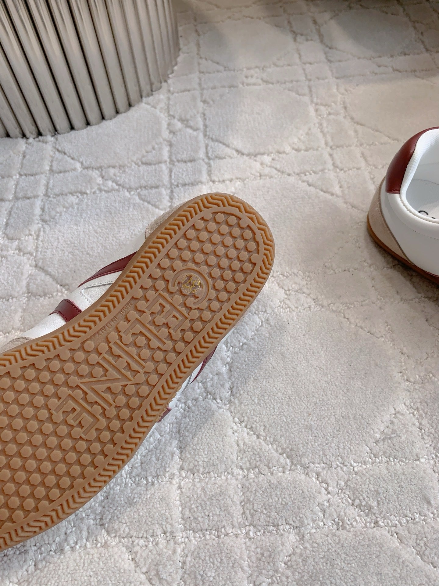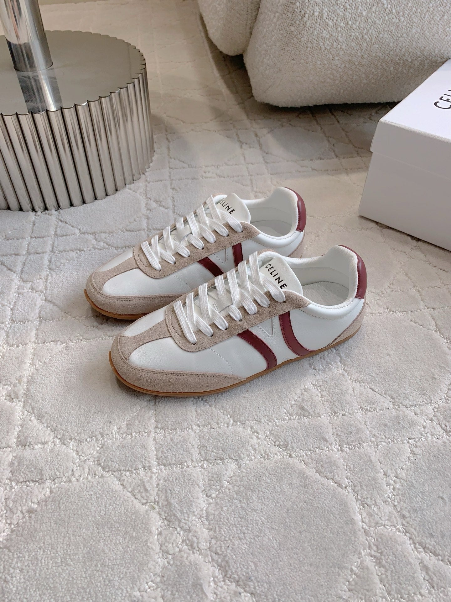 CELINE 25S JOGGER LOW LACE UP SNEAKER IN WHITE BEIGE RED CALFSKIN AND SUEDE