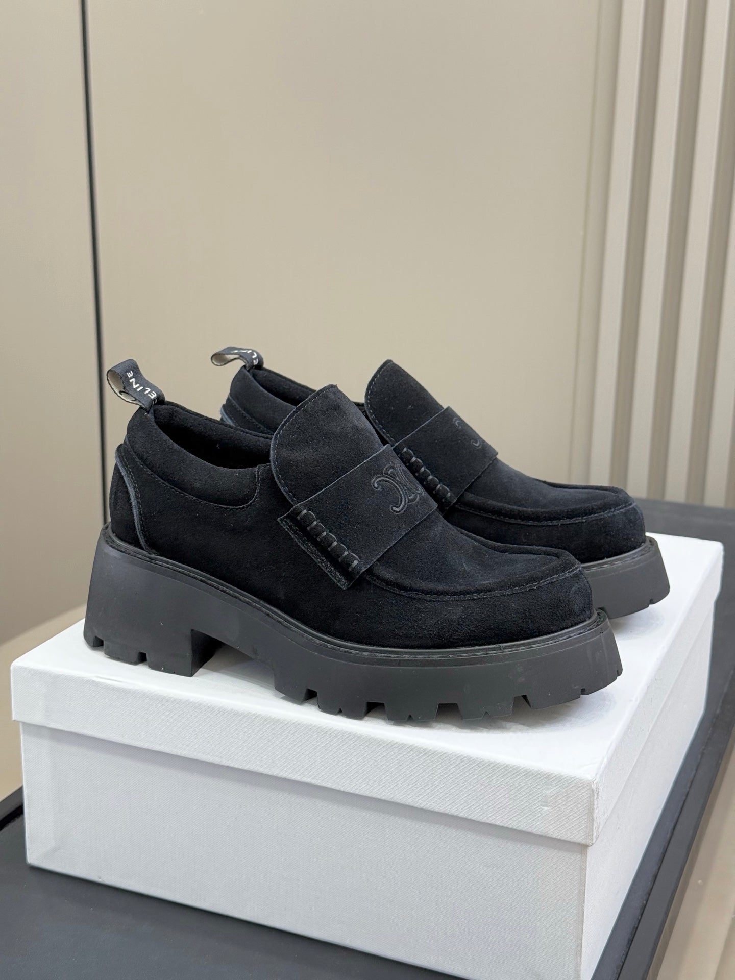 CELINE 25S SERIN CHUNKY LOAFERS 50MM IN BLACK SUEDE