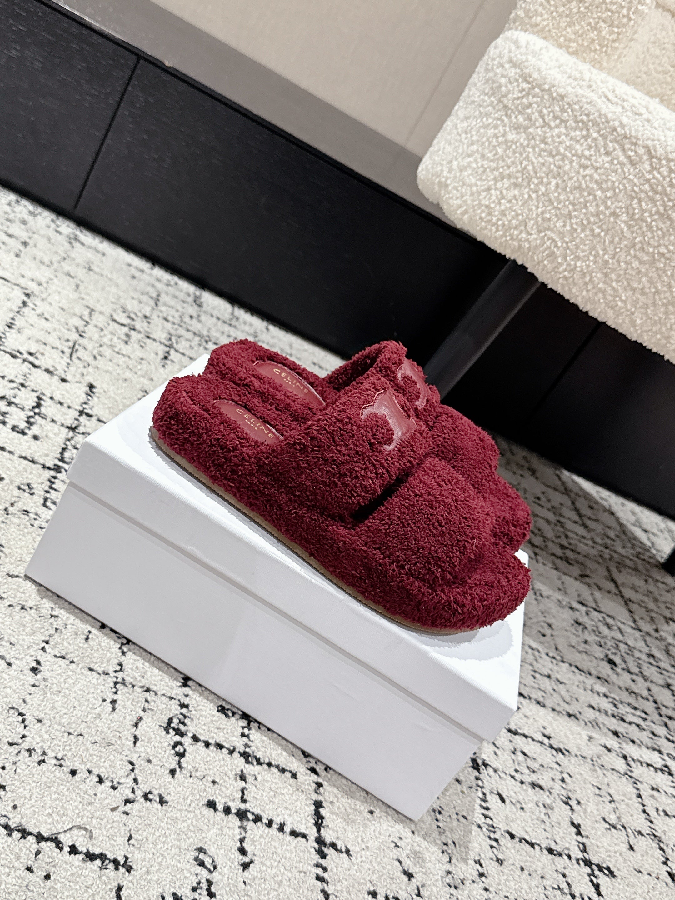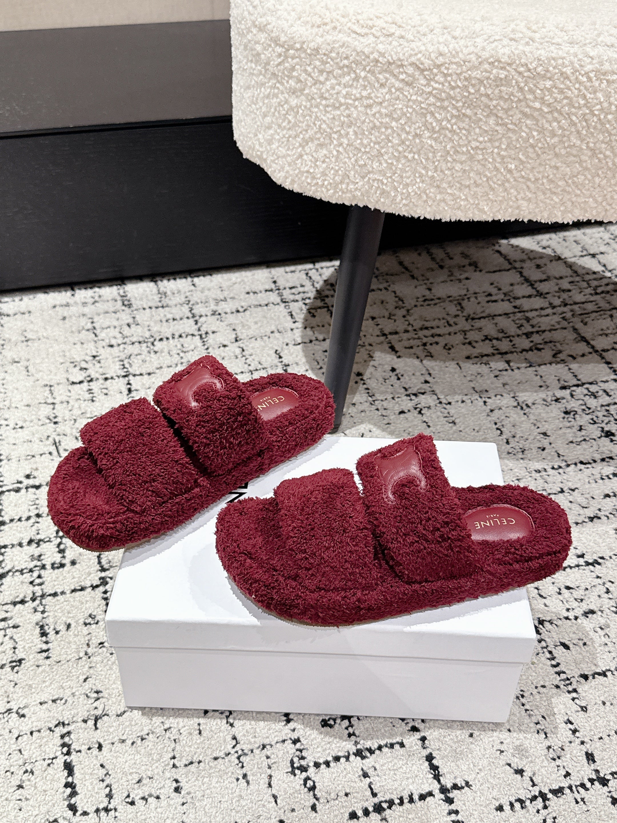 CELINE 25S SLIDES TRIOMPHE IN WINE RED SPONGE FABRIC