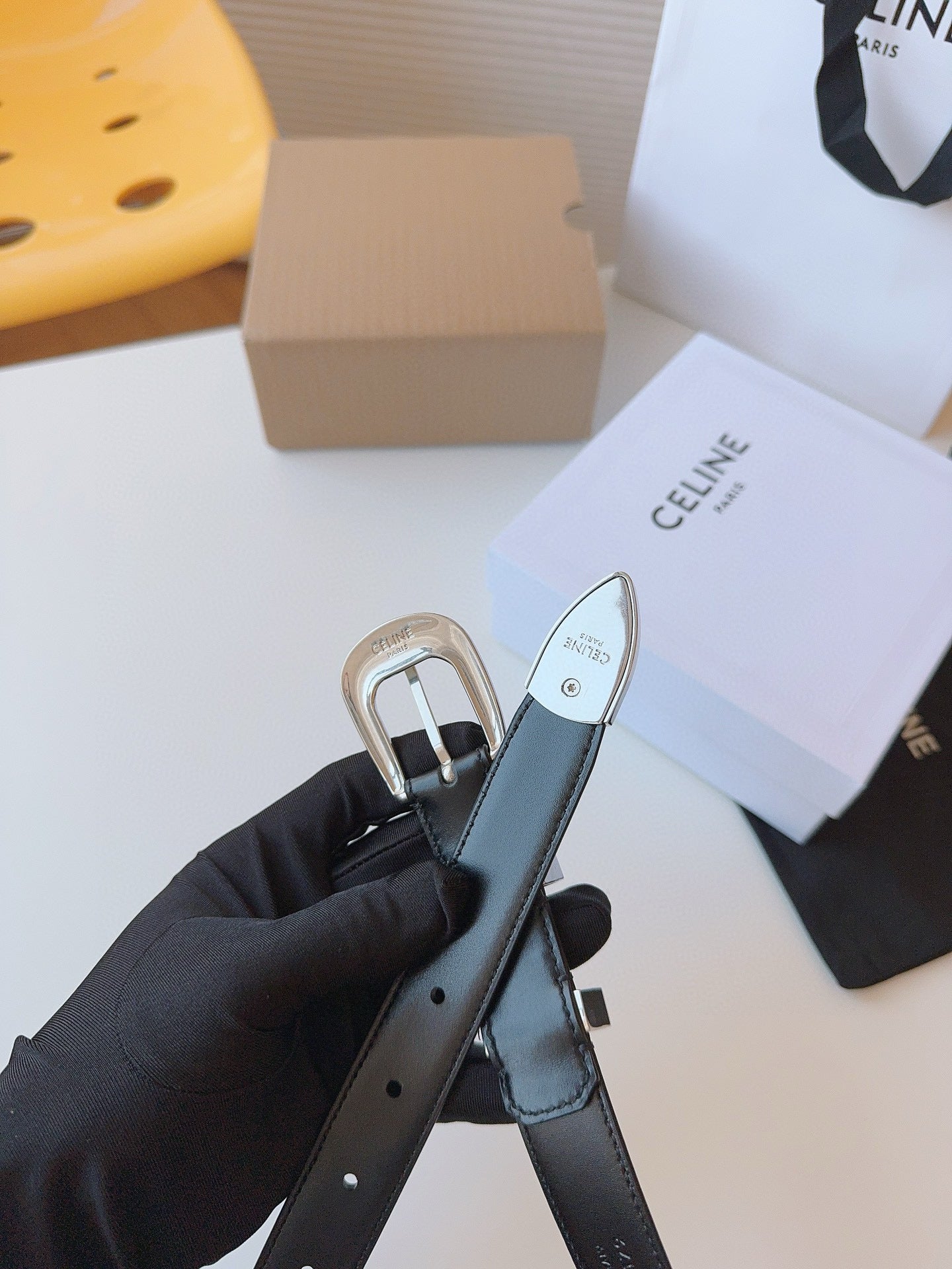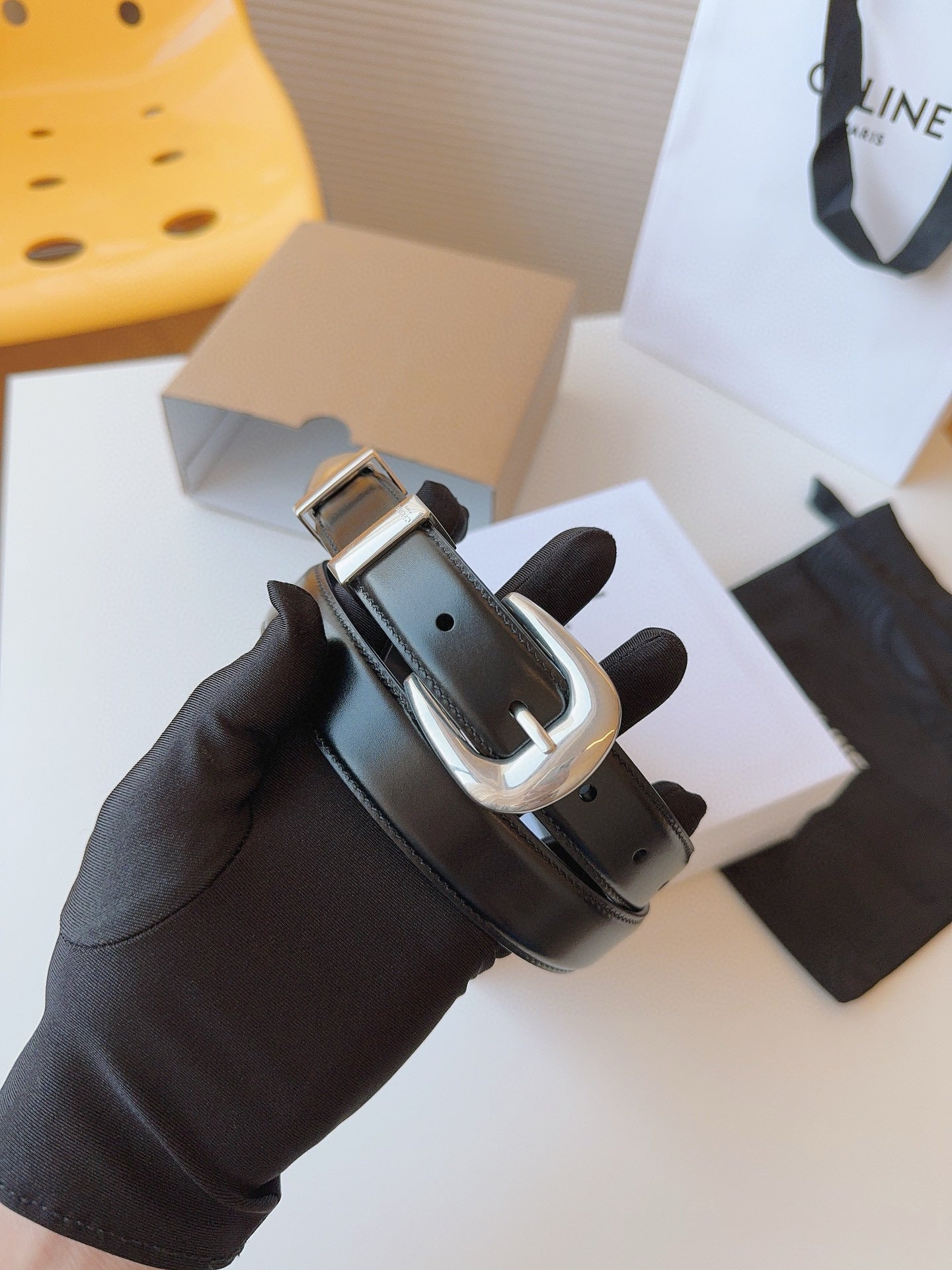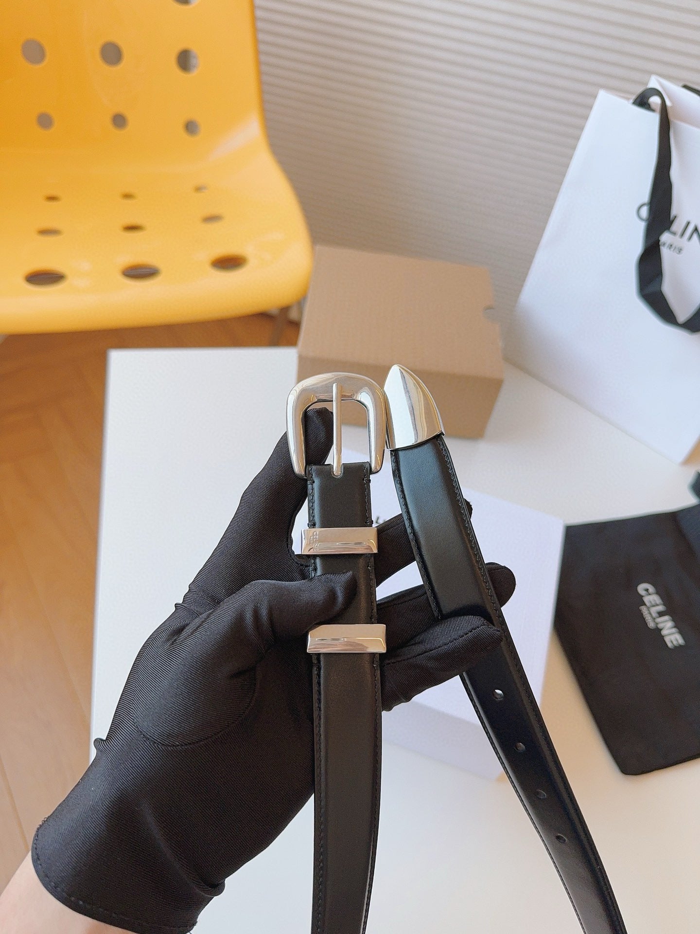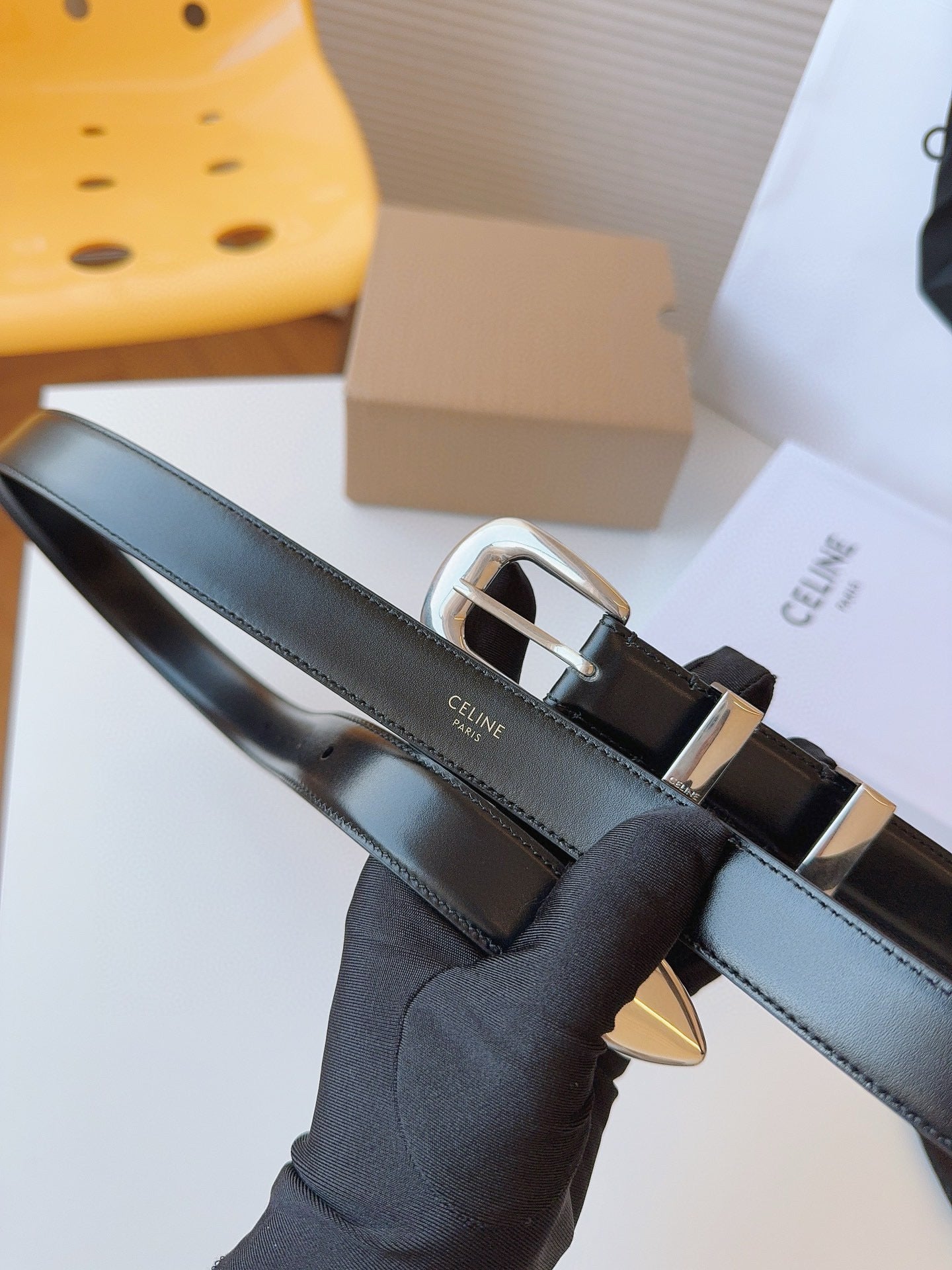 CELINE 25S SMALL 25MM WESTERN BELT IN BLACK CALFSKIN 566639